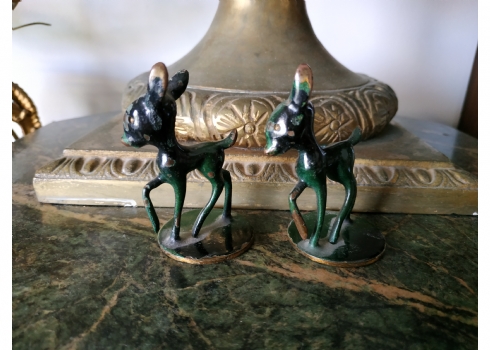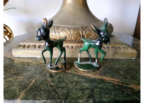 לאספני ישראליאנה - זוג פסלוני ברונזה ישראלים ישנים מתוצרת חברת 'הקולי' (Hakuli), חתומים, גובה: 6.5 ס"מ.