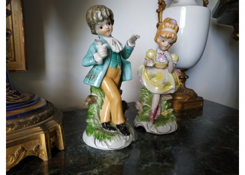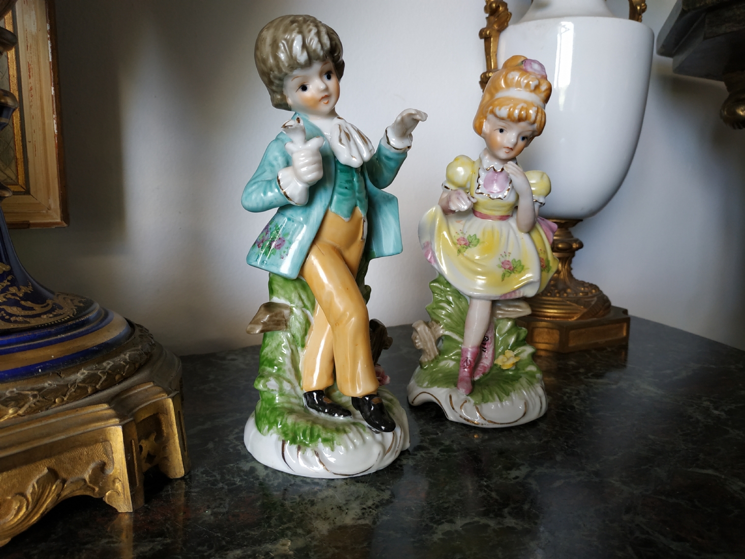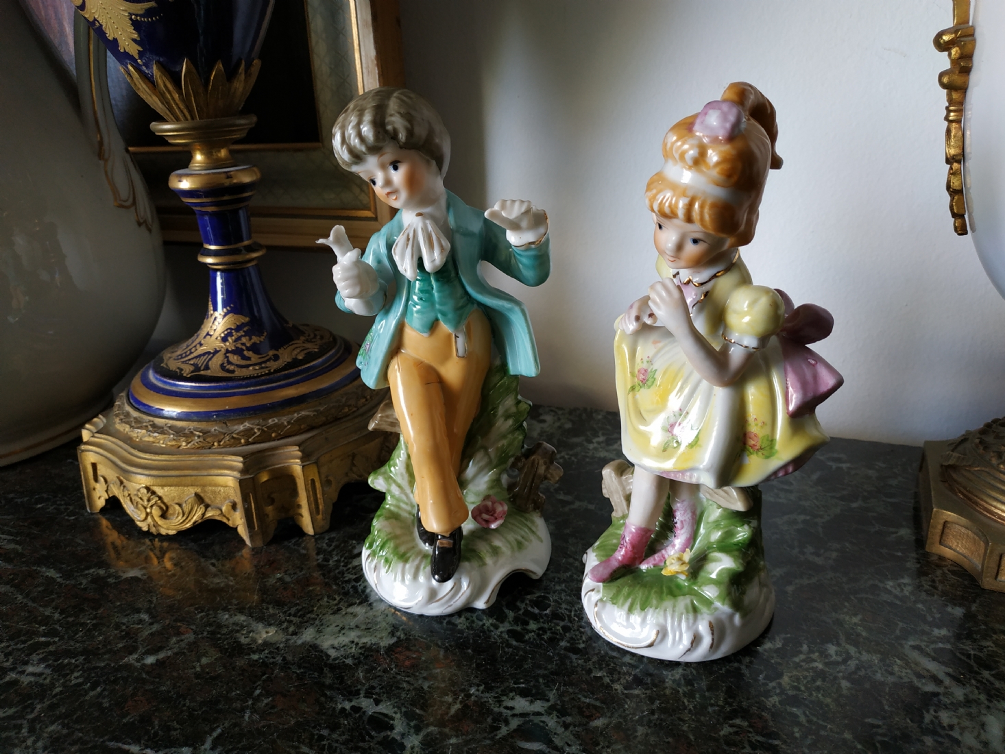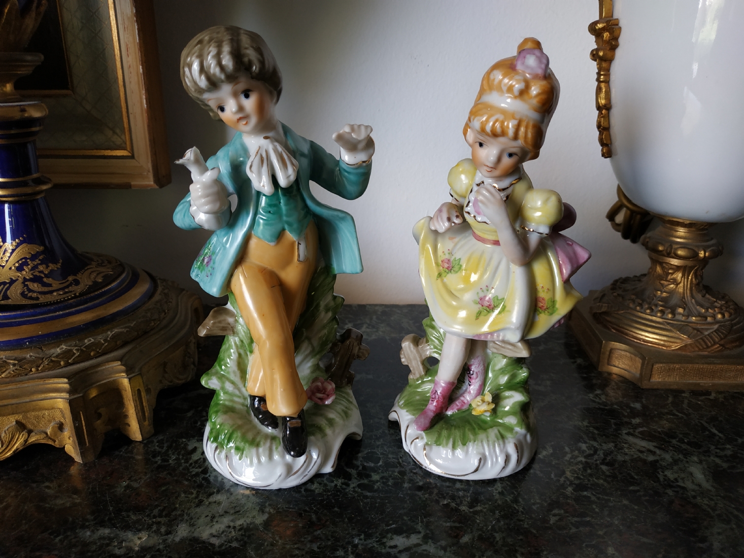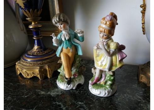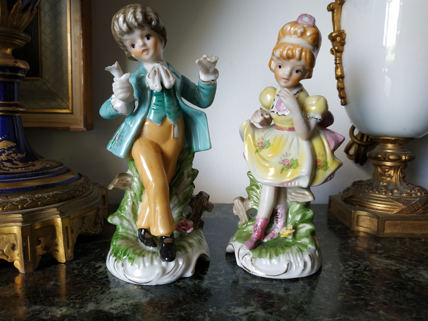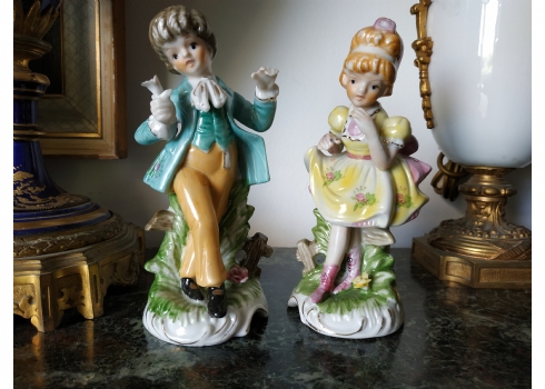 זוג פסלוני פורצלן, מעוטרים בצביעת יד