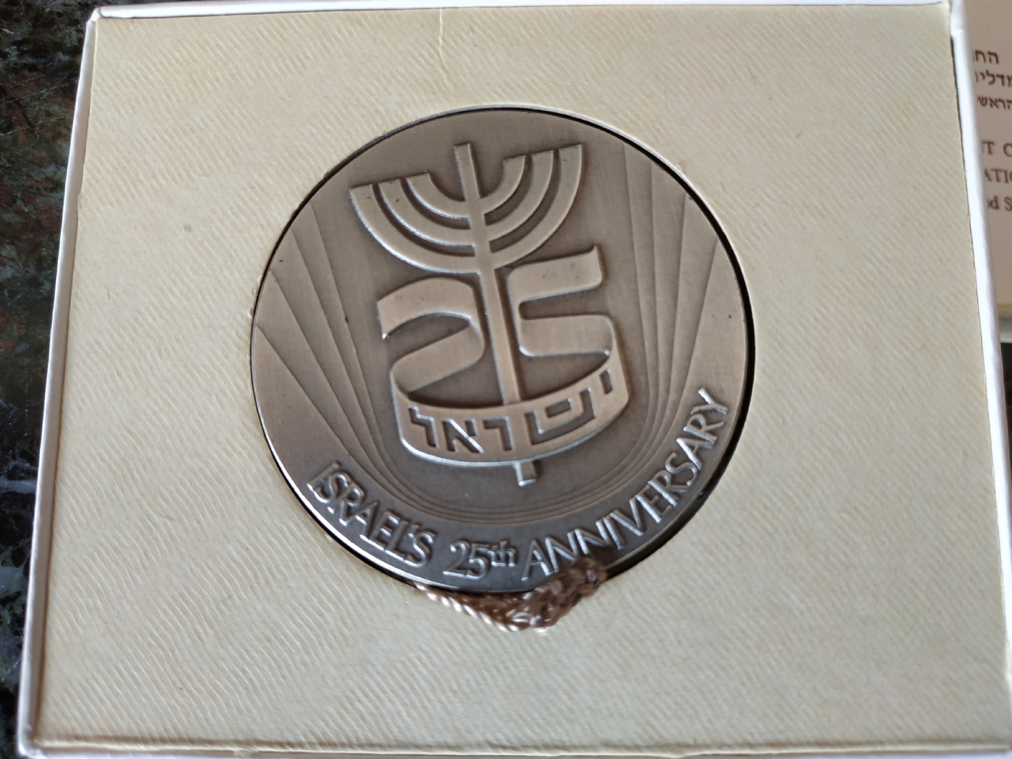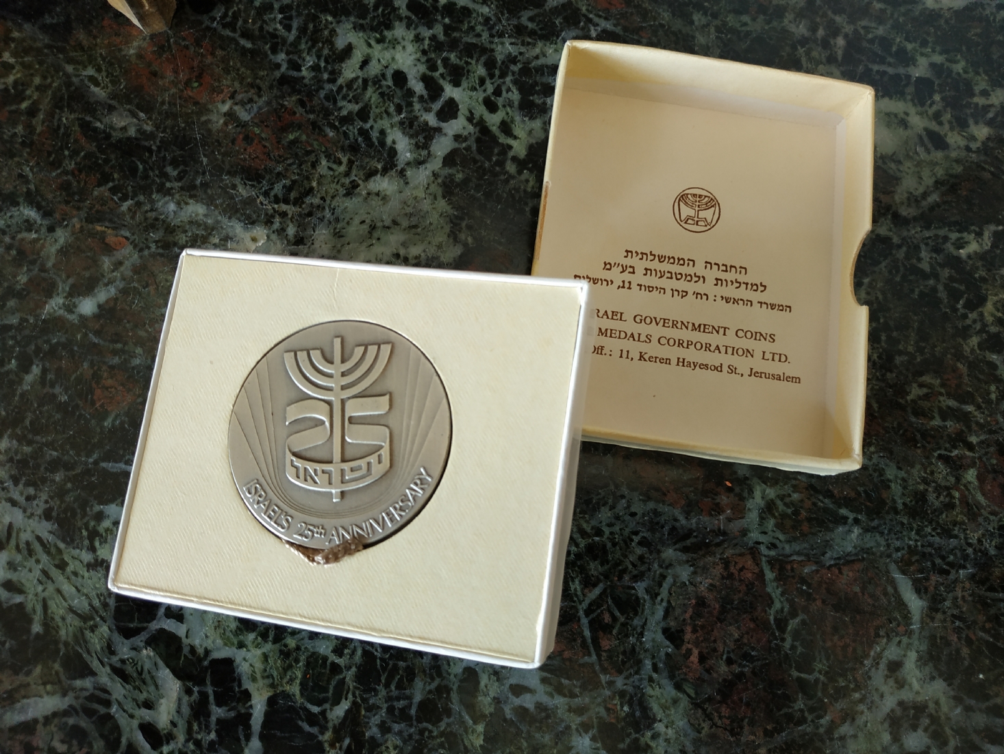 מדלית כסף ישראלית ישנה ליובל 25 למדינת ישראל, עשויה כסף '935'