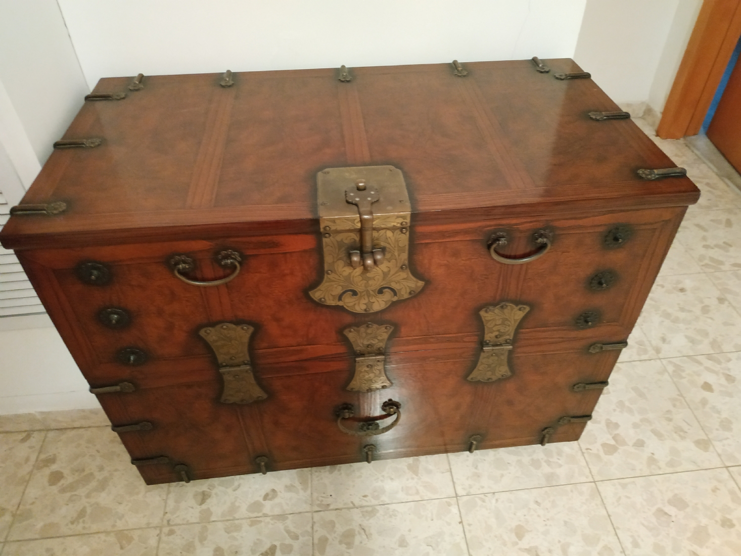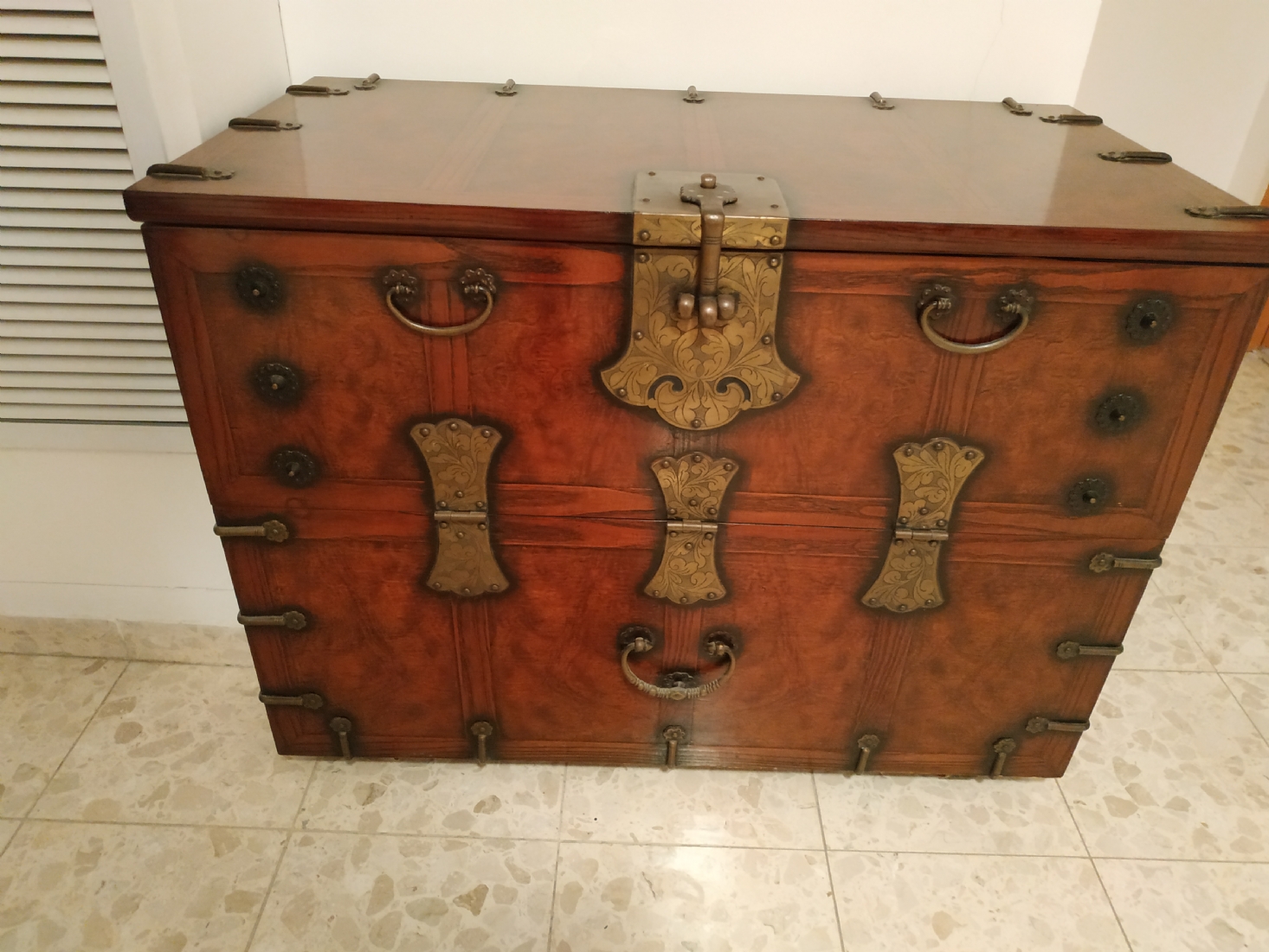 ארגז סיני ישן בסגנון עתיק, עשוי עץ והתקני מתכת מסוגננים, גובה: 71 ס"מ, אורך: 93 ס"מ, רוחב: 48 ס"מ. ( * מפאת גודלו ומשקלו של הפריט, לא ניתן לשלוח אותו באמצעות שליח, לכן הזוכה בו מתחייב לפנותו מנס ציונה תוך 4 ימים מיום המכירה הפומבית בתיאום).