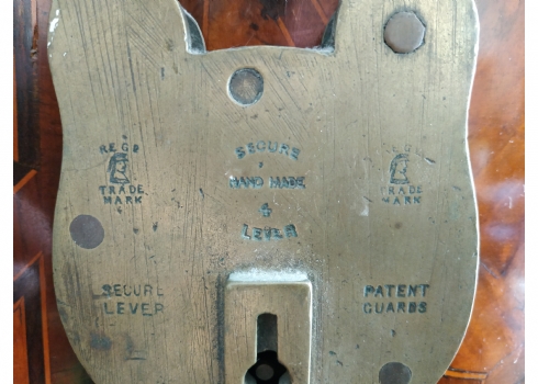 מנעול ישן עשוי ברונזה, רוחב: 9 ס"מ, גובה: 13 ס"מ.