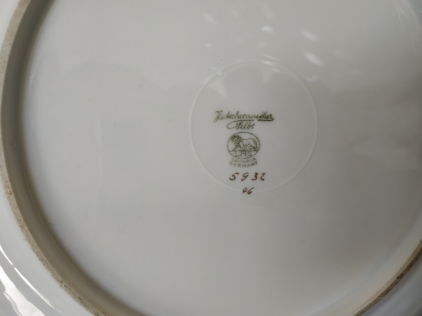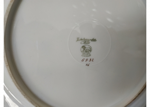 צלחת פורצלן גרמנית גדולה, מתוצרת: 'הוטשנרוייטר' (Hutschenreuther), מעוטרת בזהב