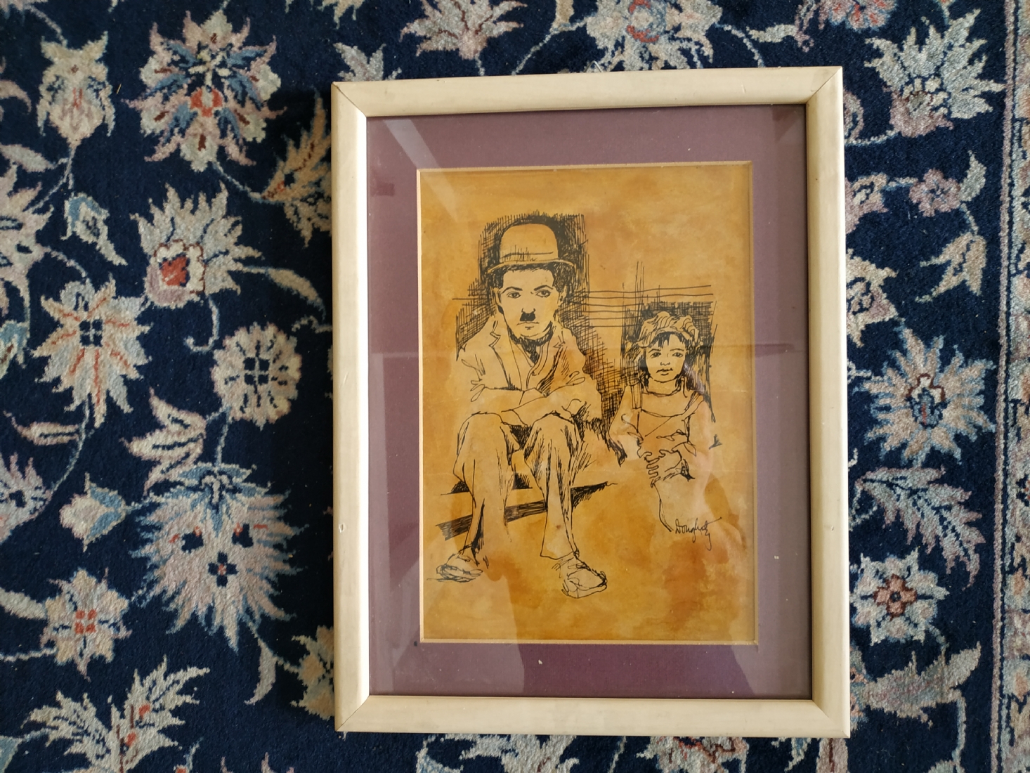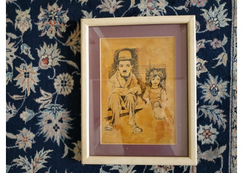 'הנער' - ציור ישן, רישום על נייר, על פי סרטו של צ'ארלי צ'פלין שיצא בשנת 1921