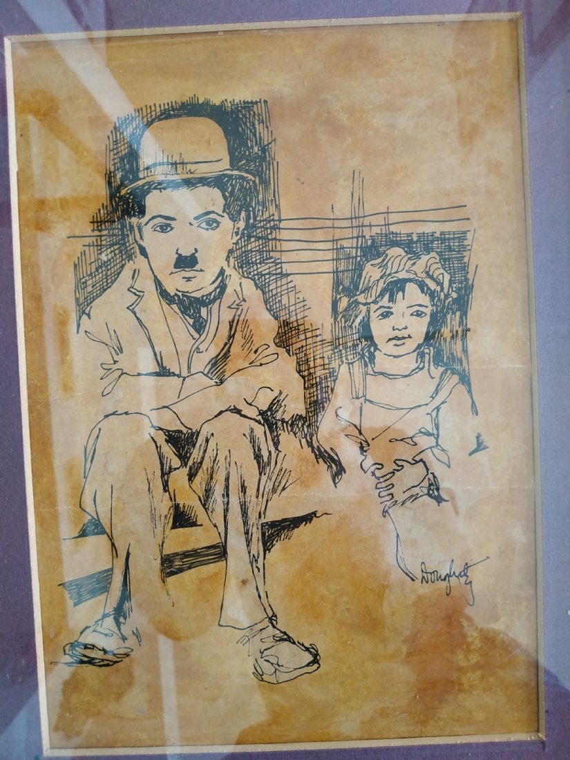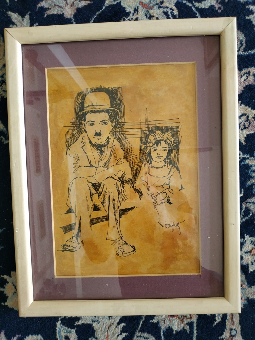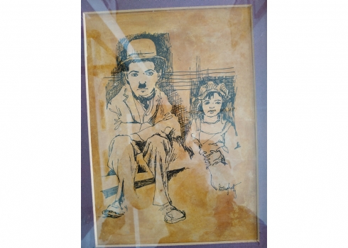 מספר הפריט בקטלוג 212'הנער' - ציור ישן, רישום על נייר, על פי סרטו של צ'ארלי צ'פלין שיצא בשנת 1921, חתום, מידות: 27X19 ס"מ.