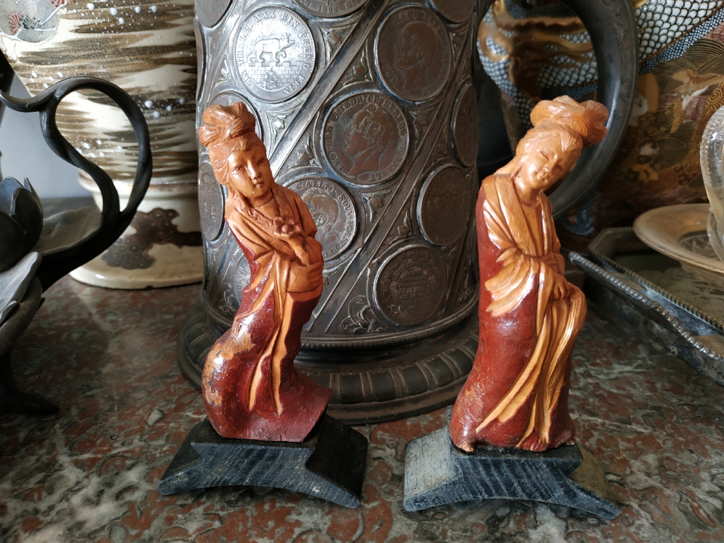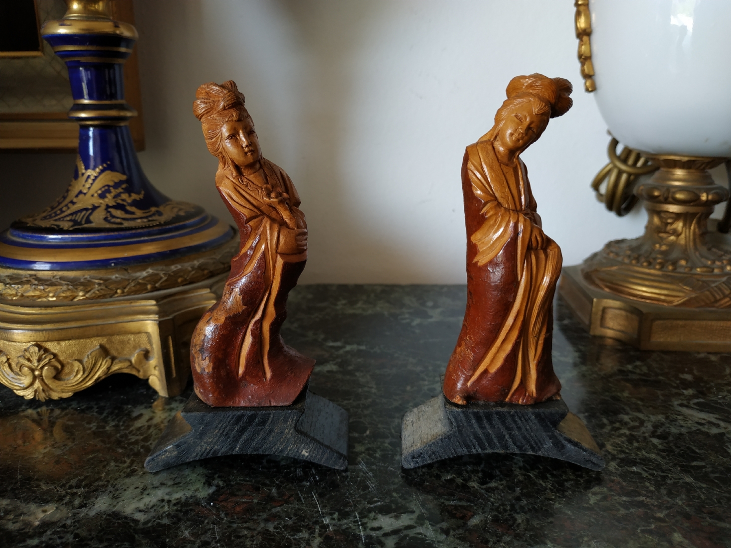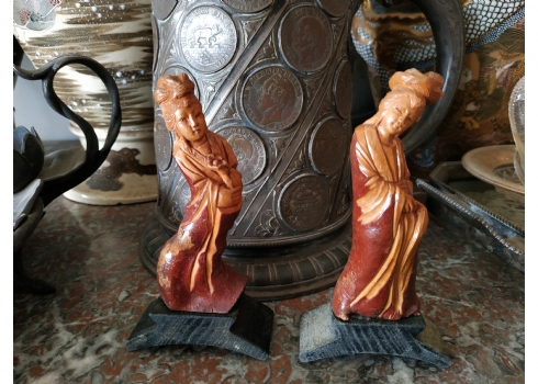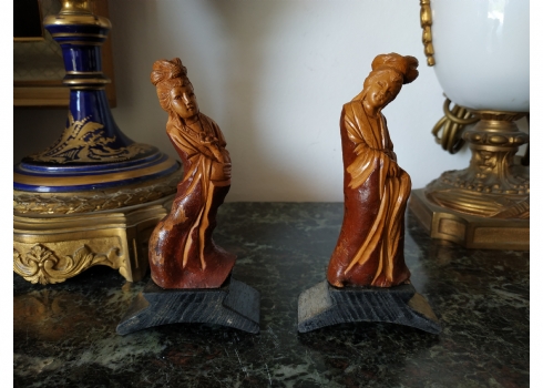 זוג פסלוני עץ סינים מגולפים