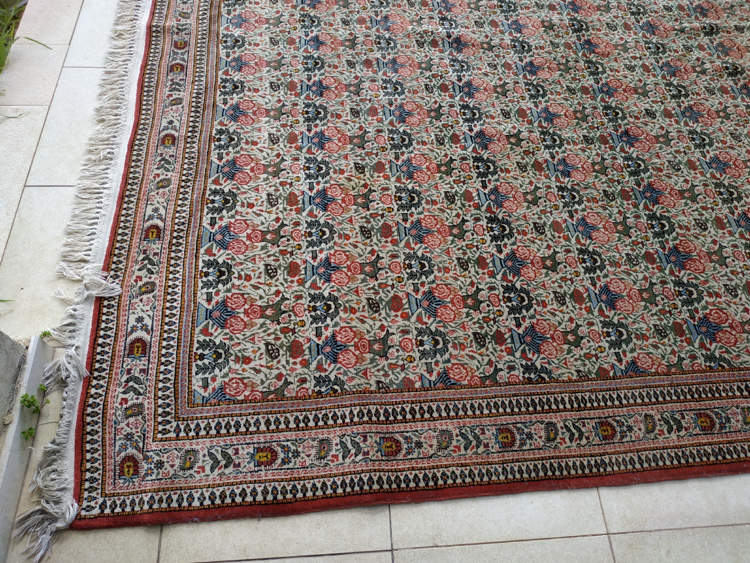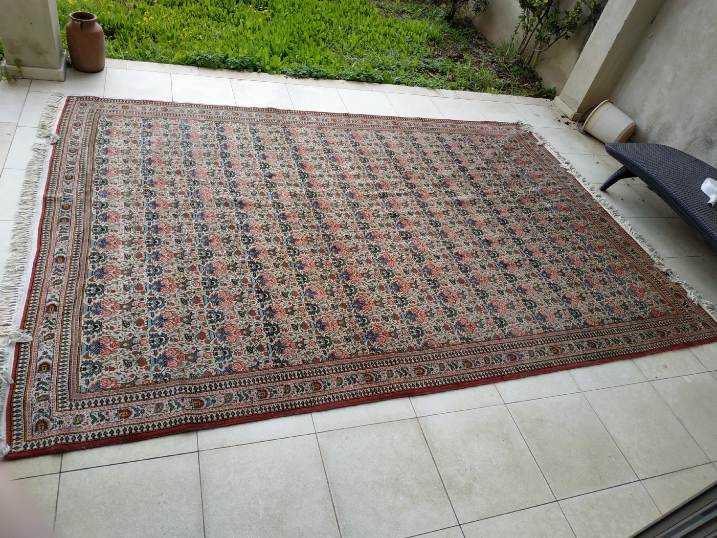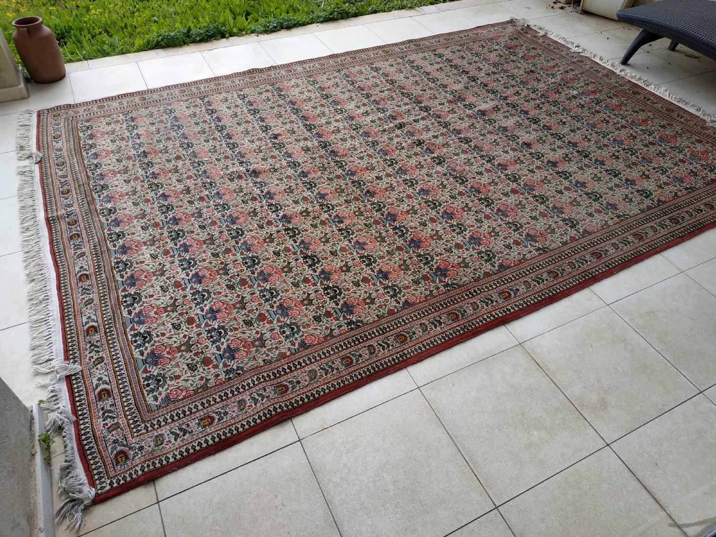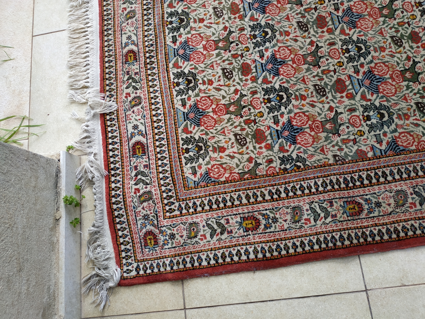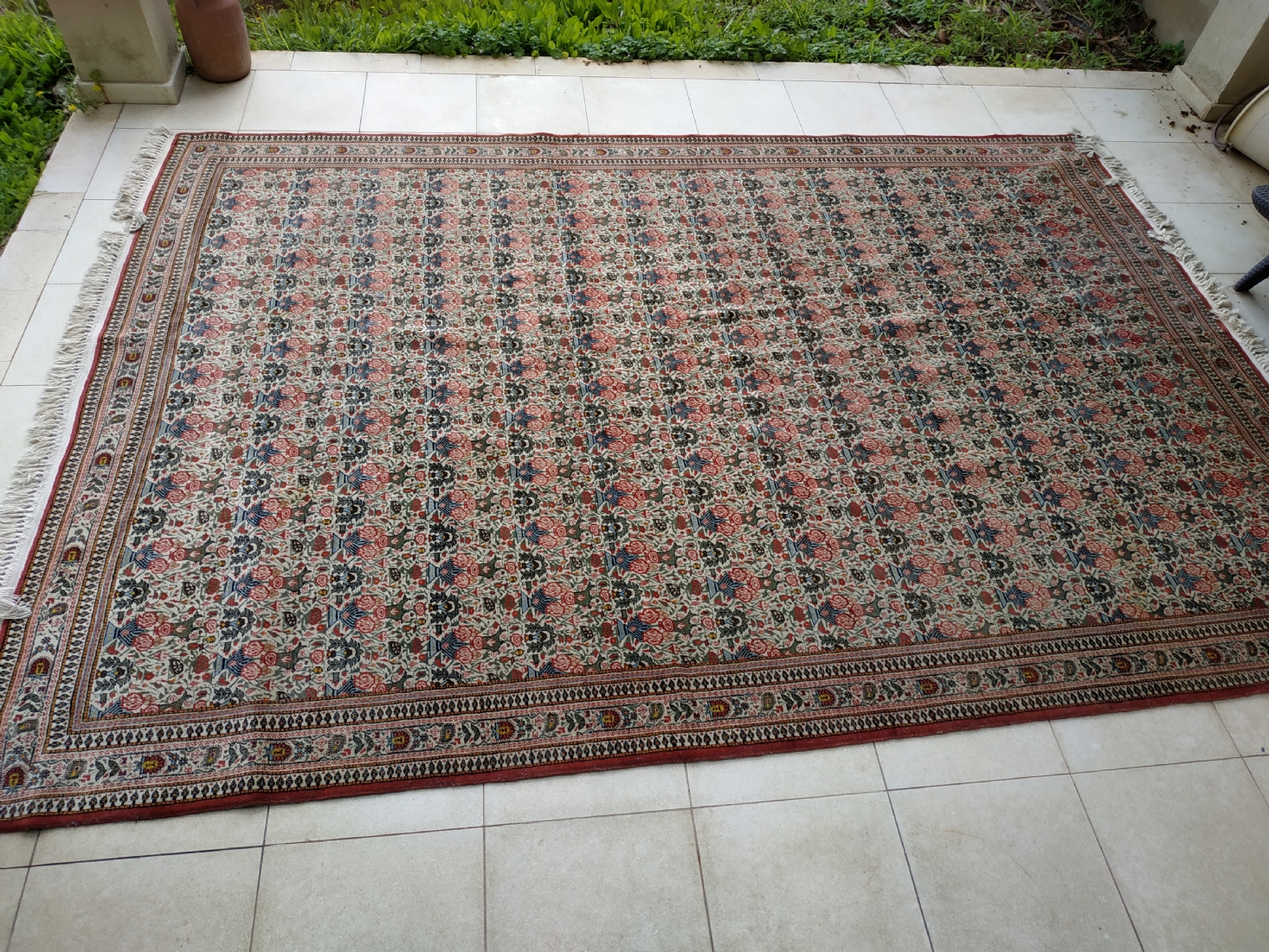 שטיח קום פרסי ישן ואיכותי, מידות: 230X335 ס"מ. (נמכר מתכולת וילה בסביון / עיזבון)