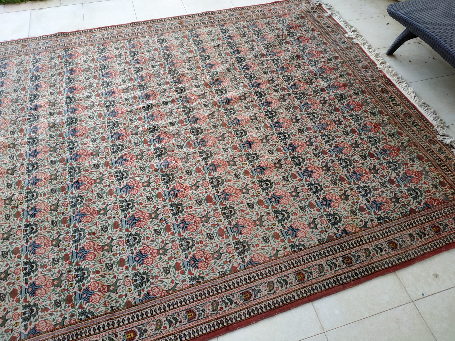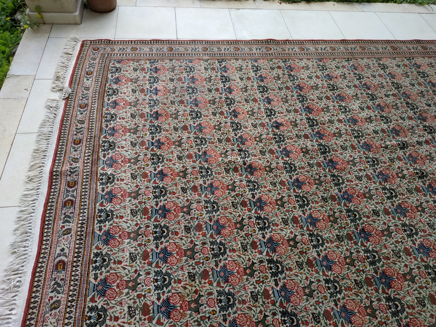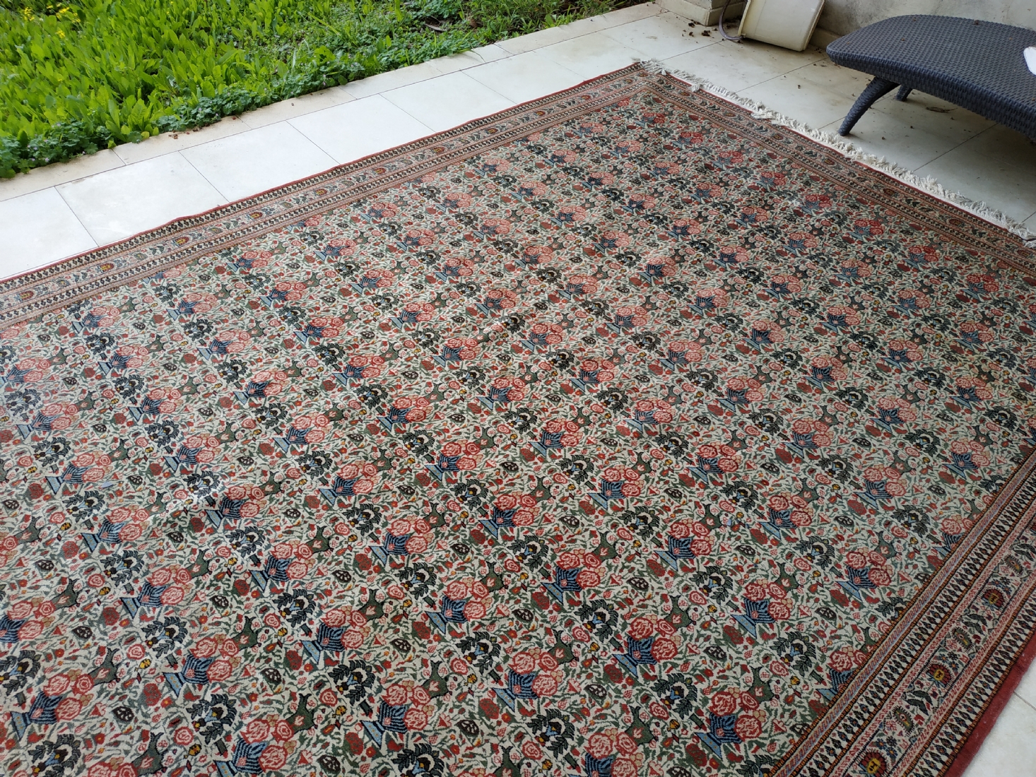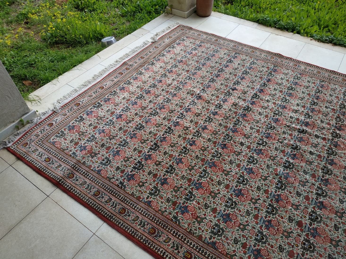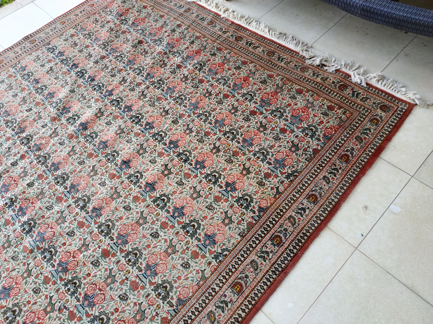 שטיח קום פרסי ישן ואיכותי, מידות: 230X335 ס"מ. (נמכר מתכולת וילה בסביון / עיזבון)