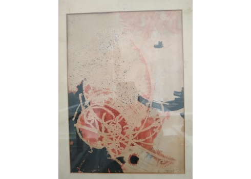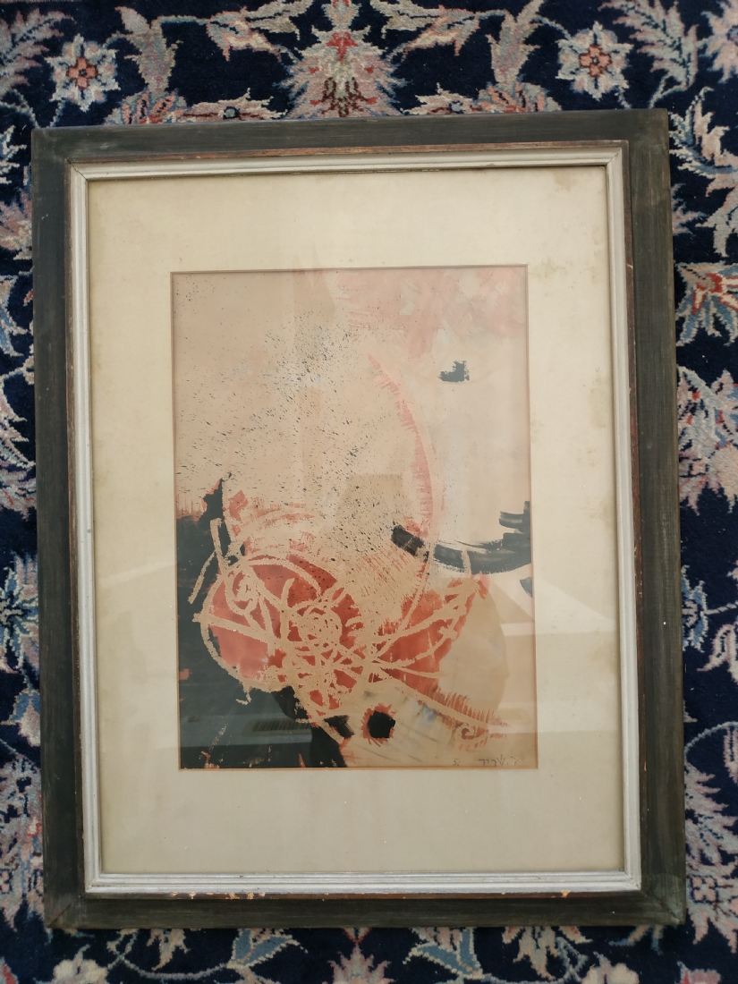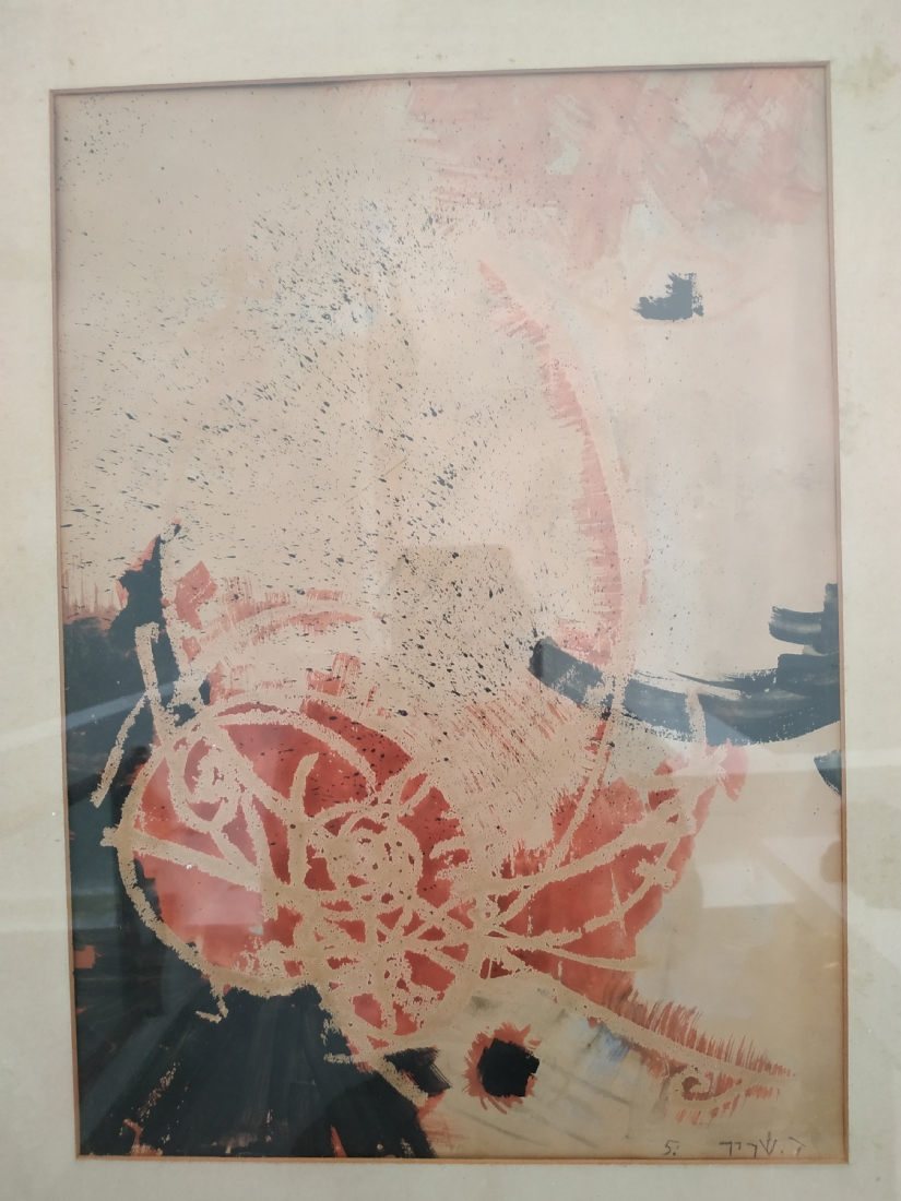 'מופשט באדום ושחור' - הדפס ישן על נייר, חתום בעיפרון: ד. שריר, מתוארך: 1951