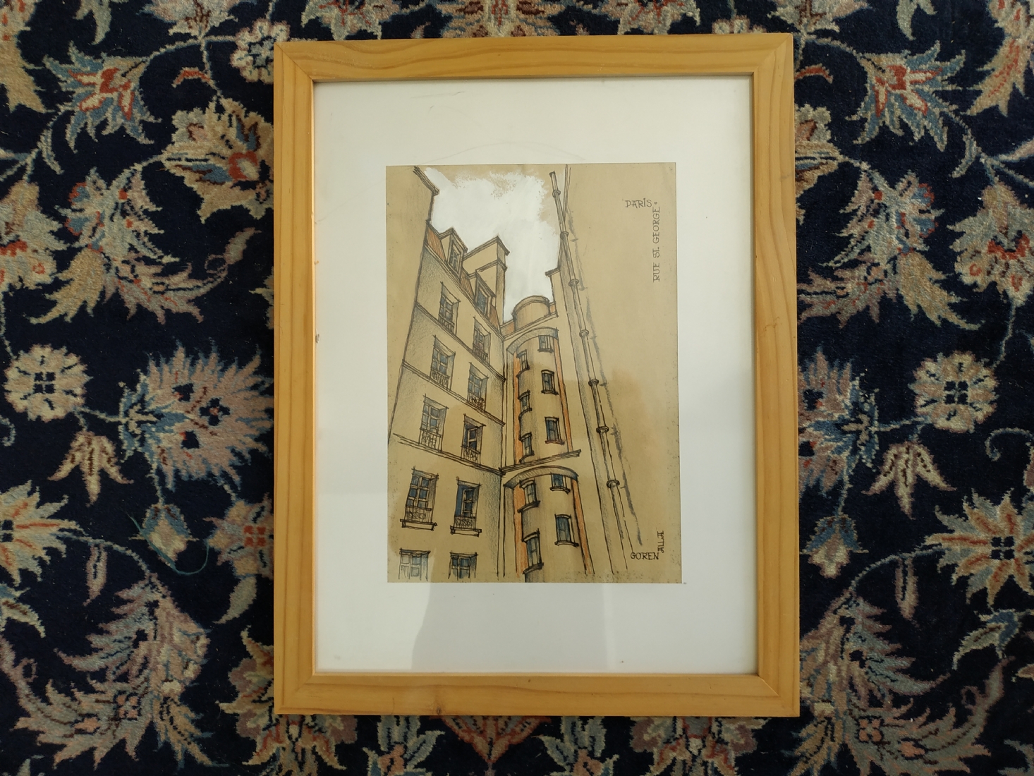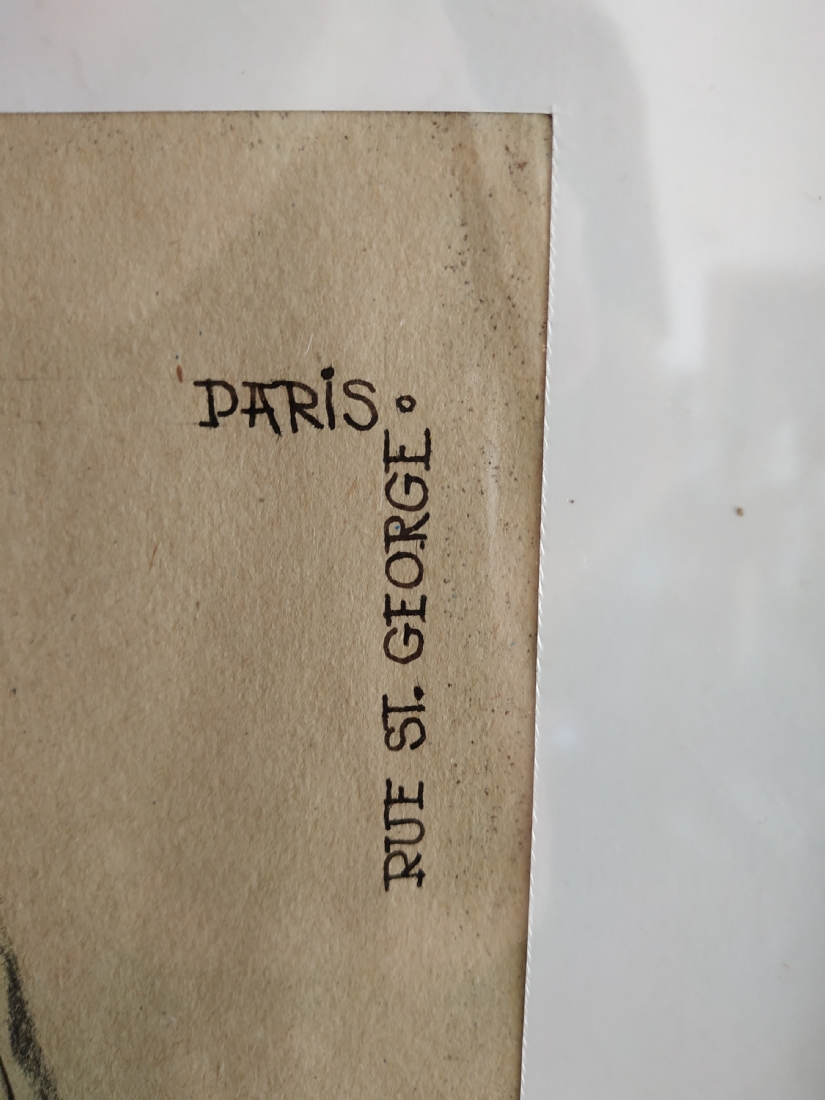 'Rue st. George Paris' - רישום, גירי פנדה וגואש על נייר, חתום: אלה גורן
