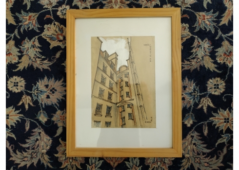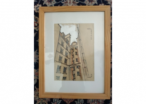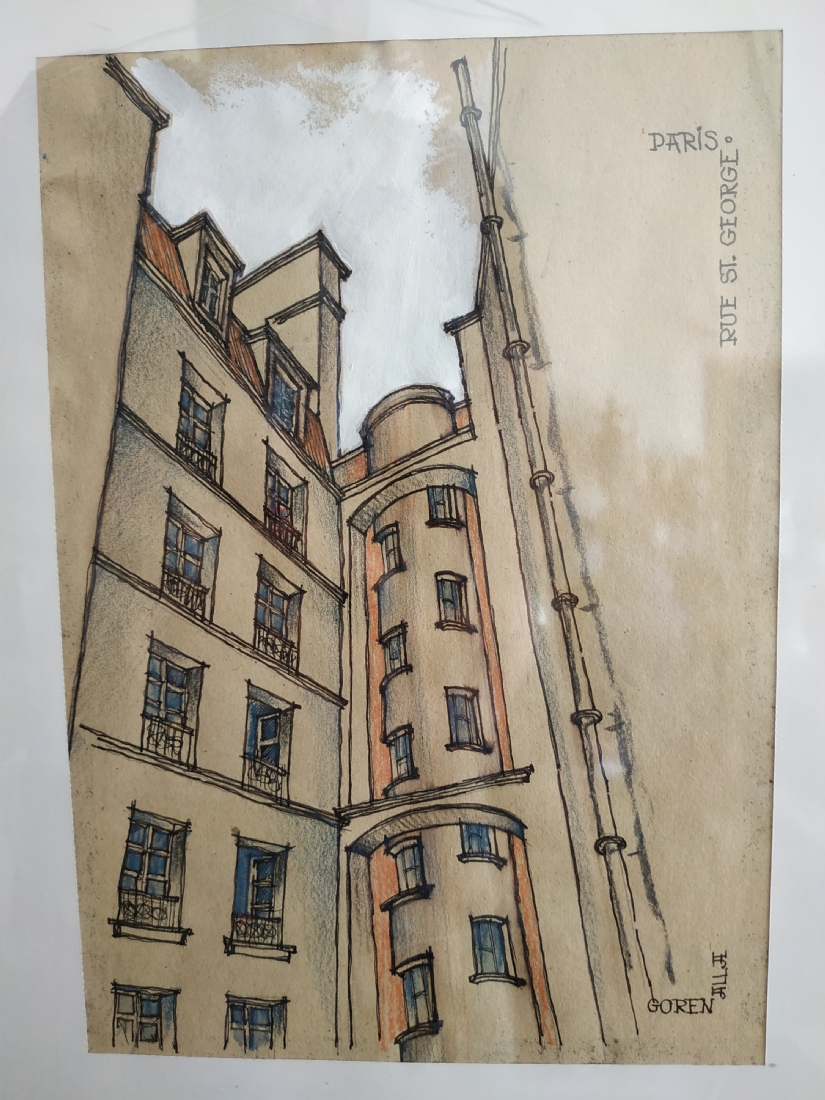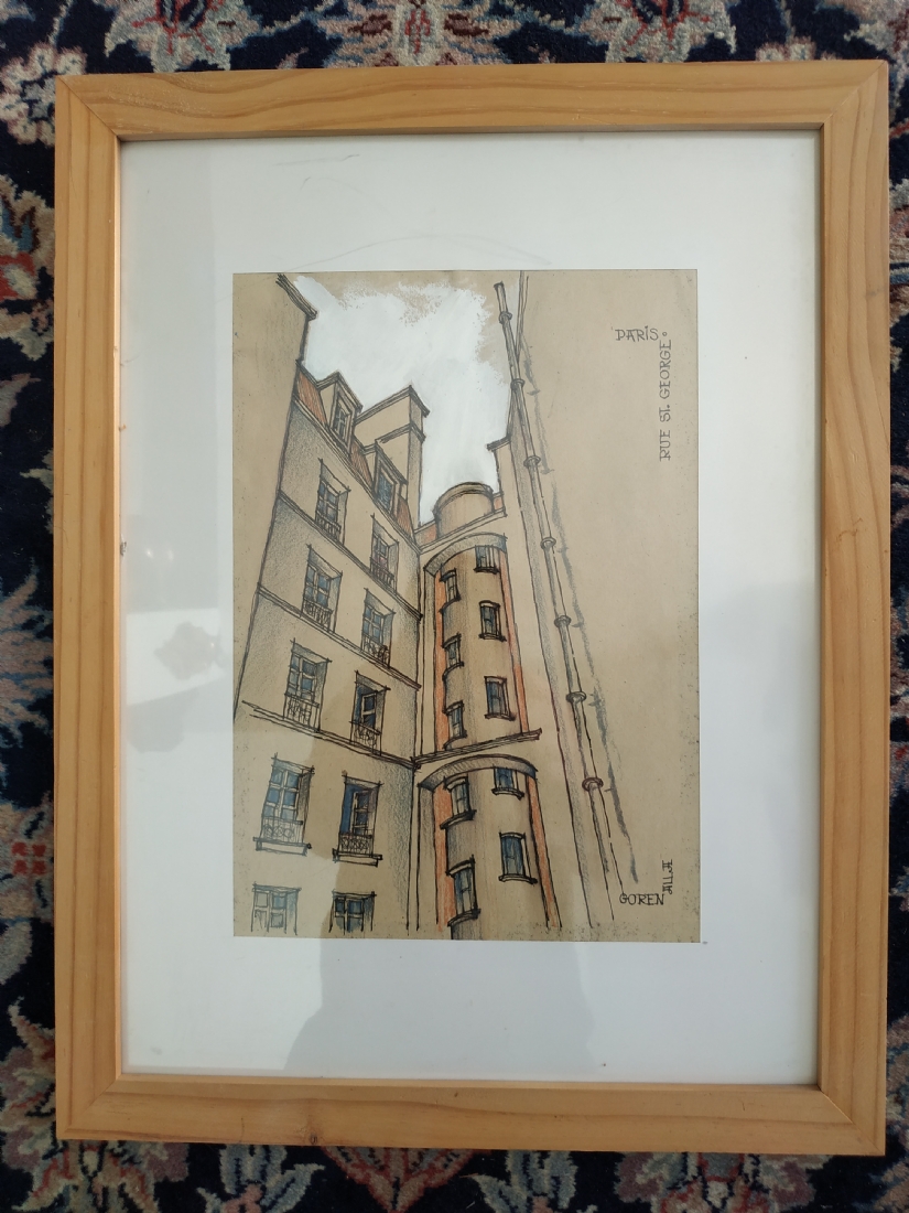 מספר הפריט בקטלוג 256'Rue st. George Paris' - רישום, גירי פנדה וגואש על נייר, חתום: אלה גורן (Alla Goren), מידות: 27X19 ס"מ.