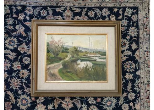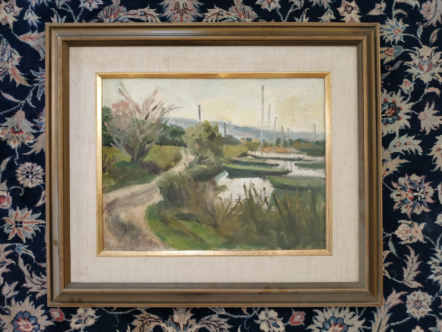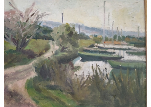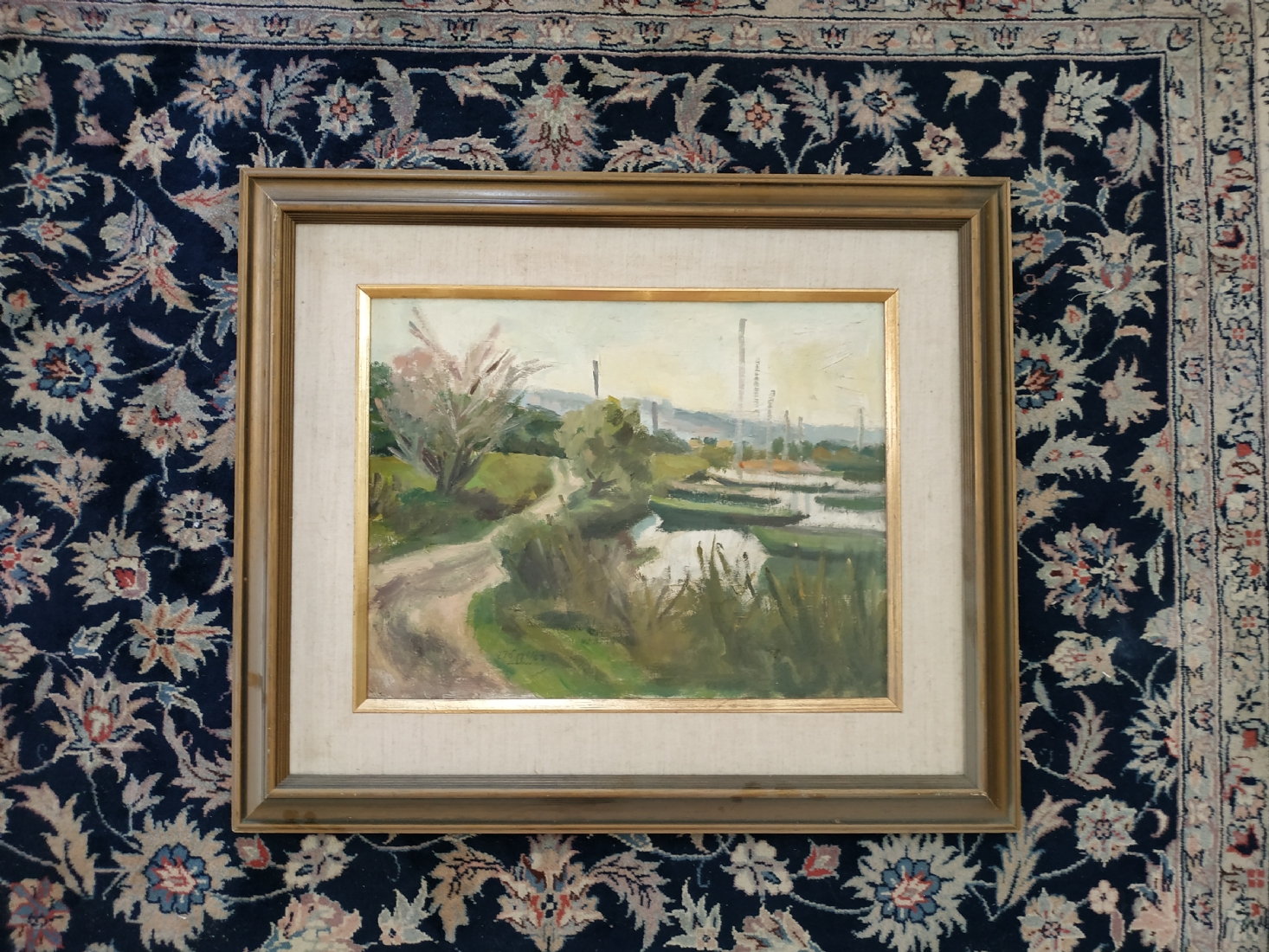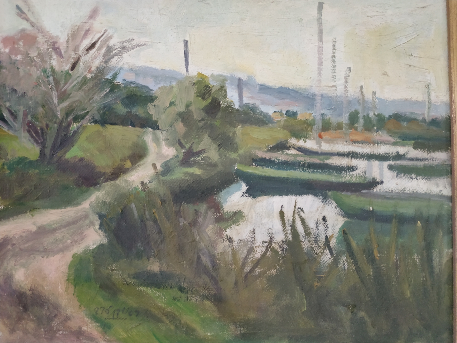 ראובן לבב (Reuven Levav) - 'סירות במעגן' - ציור ישן ויפה, שמן על בד צרפתי, חתום