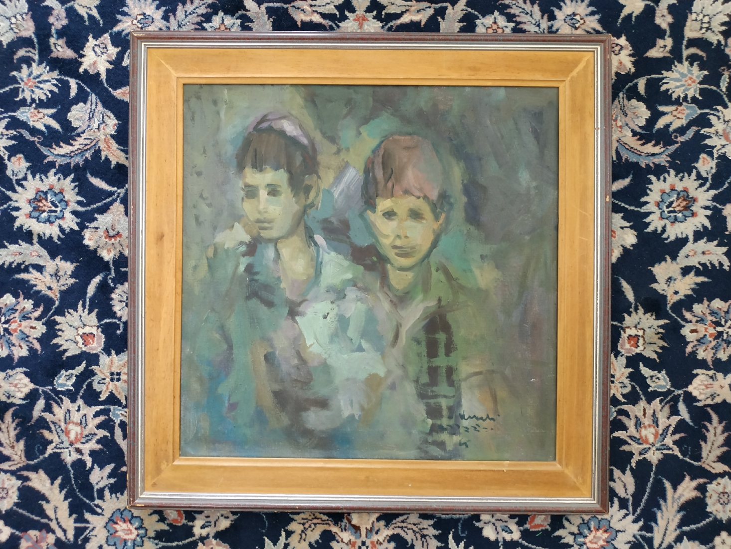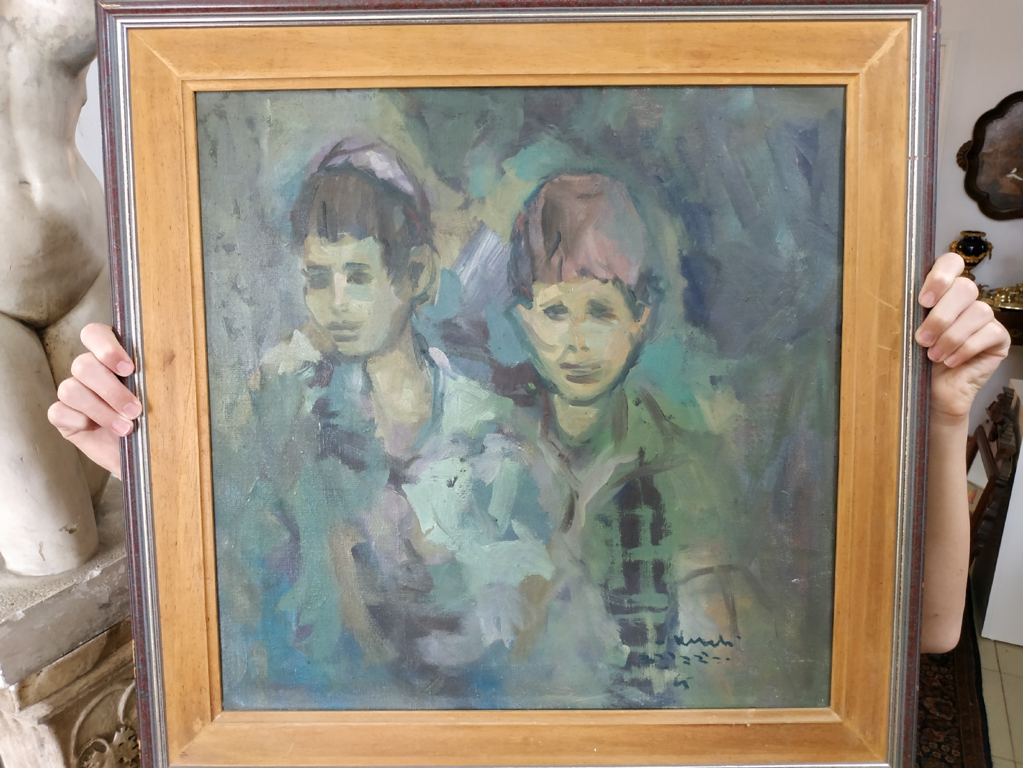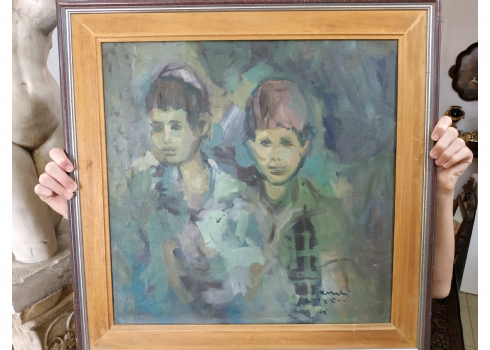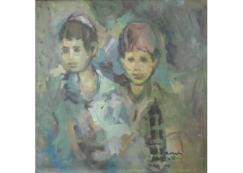 יהודה ורדי (Yehuda Vardi) - 'שני ילדים' - שמן על בד, חתום, מידות: 50X51 ס"מ.