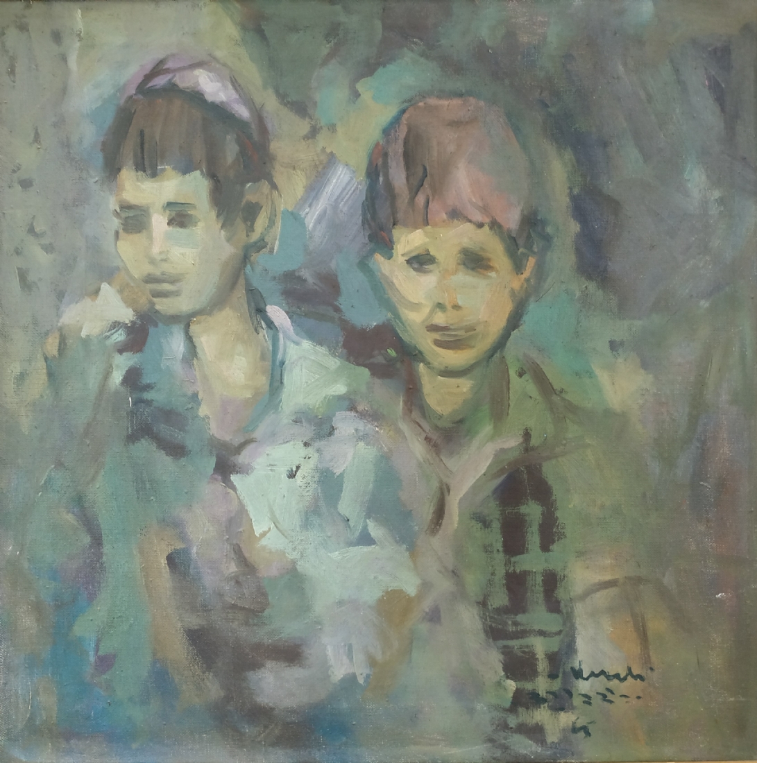 יהודה ורדי (Yehuda Vardi) - 'שני ילדים' - שמן על בד, חתום