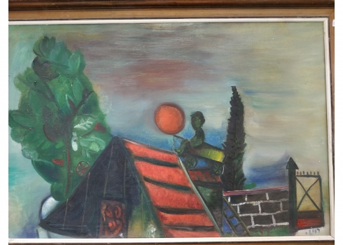 ליאו רוט (Leo Roth) - 'ירח אדום' - שמן על בד, חתום, מידות: 61X92 ס"מ.