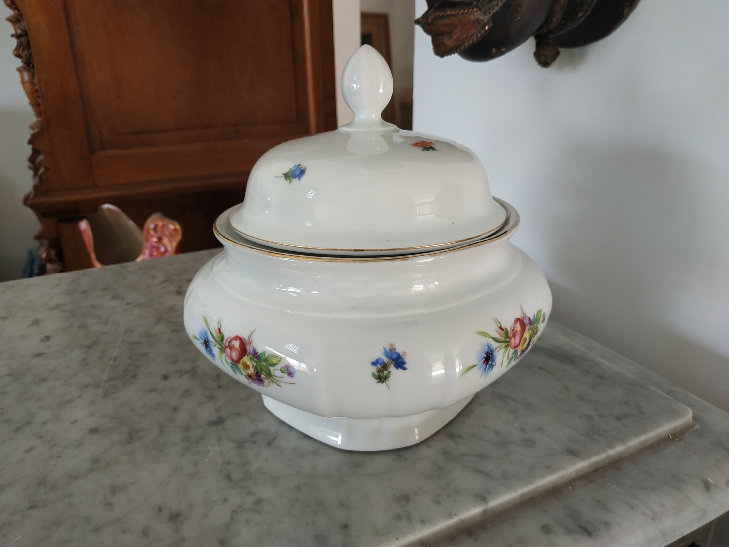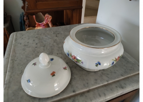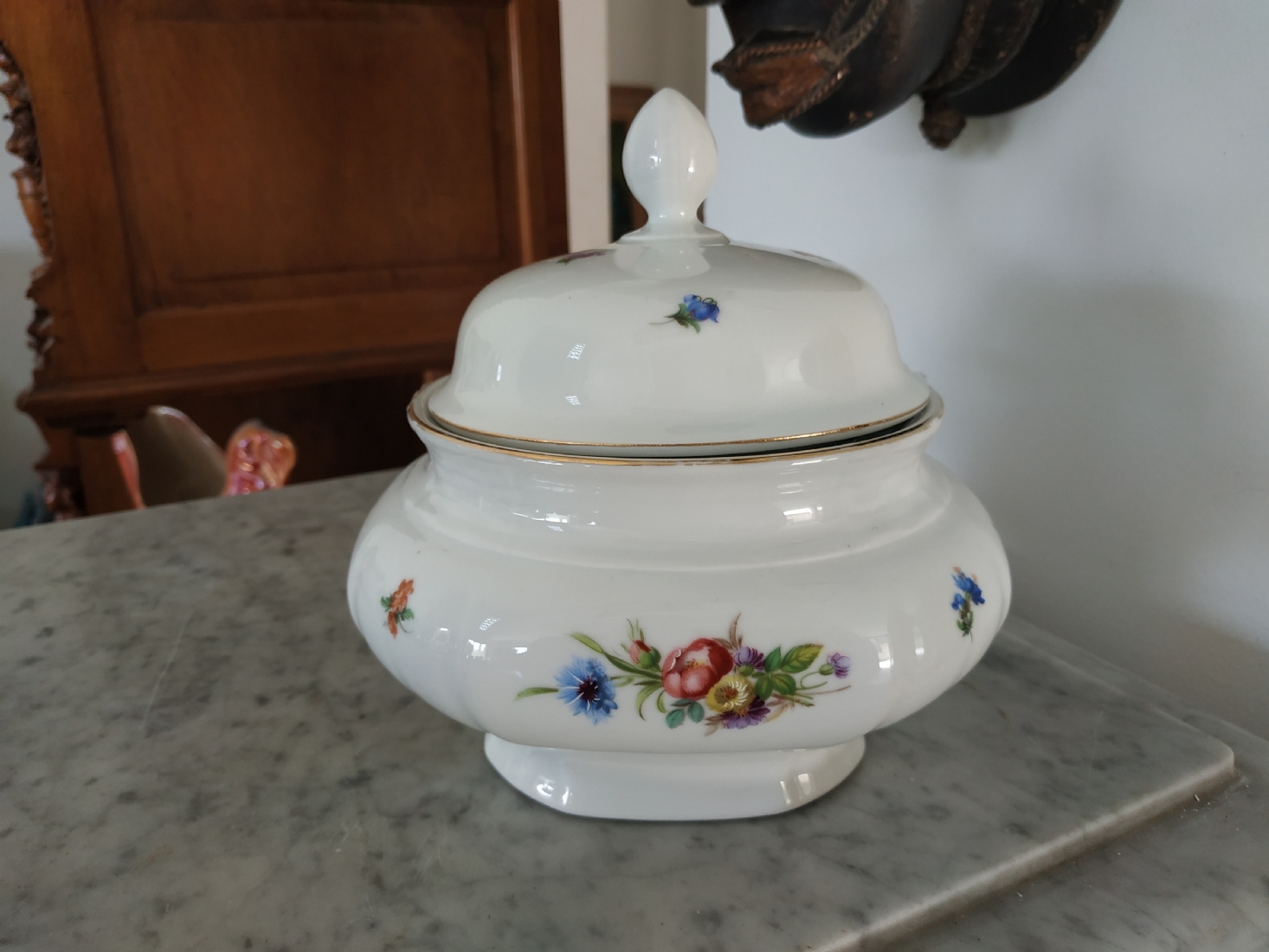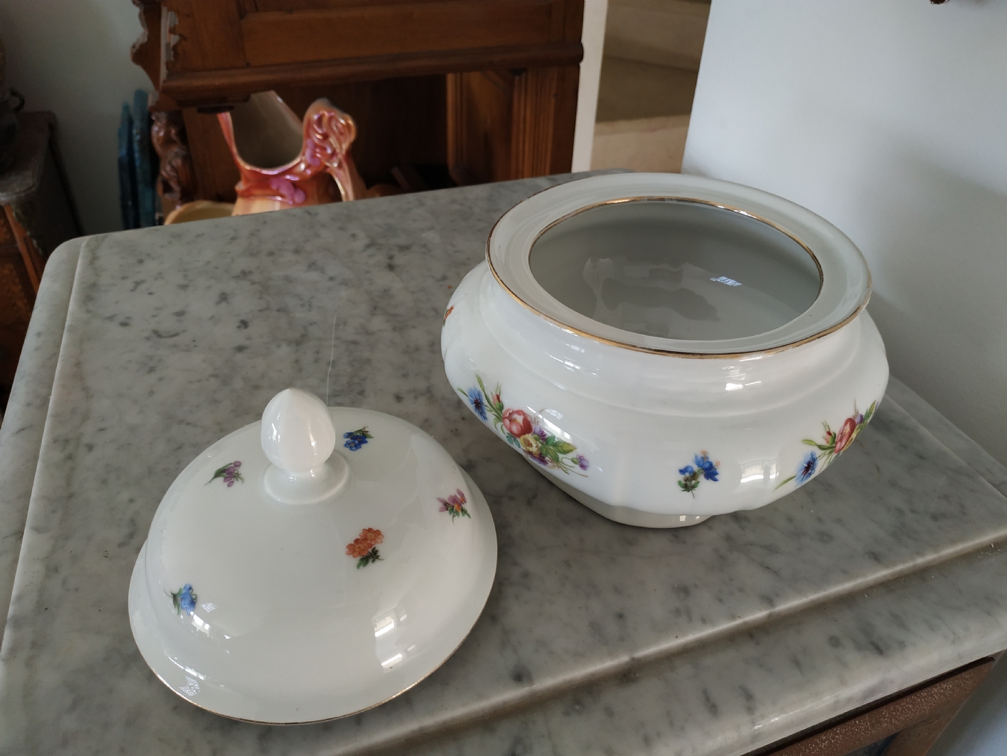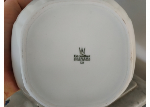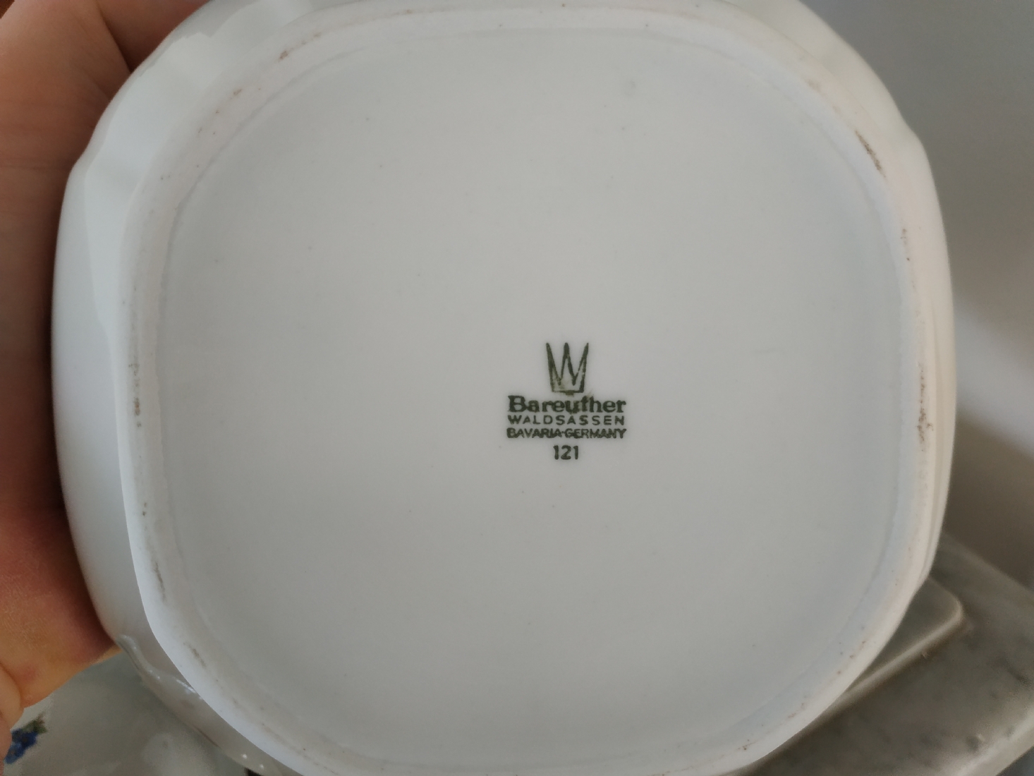 כלי פורצלן גרמני עם מכסה תואם מעוטרים וחתום Bareuther waldsassen, גובה: 17, קוטר: 13.5 ס"מ.