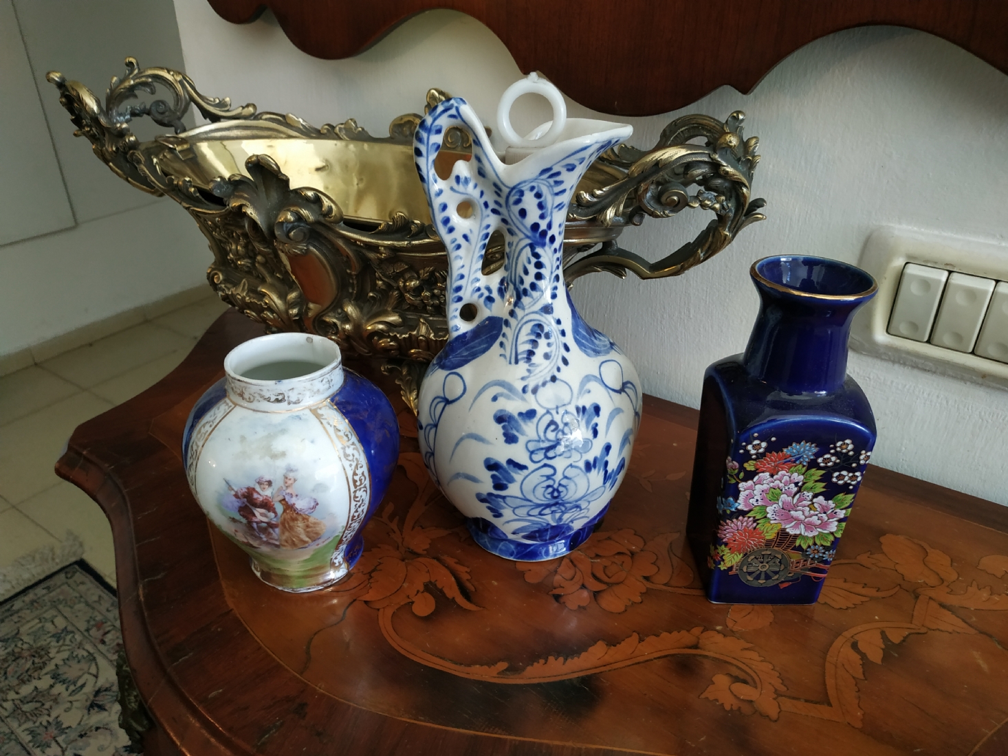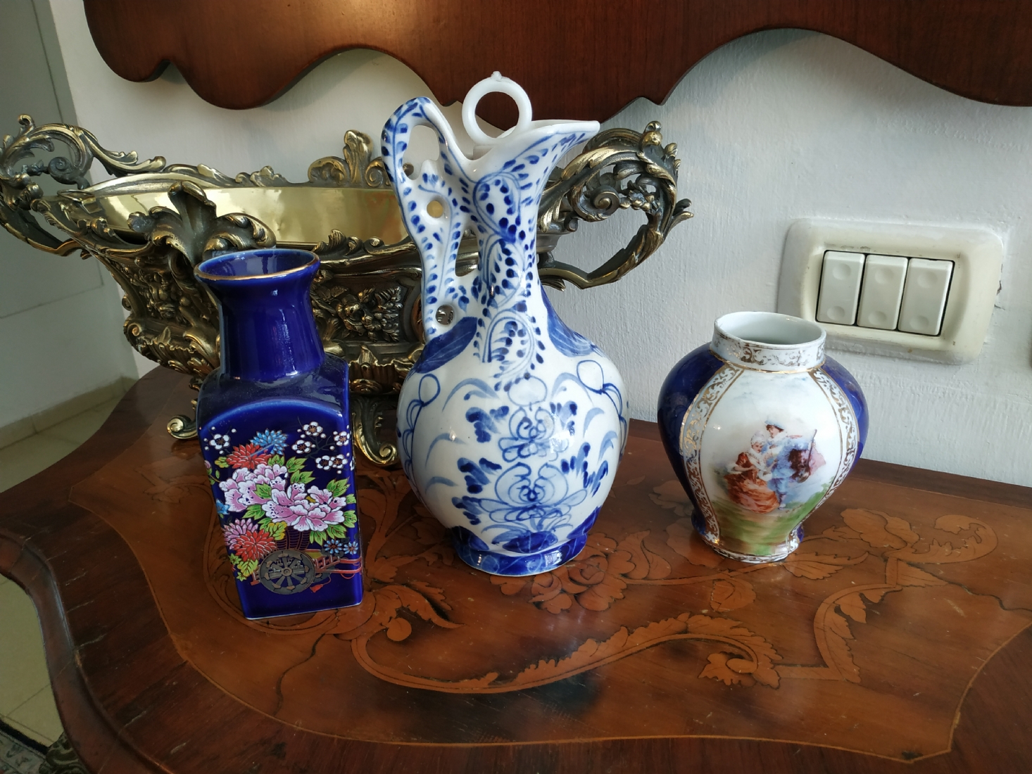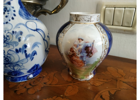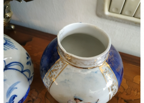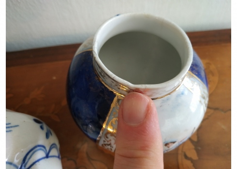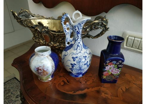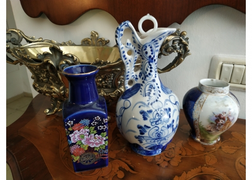 לוט של שלושה כלי פורצלן שונים, שניים חתומים, גובה הקנקן הגדול: 23.5 ס"מ.