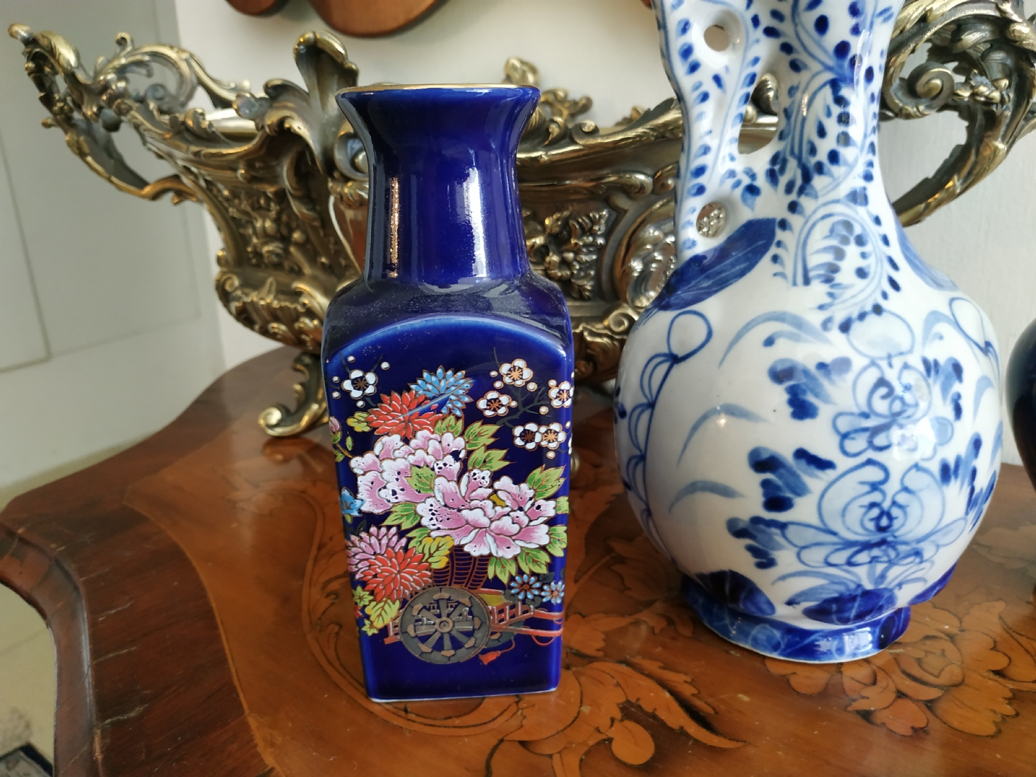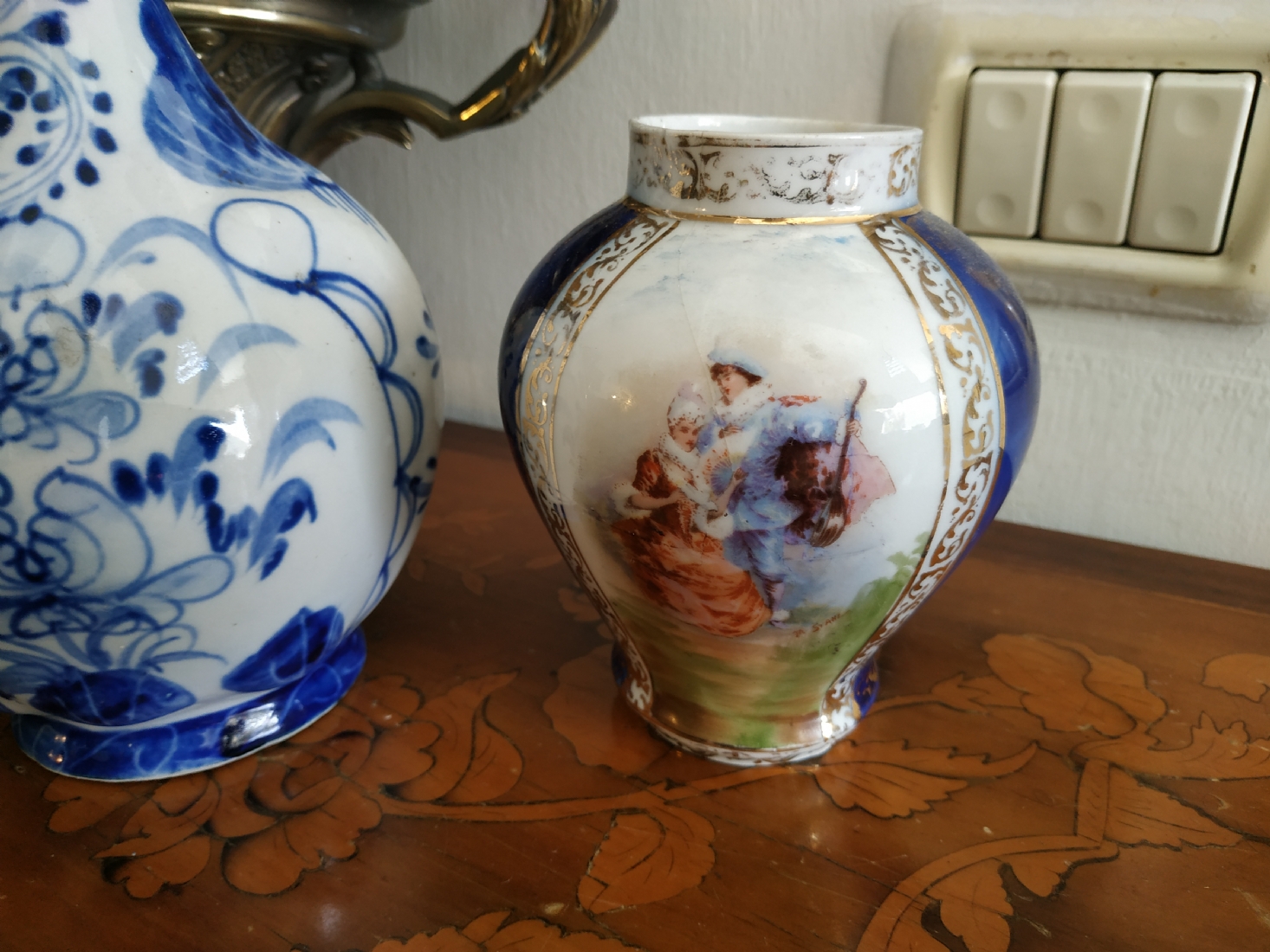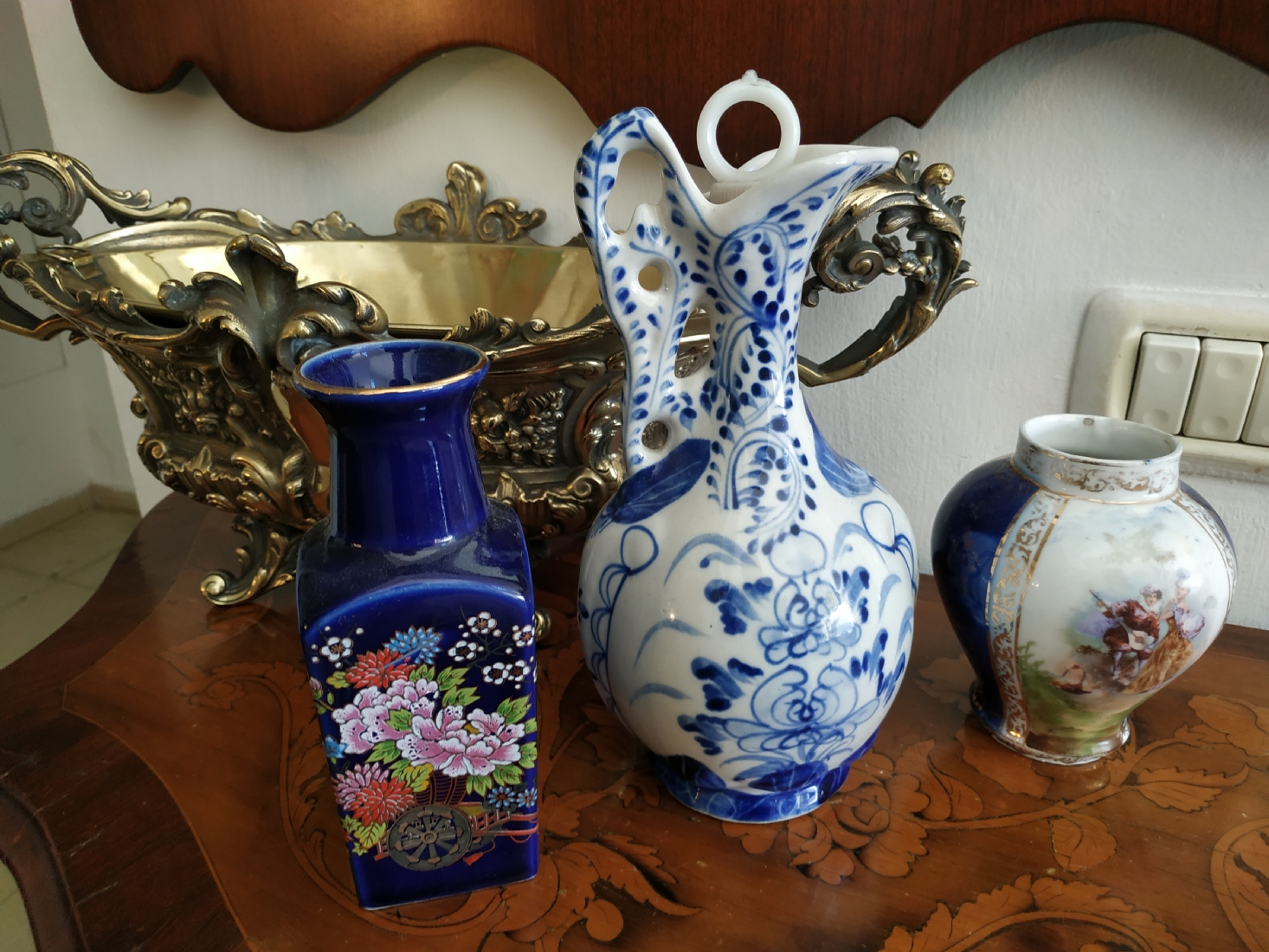 לוט של שלושה כלי פורצלן שונים, שניים חתומים, גובה הקנקן הגדול: 23.5 ס"מ.