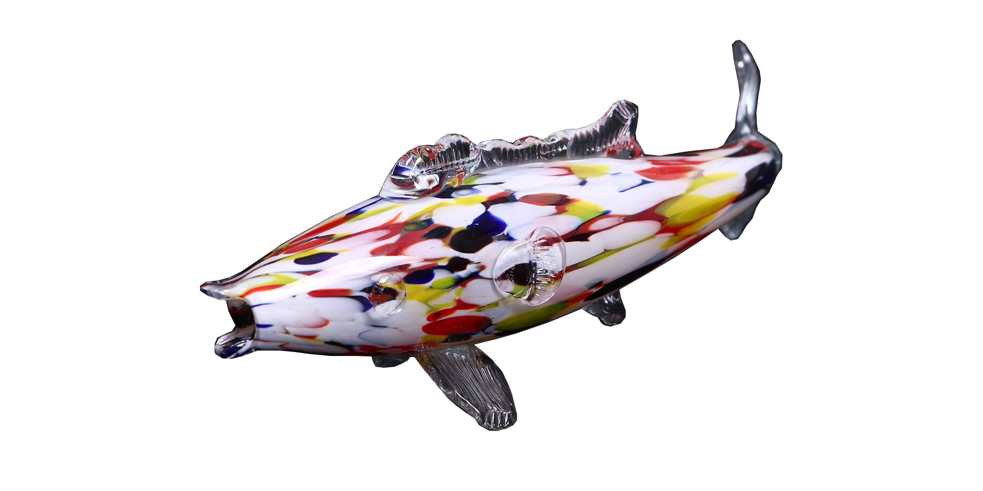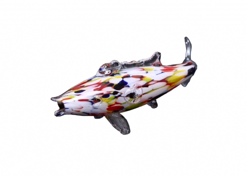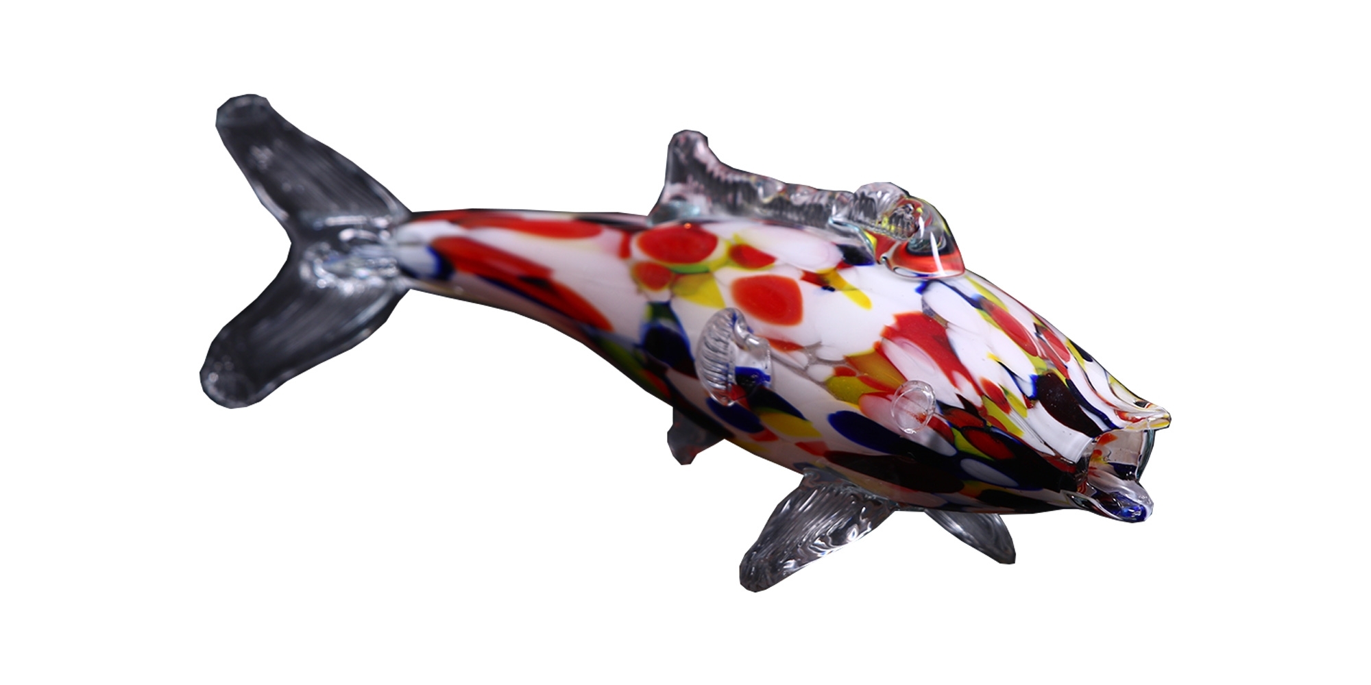 קישוט שולחני ישן עשוי זכוכית מעוצב כדג, עשוי בעבודת ניפוח ידנית, אורך: 32 ס"מ.