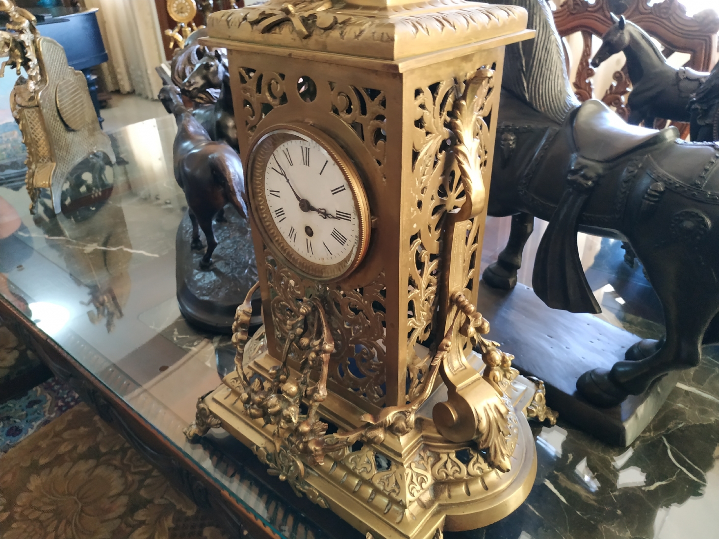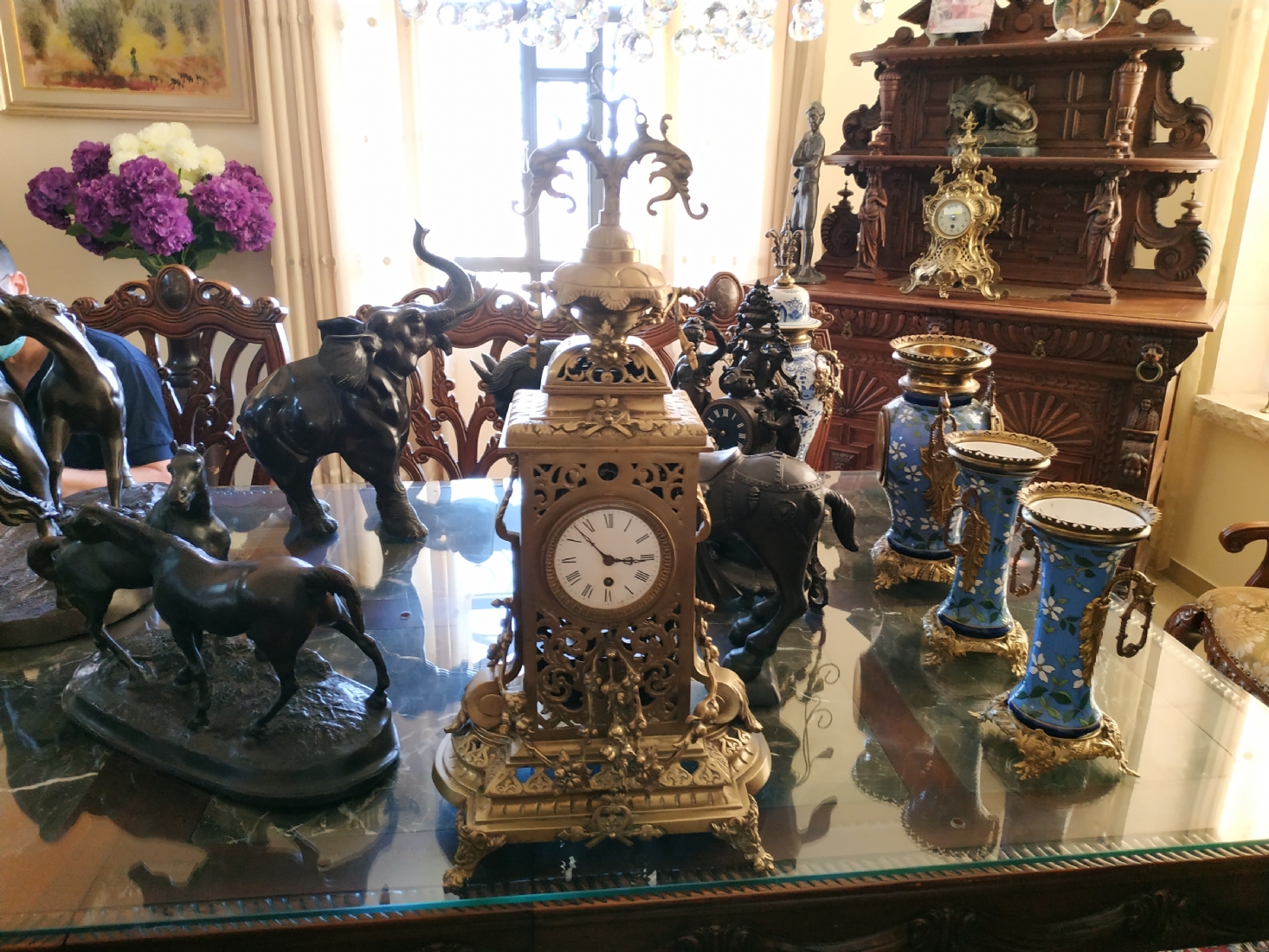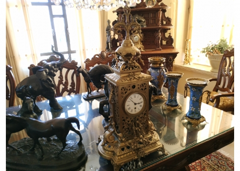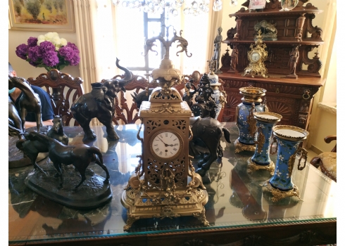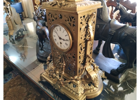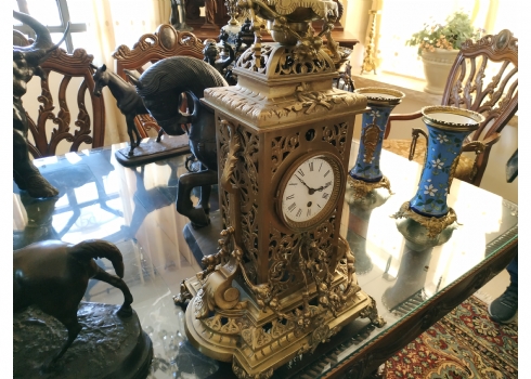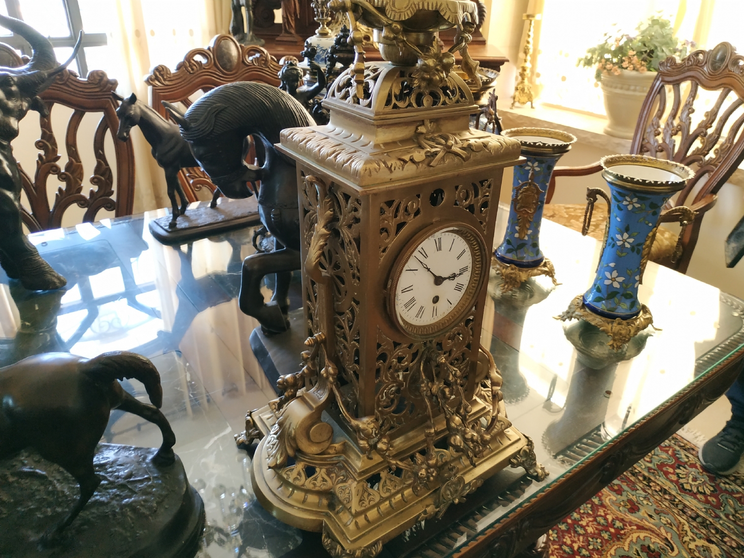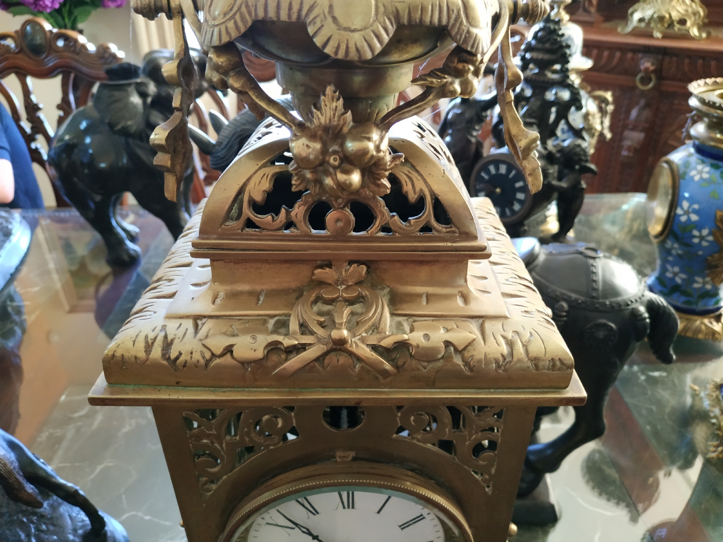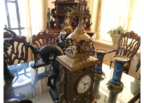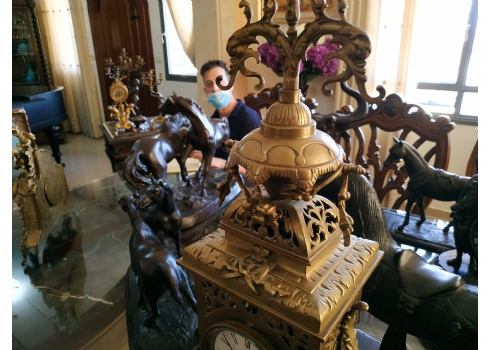 שעון קמין גדול ומרשים מאד עשוי ברונזה בסגנון הניאו רנסנס, גובה: 70 ס"מ, רוחב: 35 ס"מ, עומק: 28 ס"מ. (הפריט הושאר בבית בדלית אל כרמל, הזוכה בו מתחייב לפנותו מהבית תוך שבוע מיום המכירה הפומבית בתיאום עם בעל הבית).