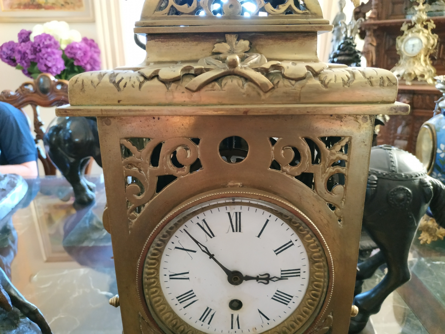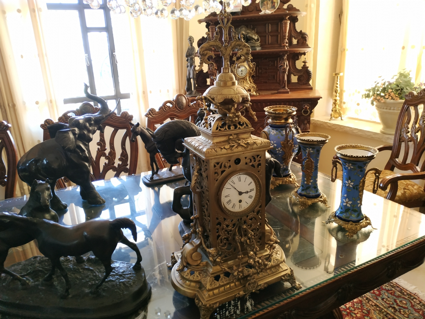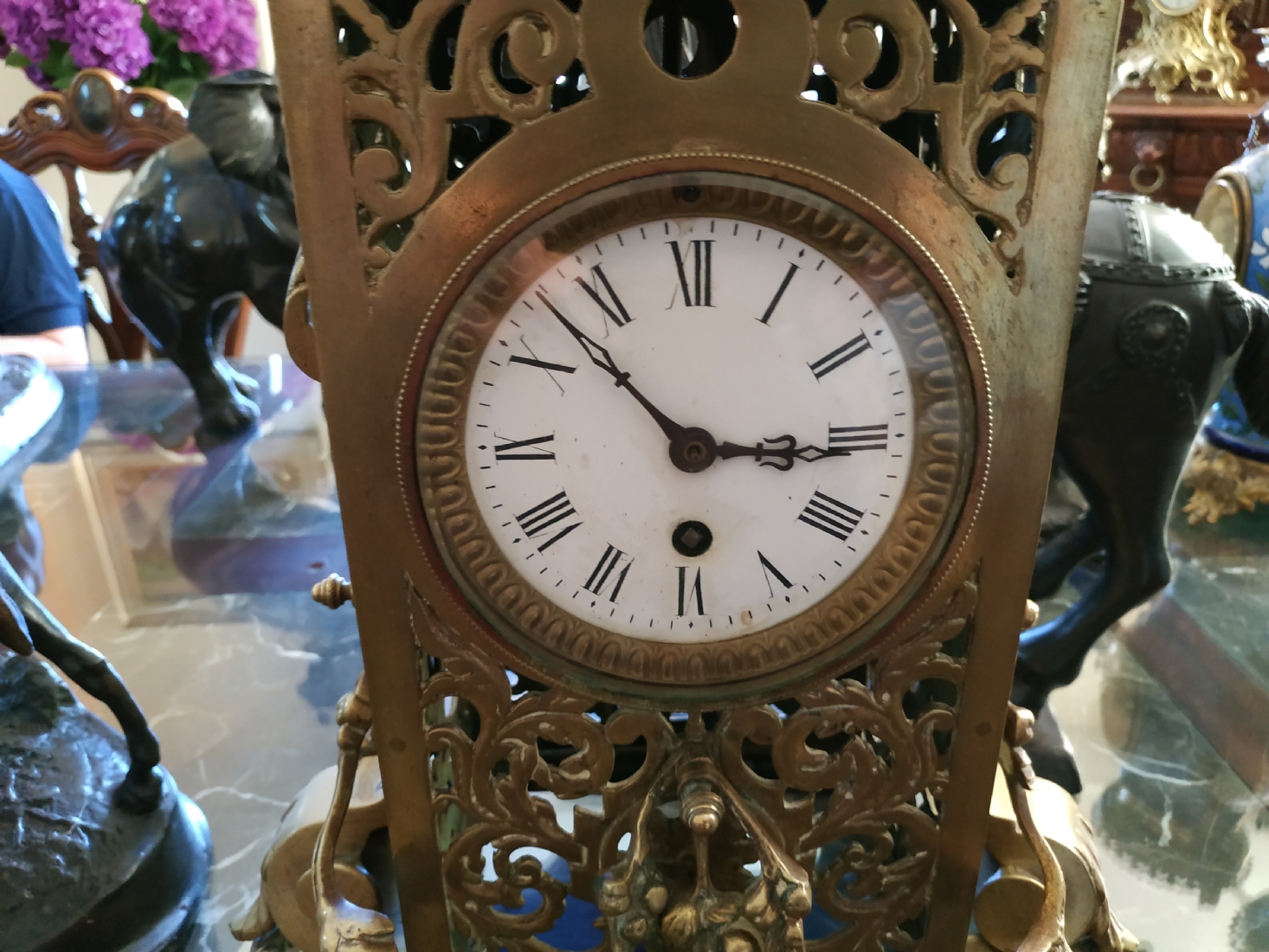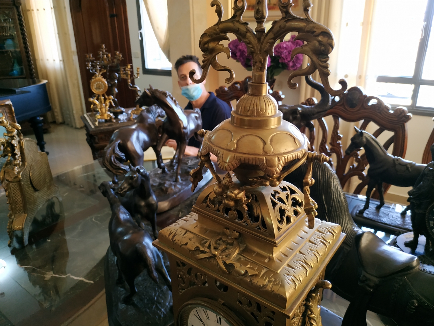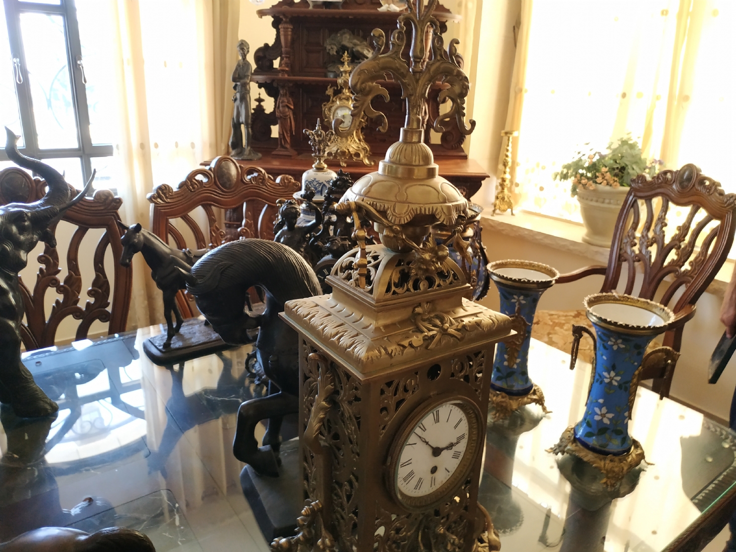 שעון קמין גדול ומרשים מאד עשוי ברונזה בסגנון הניאו רנסנס, גובה: 70 ס"מ, רוחב: 35 ס"מ, עומק: 28 ס"מ. (הפריט הושאר בבית בדלית אל כרמל, הזוכה בו מתחייב לפנותו מהבית תוך שבוע מיום המכירה הפומבית בתיאום עם בעל הבית).