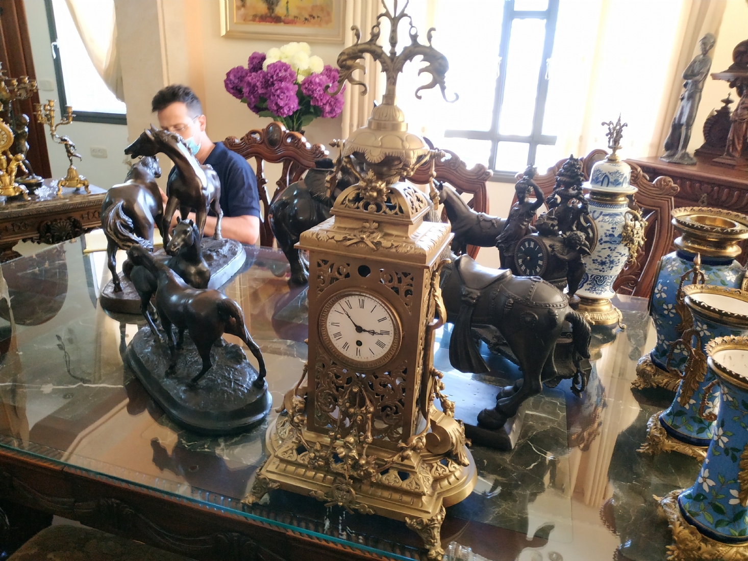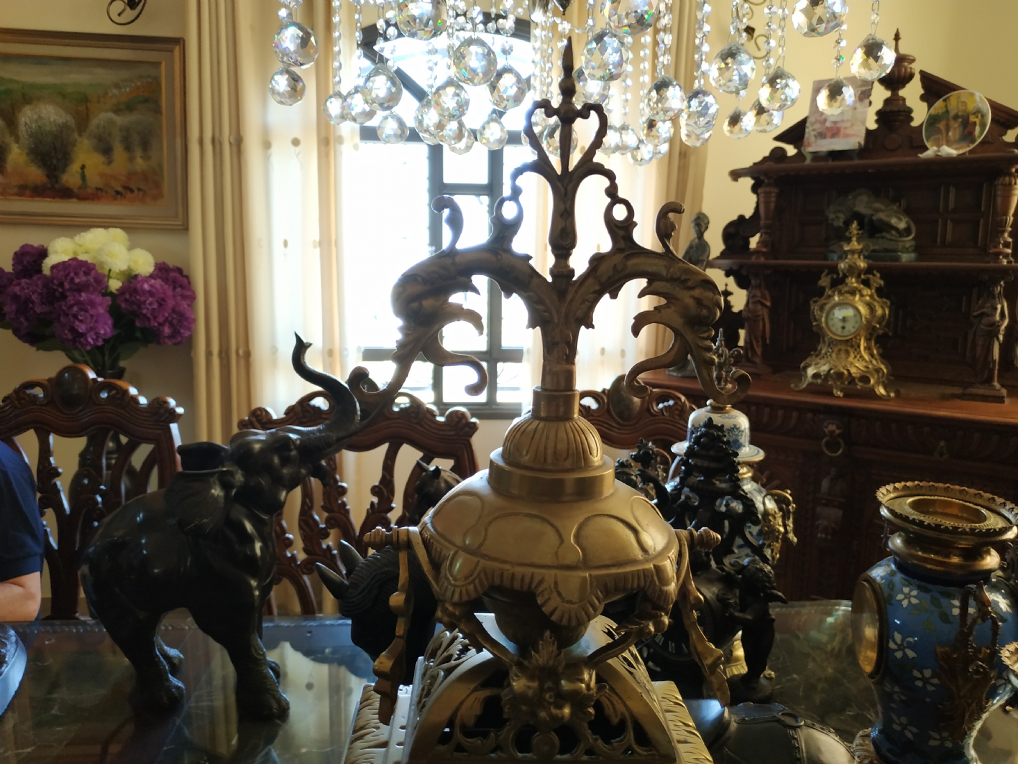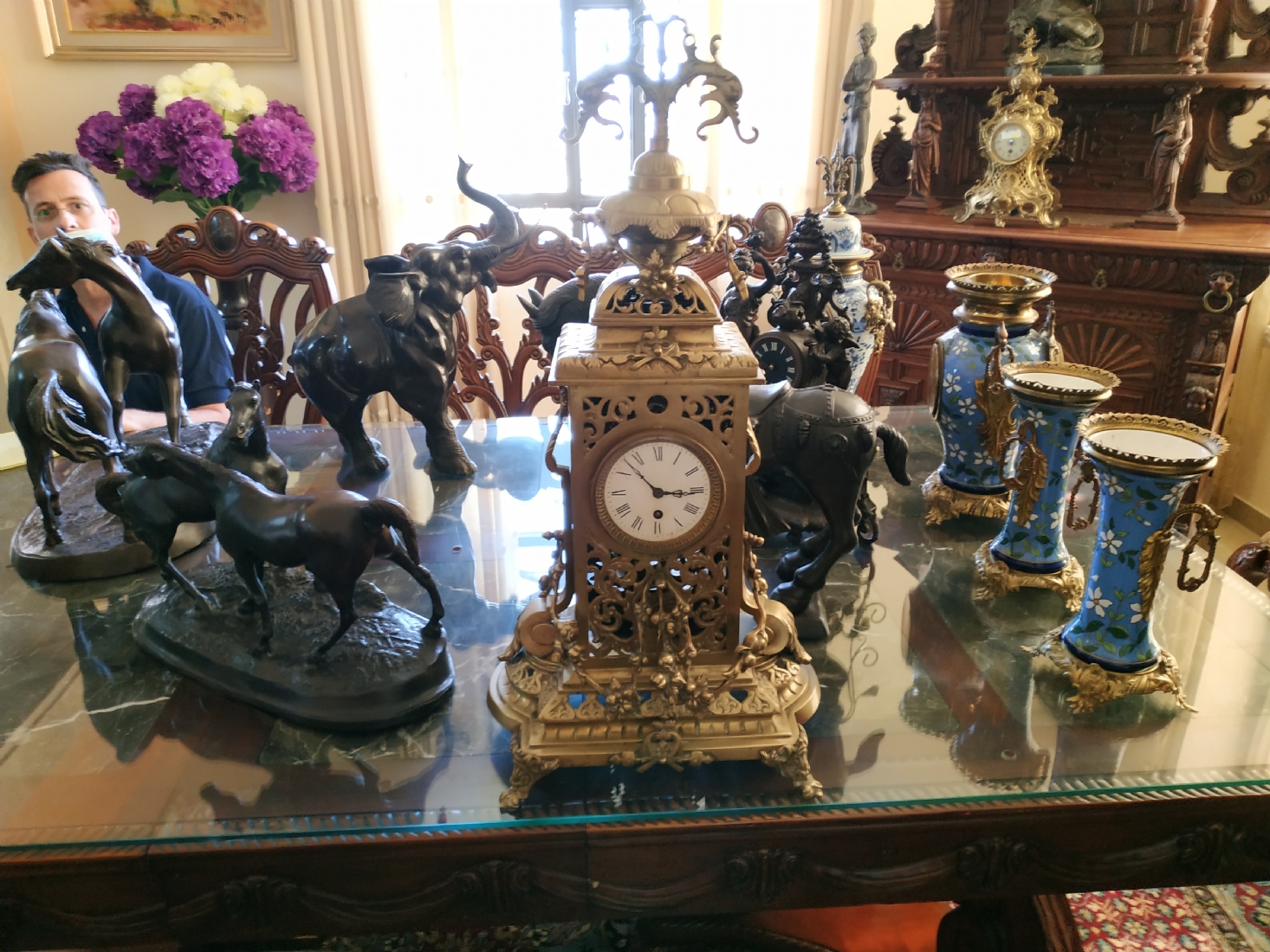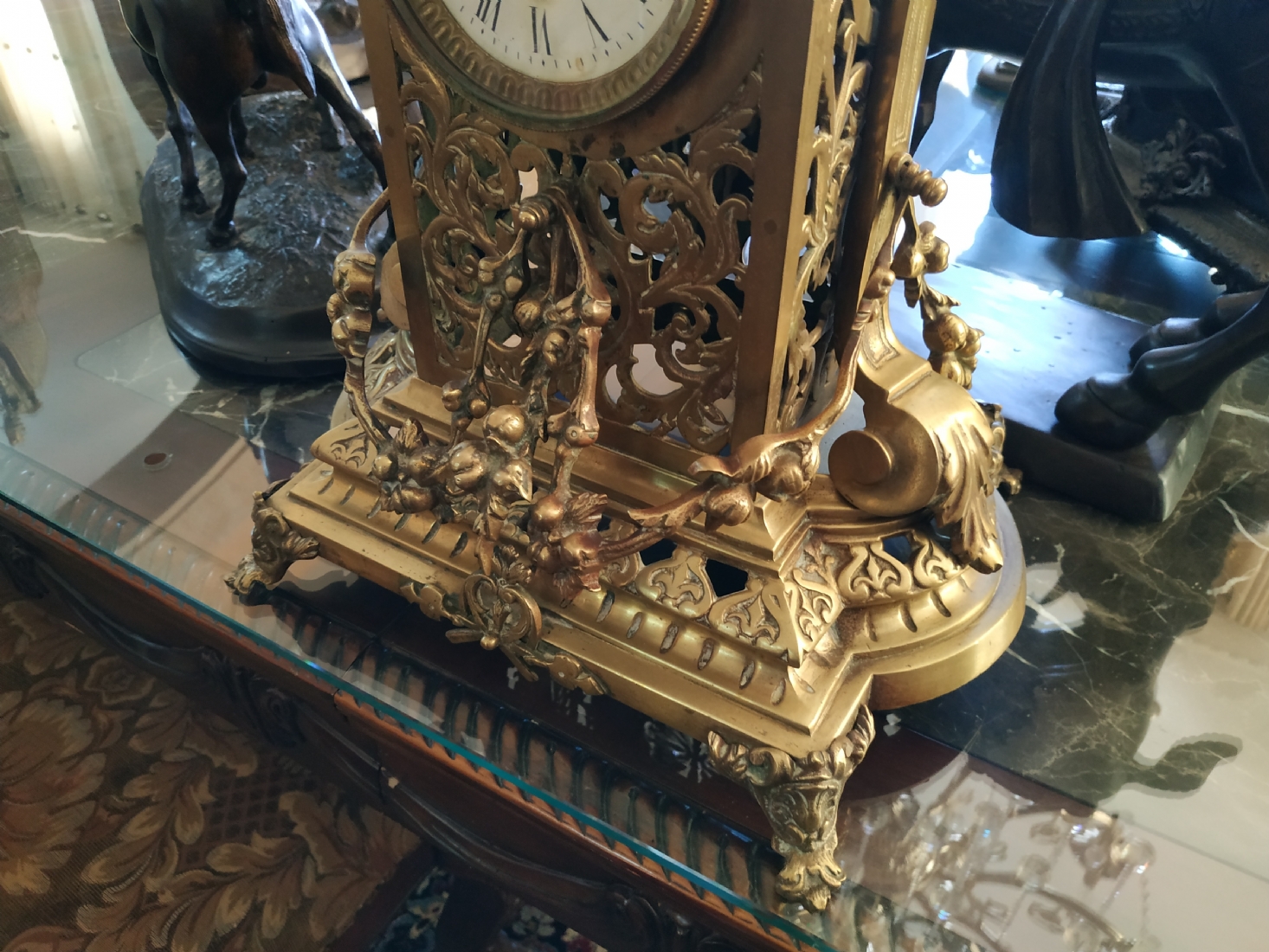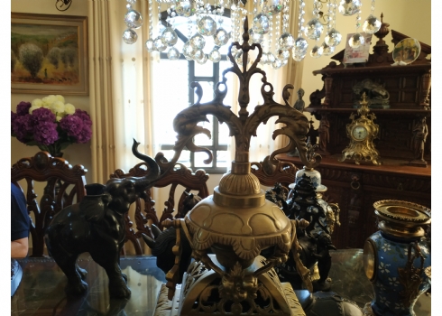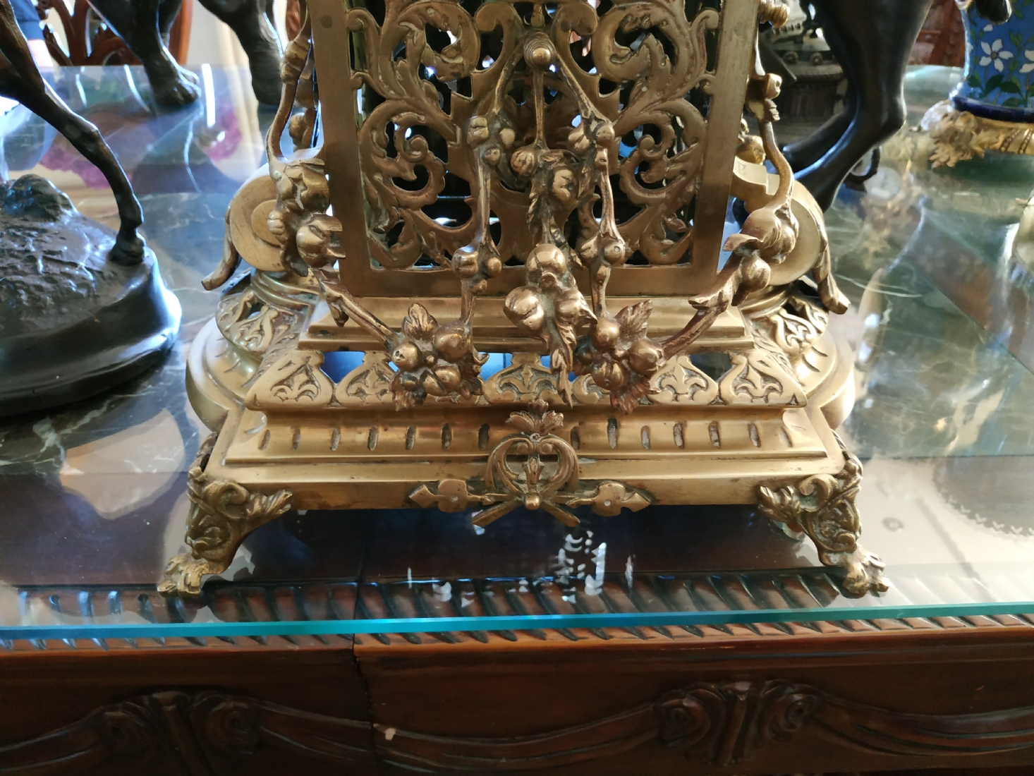 שעון קמין גדול ומרשים מאד עשוי ברונזה בסגנון הניאו רנסנס, גובה: 70 ס"מ, רוחב: 35 ס"מ, עומק: 28 ס"מ. (הפריט הושאר בבית בדלית אל כרמל, הזוכה בו מתחייב לפנותו מהבית תוך שבוע מיום המכירה הפומבית בתיאום עם בעל הבית).