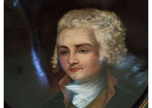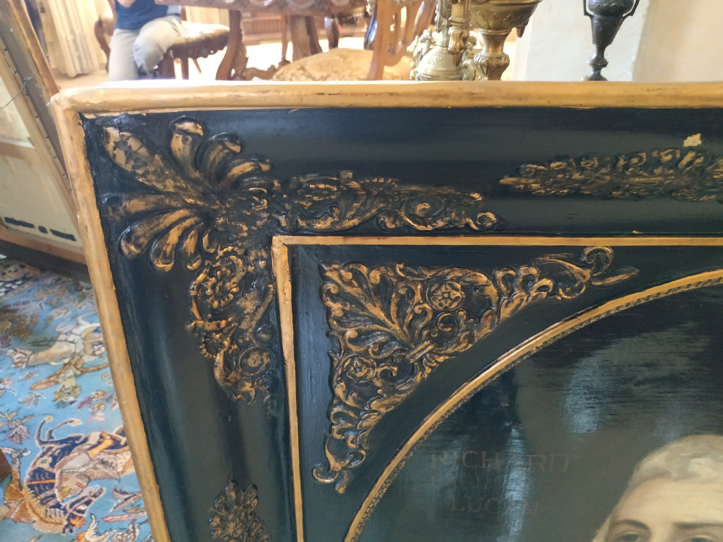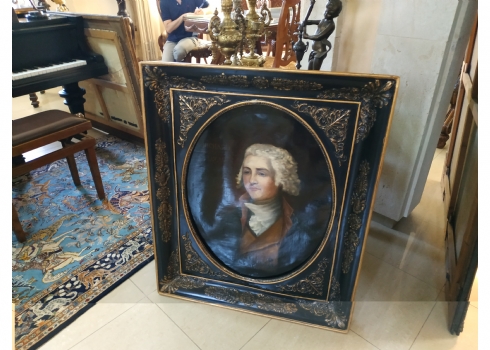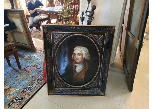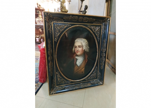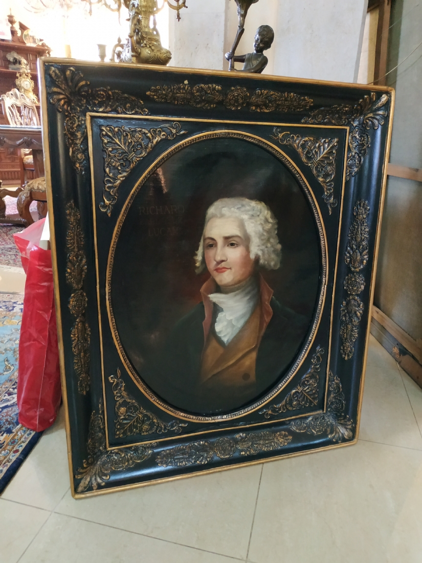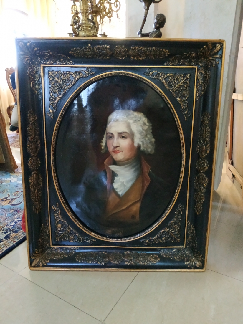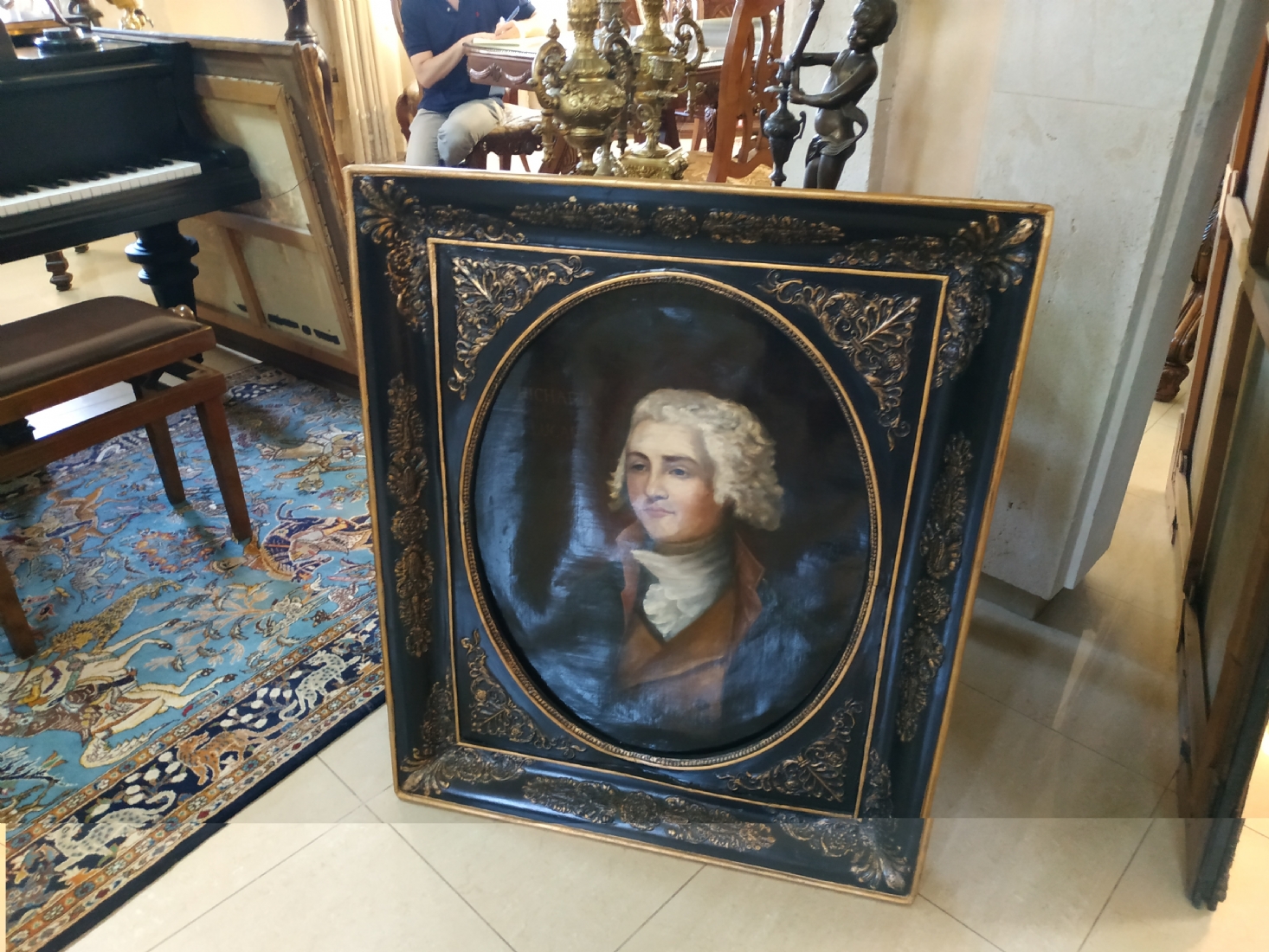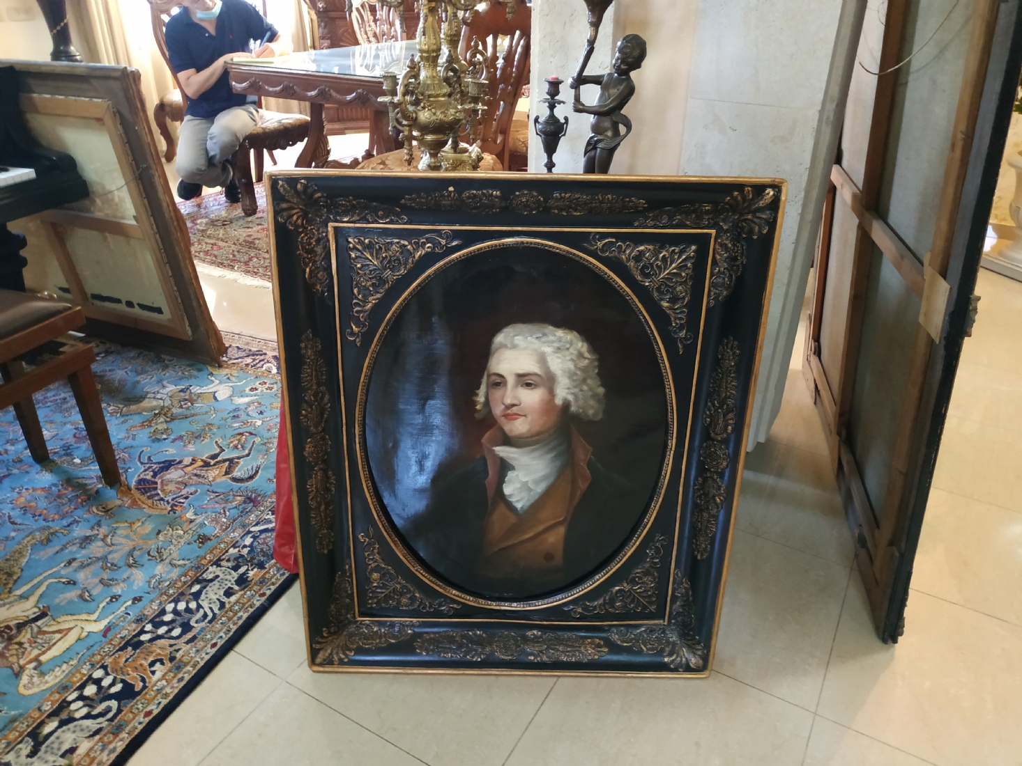 'אציל' ציור אובאלי ישן בסגנון עתיק, שמן על בד, לא חתום, גובה: 77X94 ס"מ, מידות המסגרת: 97X80 ס"מ. (הפריט הושאר בבית בדלית אל כרמל, הזוכה בו מתחייב לפנותו מהבית תוך שבוע מיום המכירה הפומבית בתיאום עם בעל הבית).