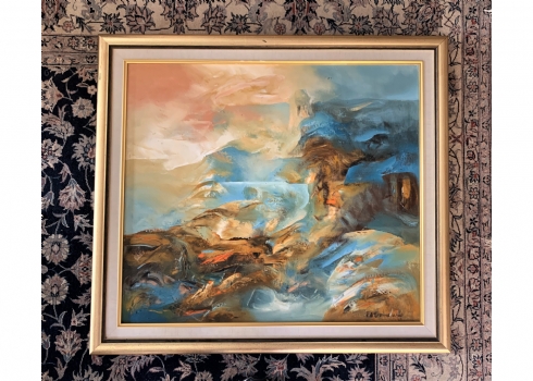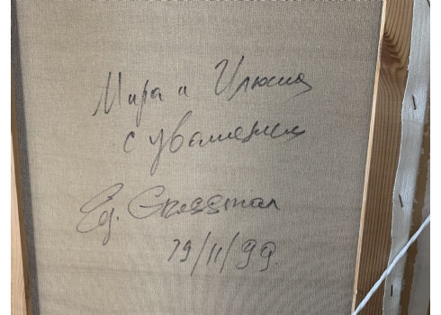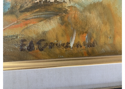 אדוארד גרוסמן (Eduard Grossman) - 'נוף כינרת', שמן על בד, חתום ומתוארך 99', כיתוב/הקדשה בגב התמונה, מידות: 69X80 ס"מ.