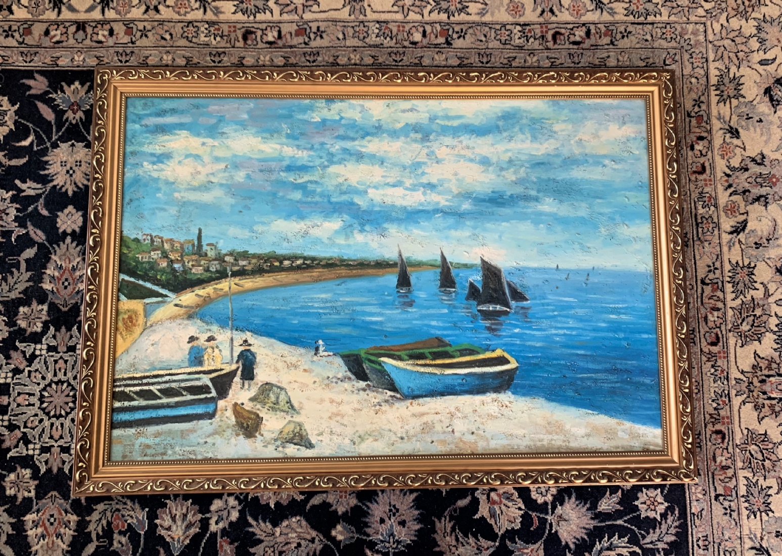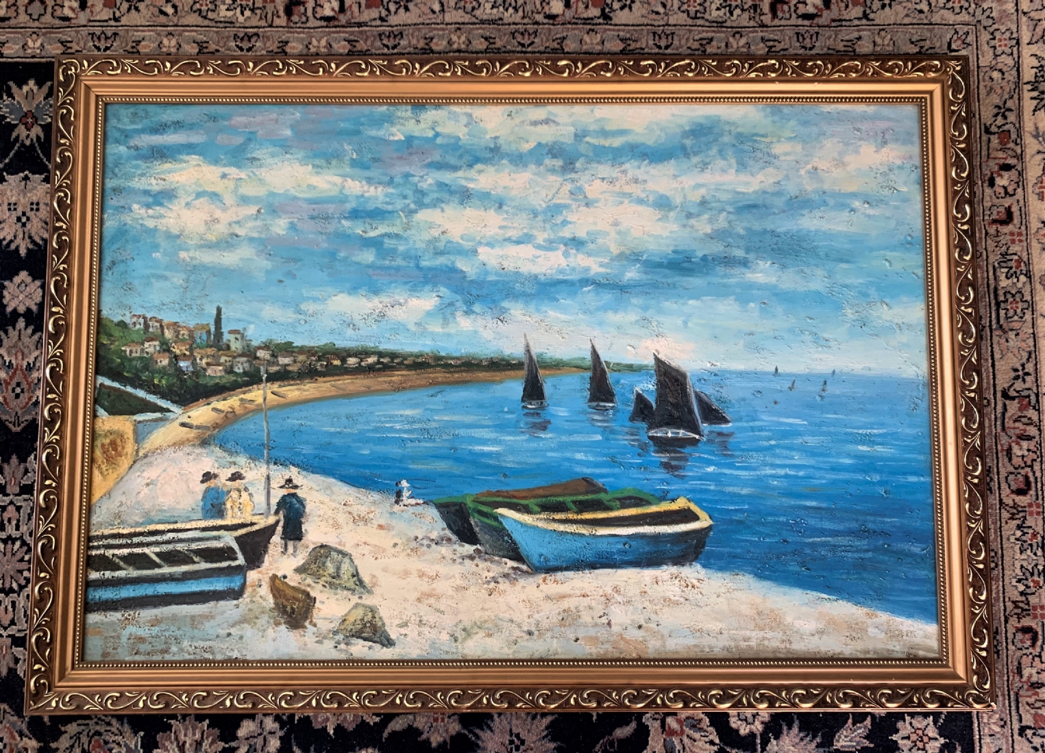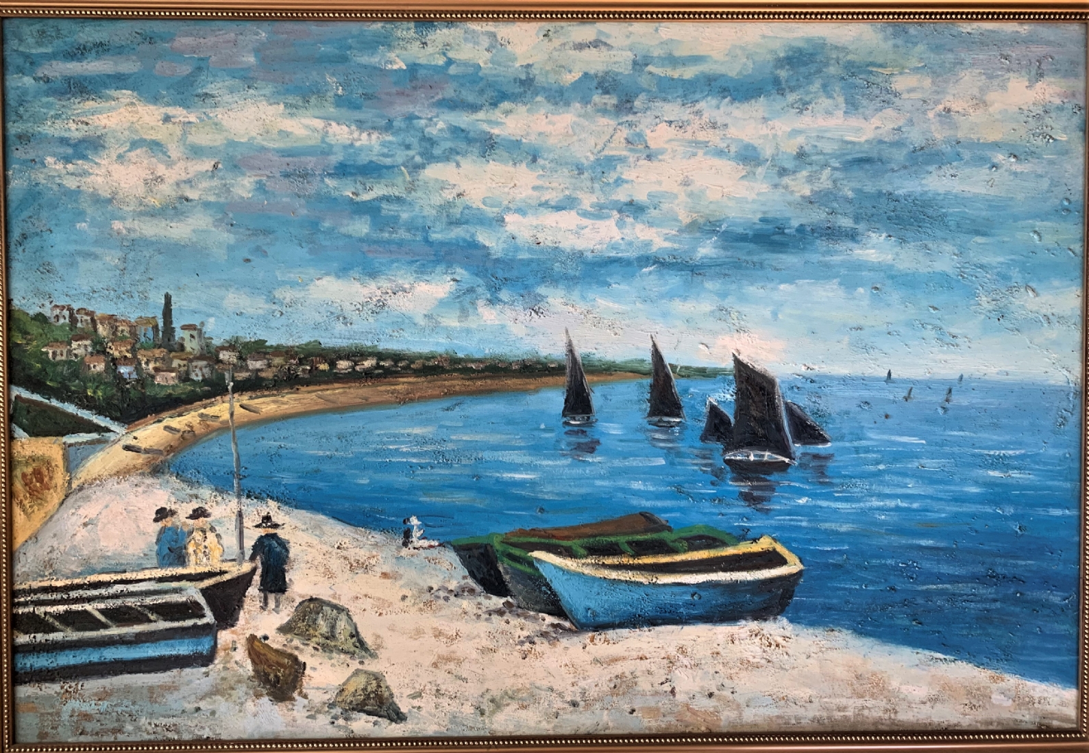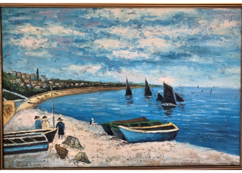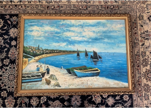 'שלושה יהודים עושים תשליך ביוון' - ציור ישן, שמן על בד, מידות: 60X90 ס"מ.