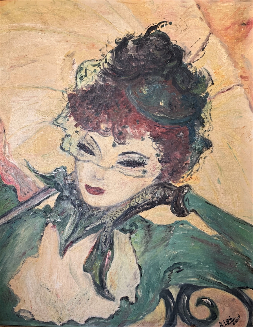מחוה לאנרי טולוז לוטרק (Toulouse-Lautrec) - דמות אישה, שמן על בד, חתום