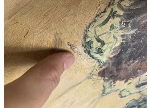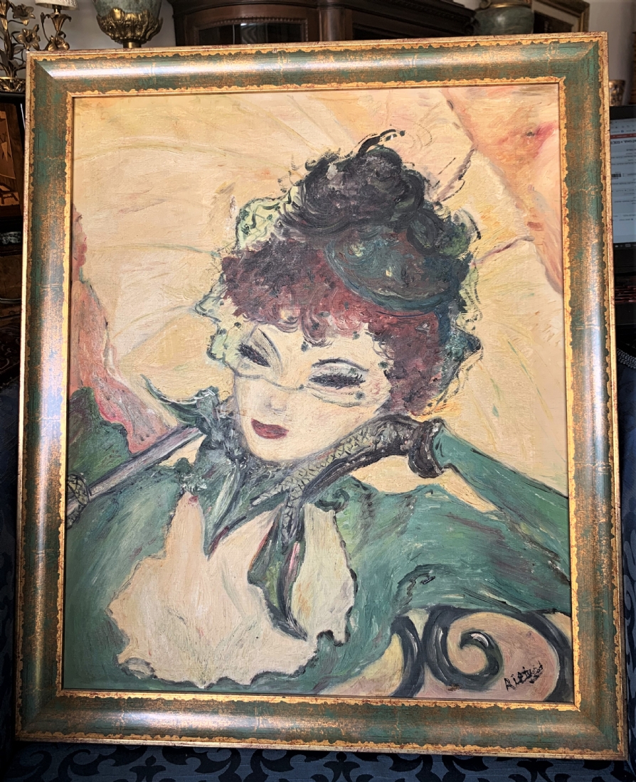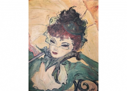 מחוה לאנרי טולוז לוטרק (Toulouse-Lautrec) - דמות אישה, שמן על בד, חתום, פגמים לבד (מצולם), מידות: 60X50 ס"מ.
