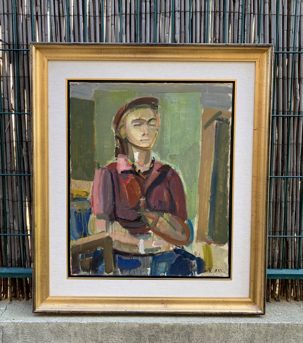 'אישה יושבת' - ציור גדול ויפה, שמן על בד, חתום