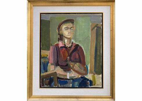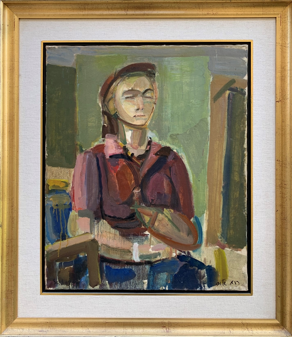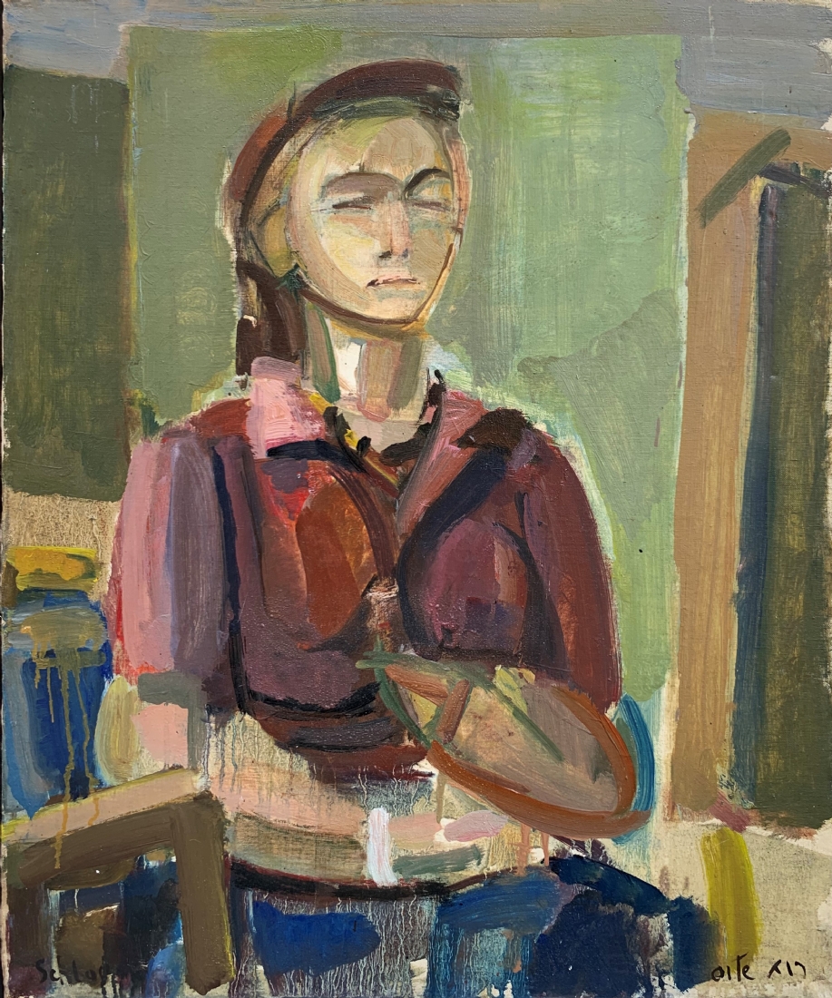 'אישה יושבת' - ציור גדול ויפה, שמן על בד, חתום, מידות: 62X50 ס"מ.