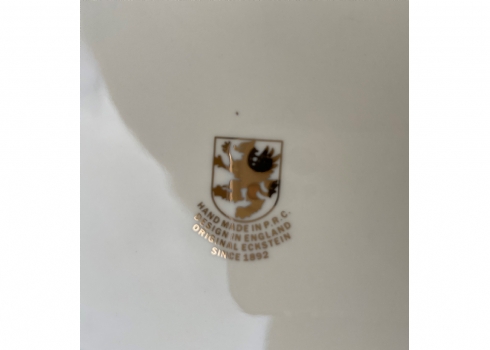 קערת חרסינה מלבנית להגשה וכיבוד מעוטרת בהדפס של שושנים פורחות וחתומה, זוג ידיות, מידות: 22X32 ס"מ.