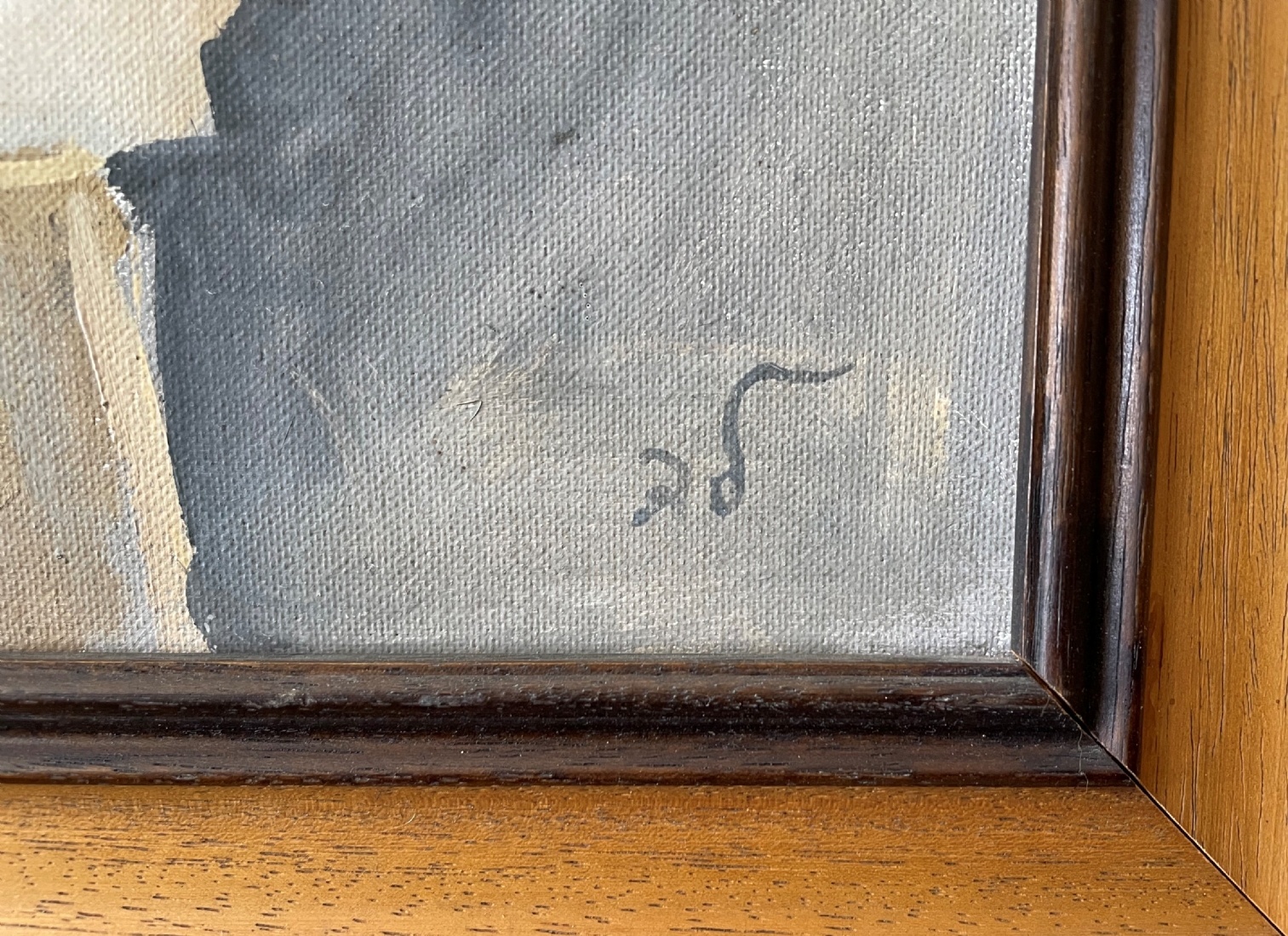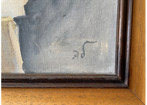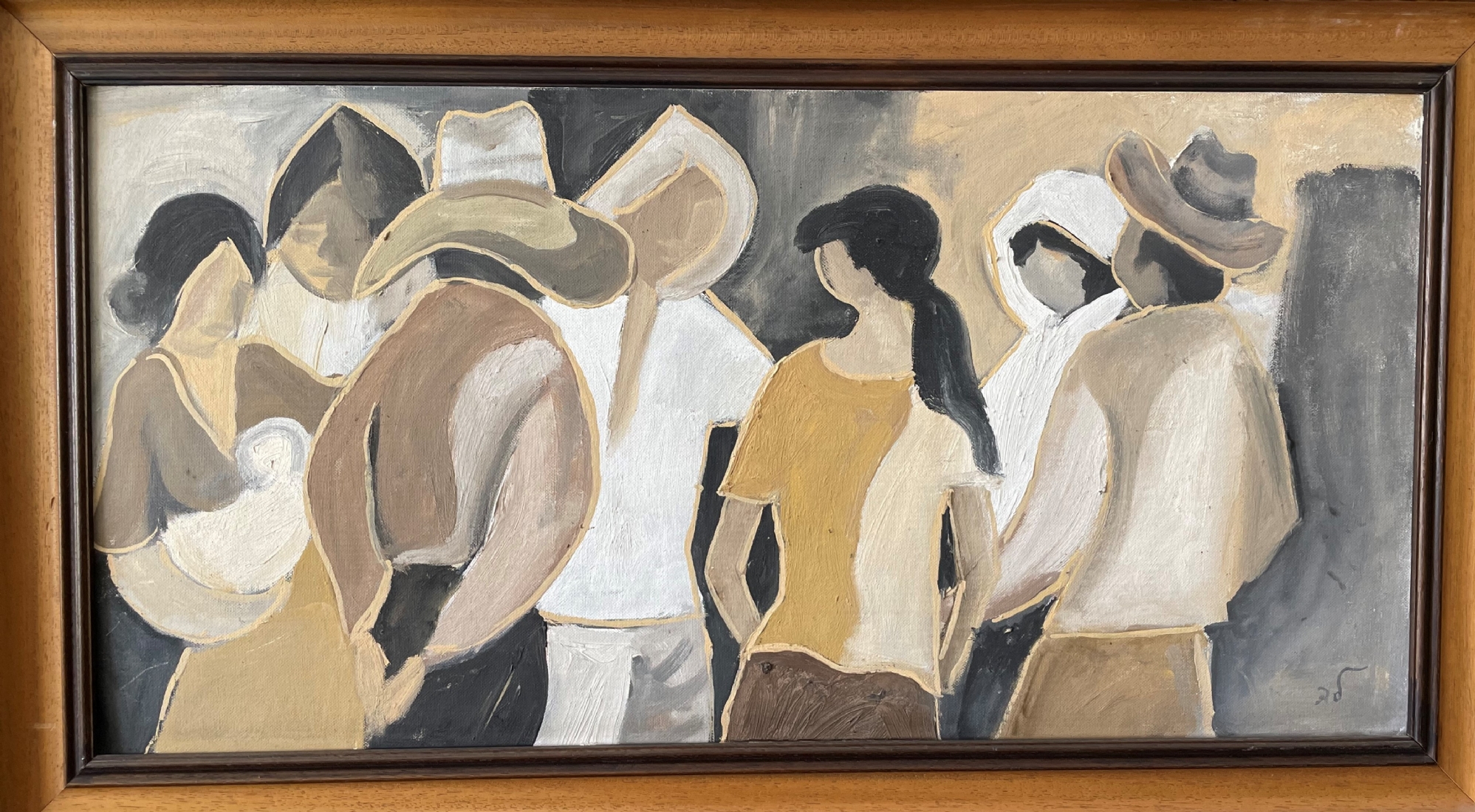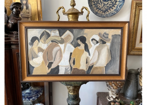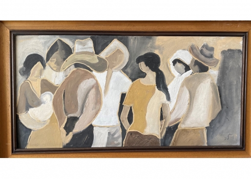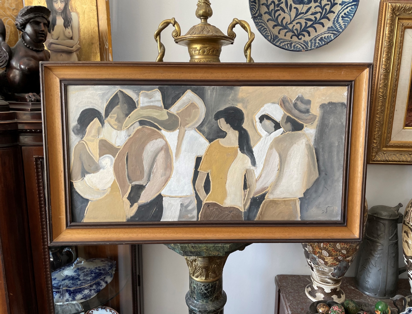 'פדיון הבן במקסיקו' - ציור ישן, שמן על בד צרפתי חתום 'לב' (מי אתה לב?), מידות: 38X76 ס"מ.