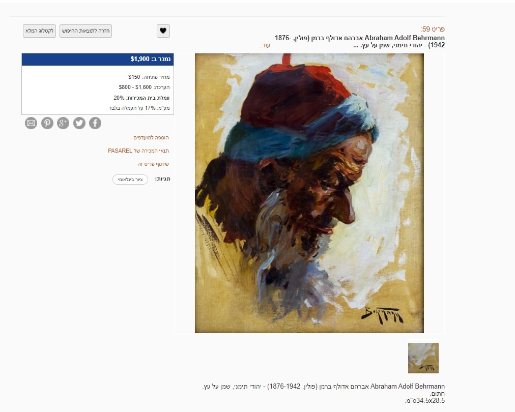 מידות: 58X40 ס"מ. (* מצורף להמחשה צילום מסך של ציור קטן בחצי מהציור הנוכחי שנמכר בבית המכירות פסרל (Pasarel) בתאריך: 20.4.21 תמורת: 1,900 דולר.