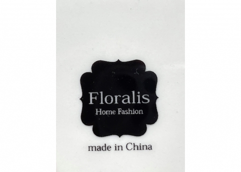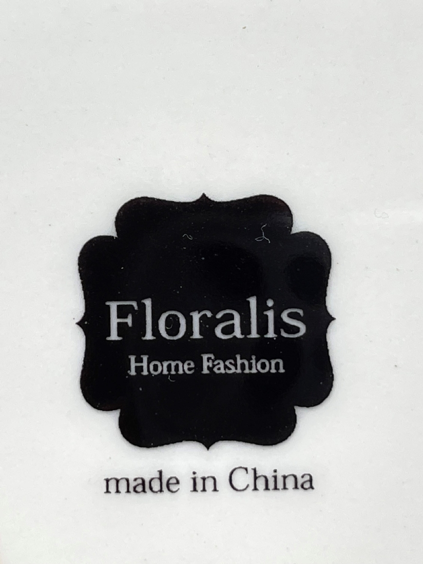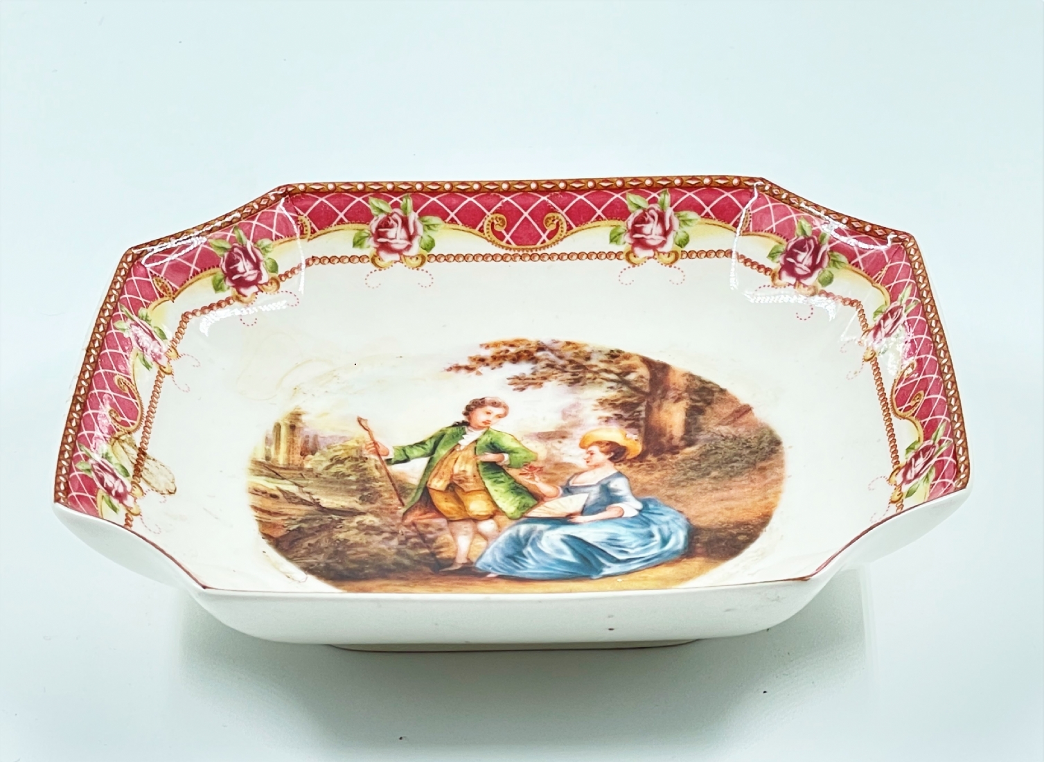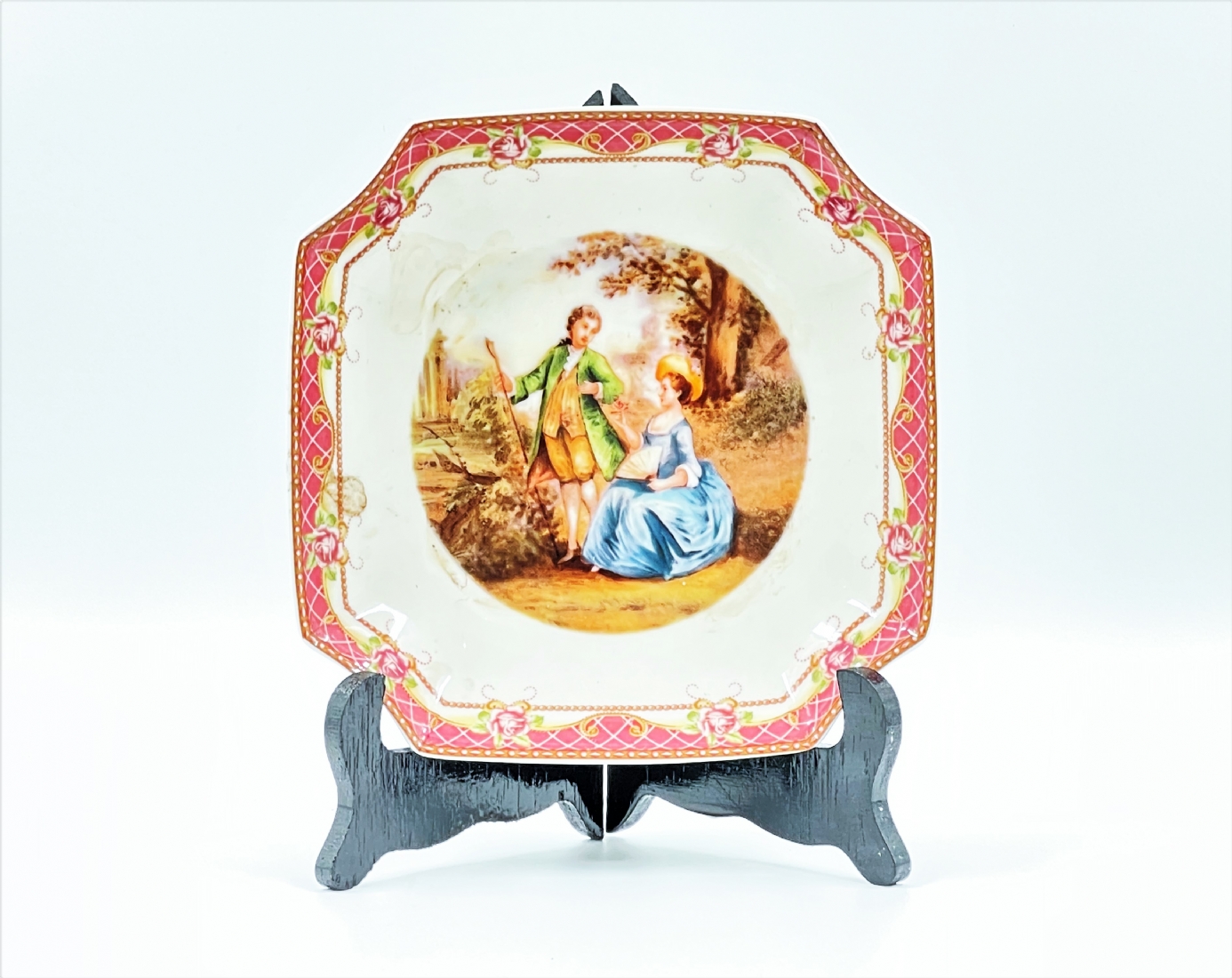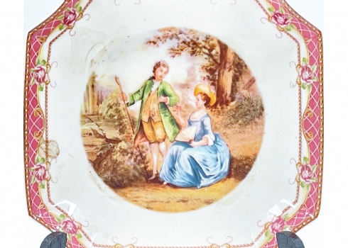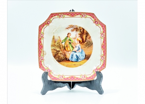 צלחת פורצלן מרובעת, מעוטרת וחתומה