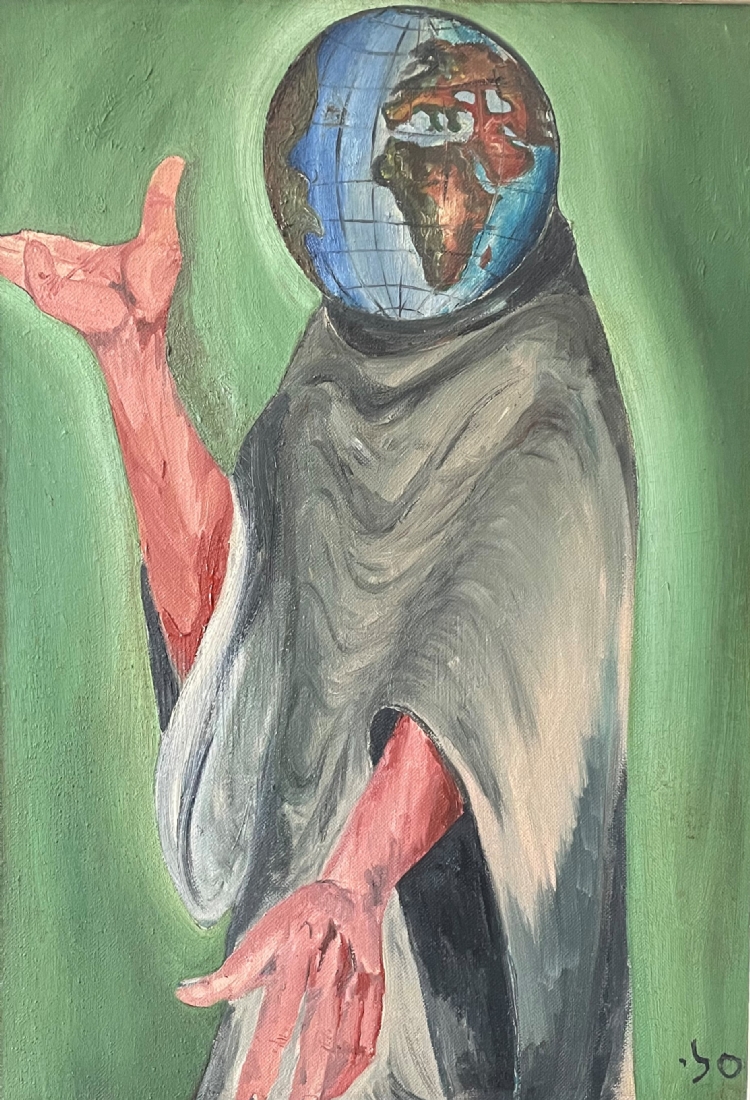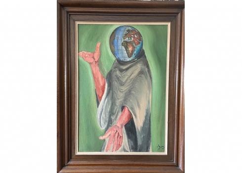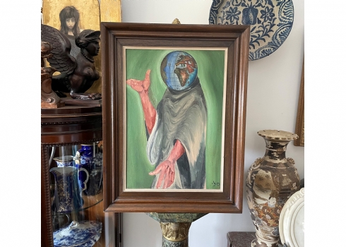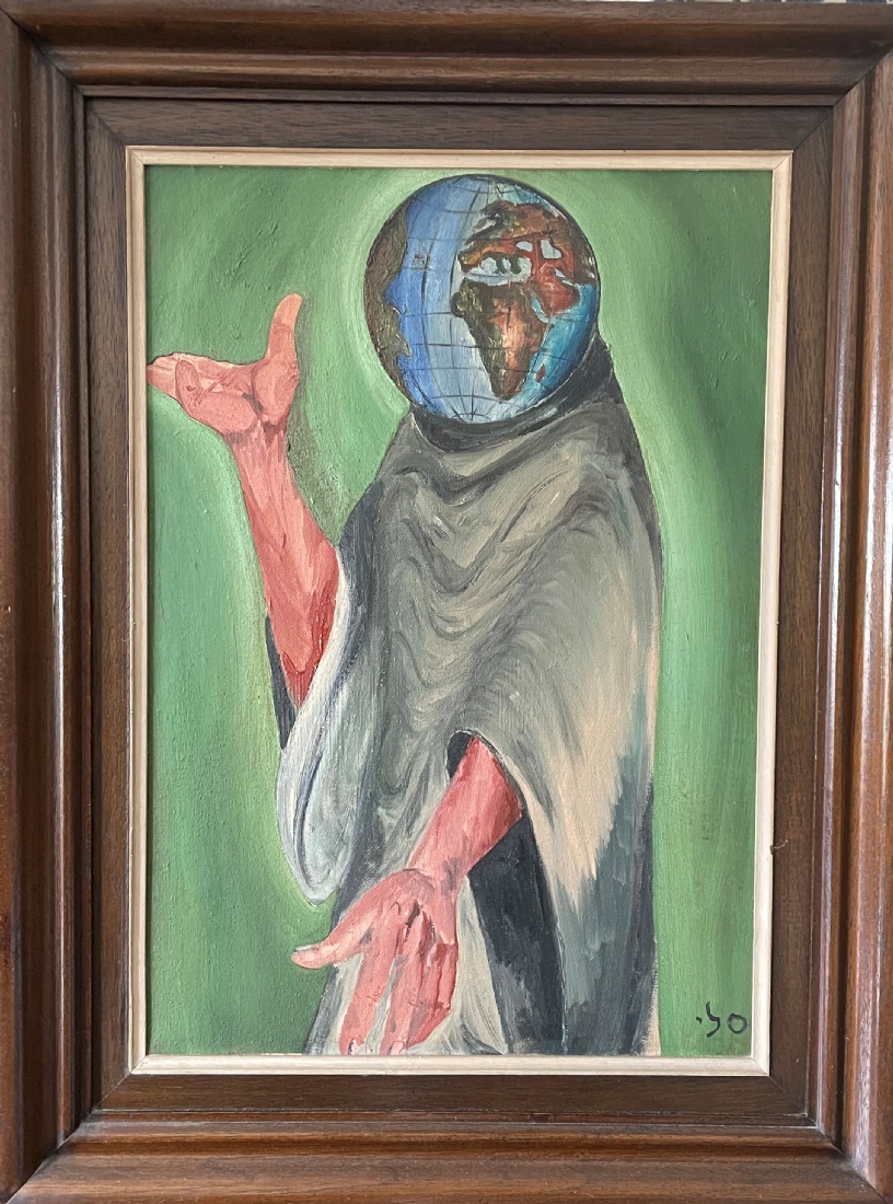 'רק קיימות יש לו בראש' - ציור ישן, שמן על בד, חתום סלי