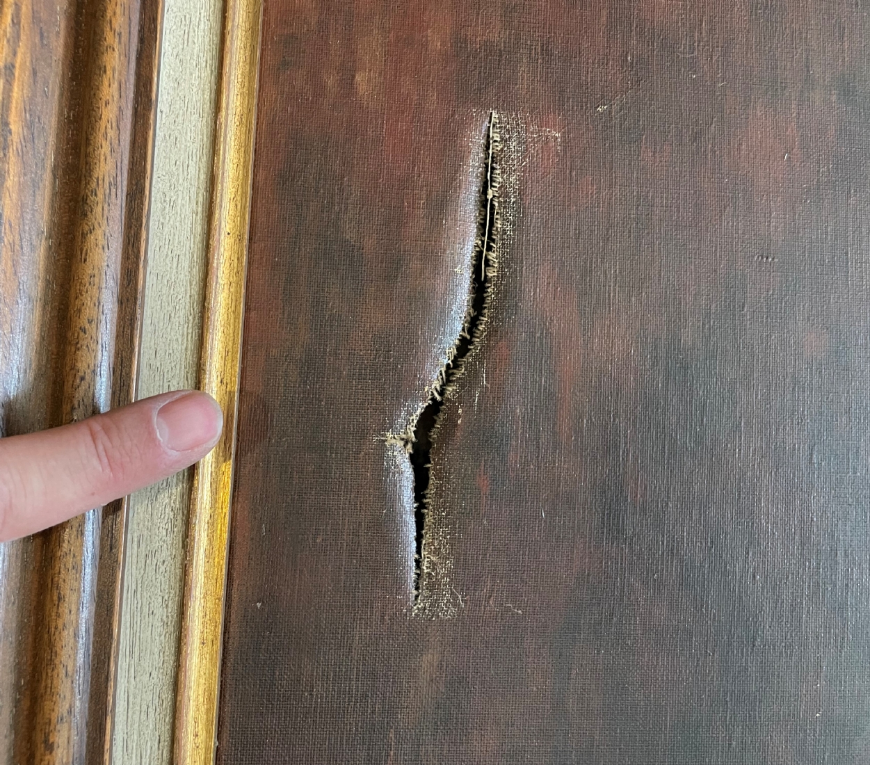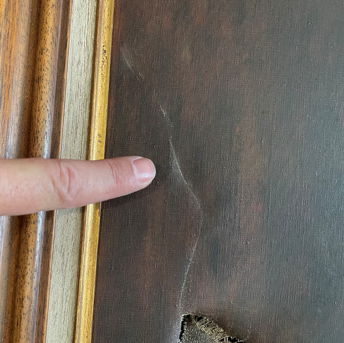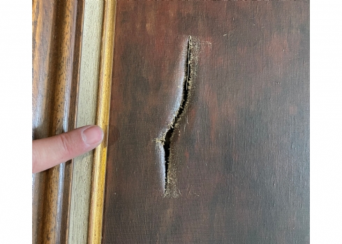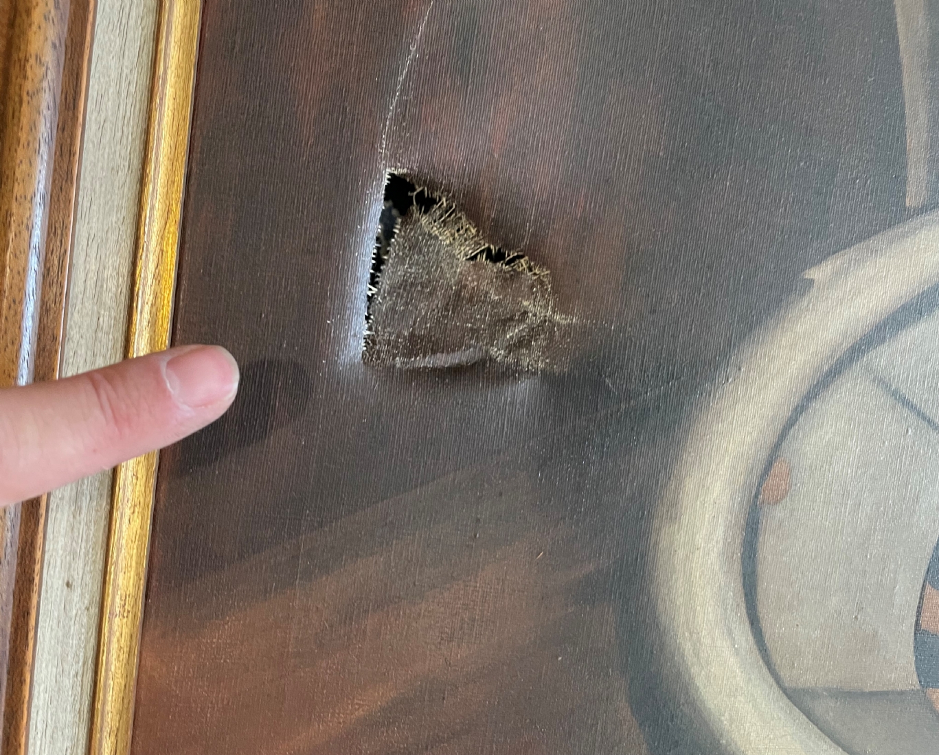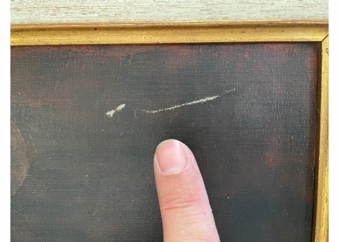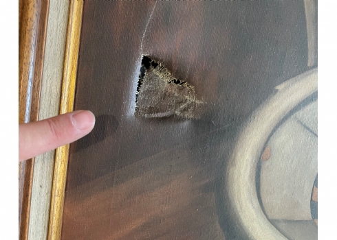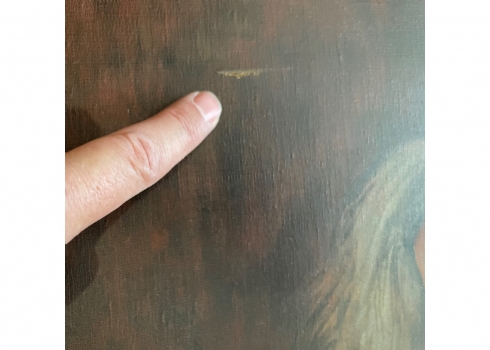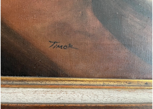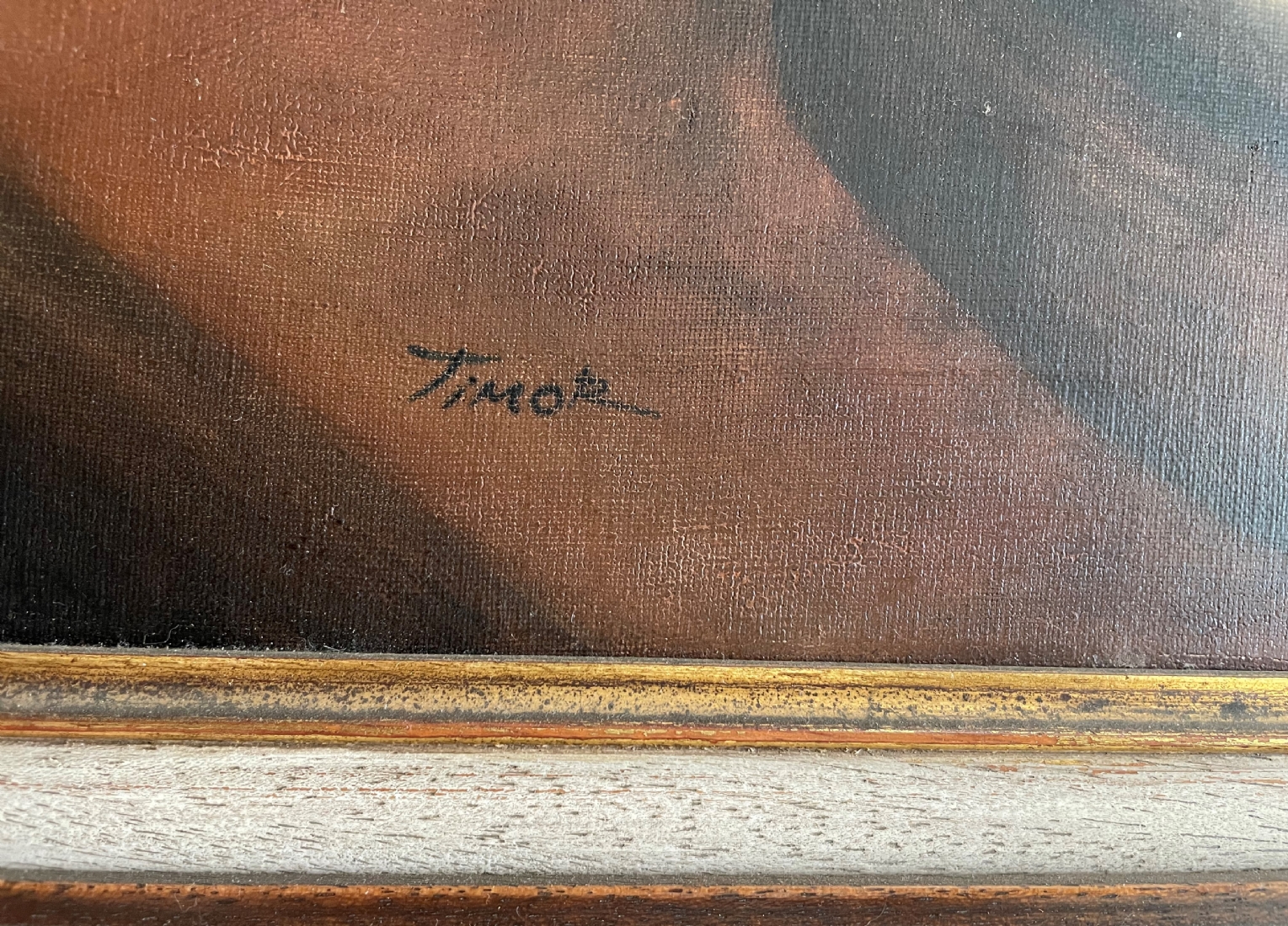 רחל טימור (Rachel Timor) - 'שחקני הרולטה' - ציור גדול, שמן על בד, פגום (מצולם), מידות: 75X100 ס"מ.