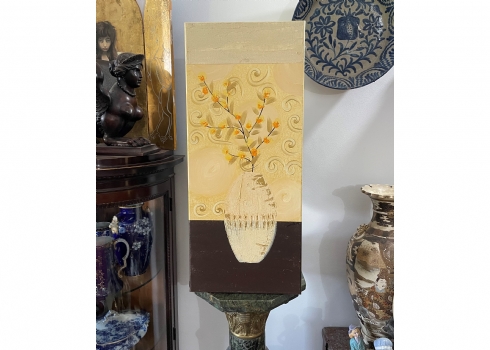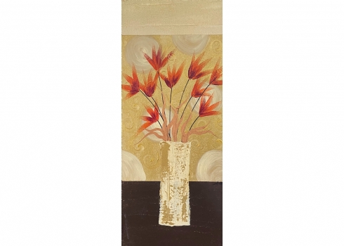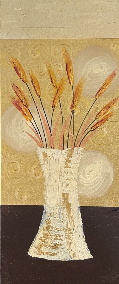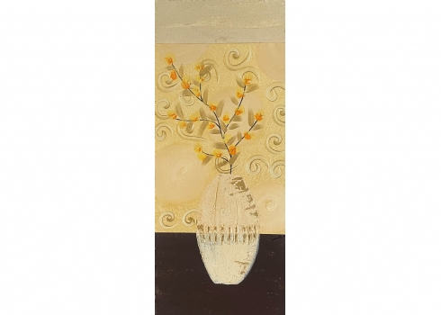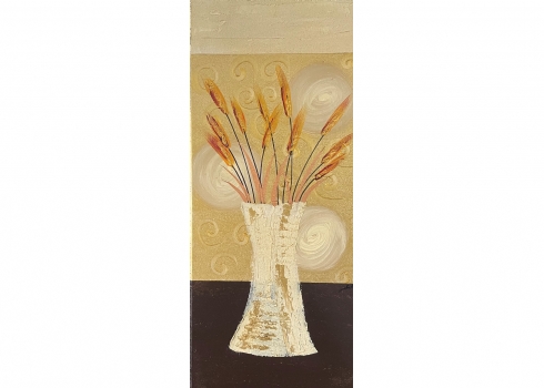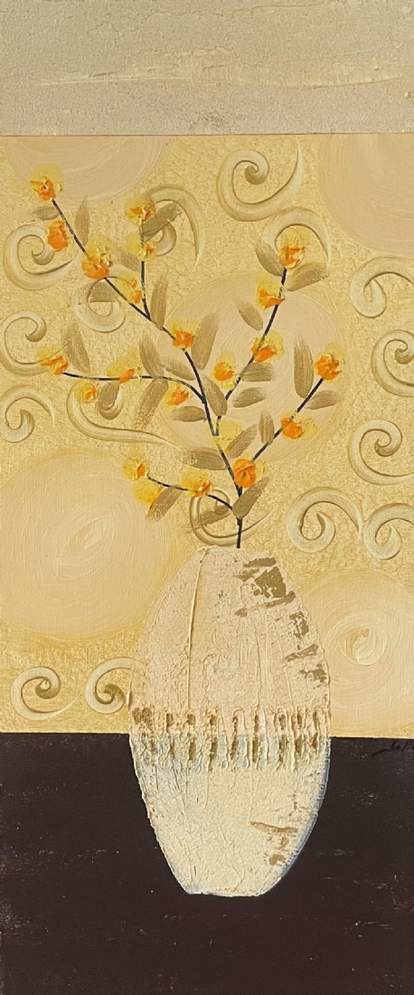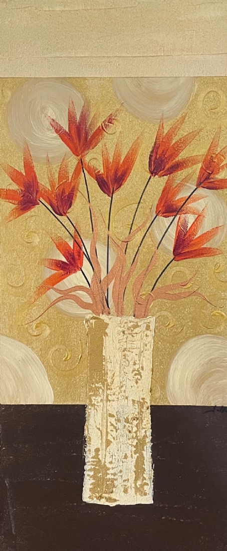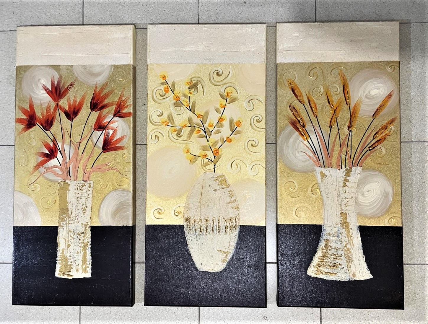 סט של 3 תמונות דקורטיביות מלבניות, שמן על בד, לא חתום, מידות כל תמונה: 70X30 ס"מ.