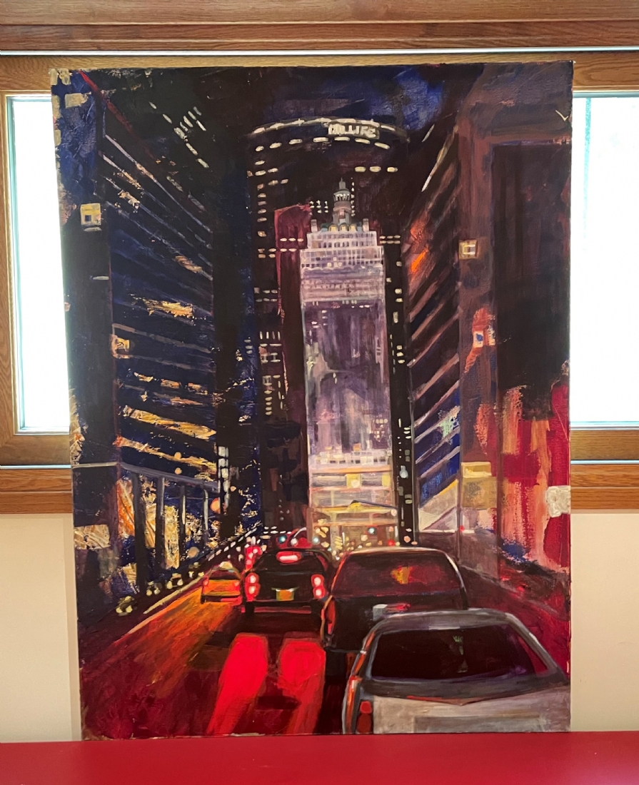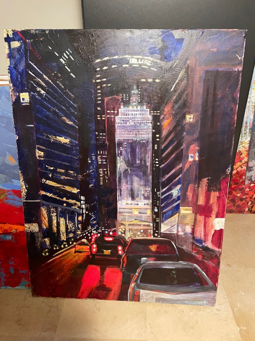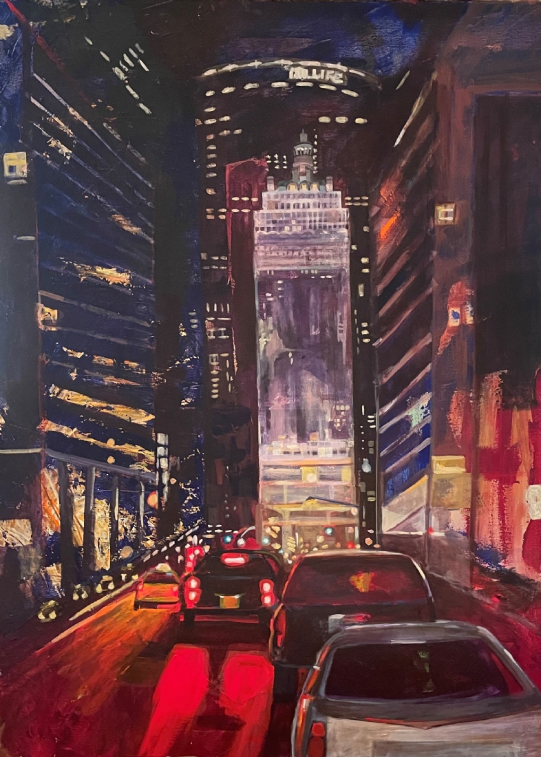 נמדר, אסתר (Ester Namdar) - 'מנהטן' - ציור שמן על בד, חתום, מידות: 120X90 ס"מ.