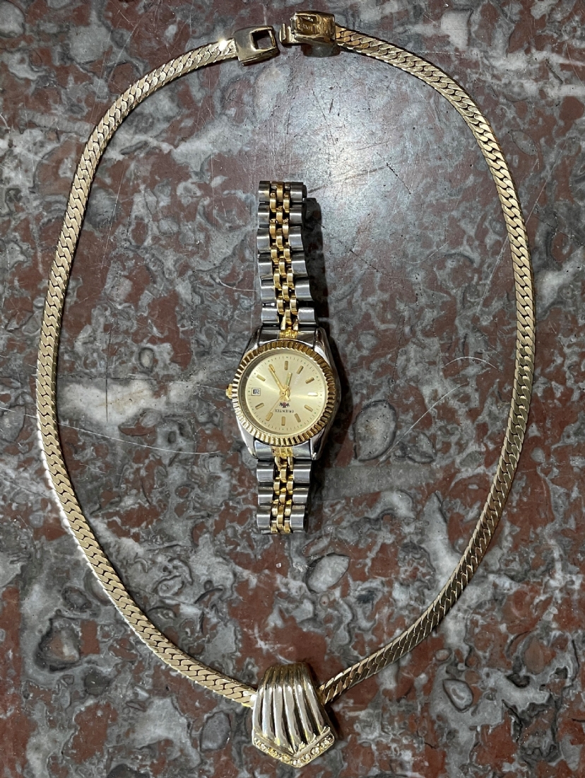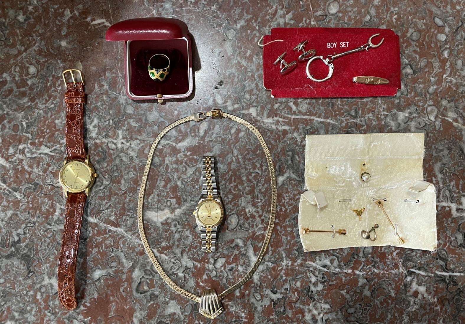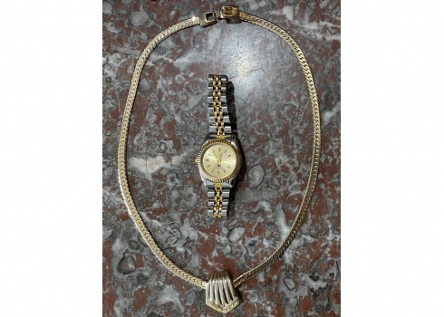 לוט של 13 תכשיטים שונים, עשויים חומרים שונים (תכשיטי אופנה), לא נבדק מצב עבודה של שעוני היד.