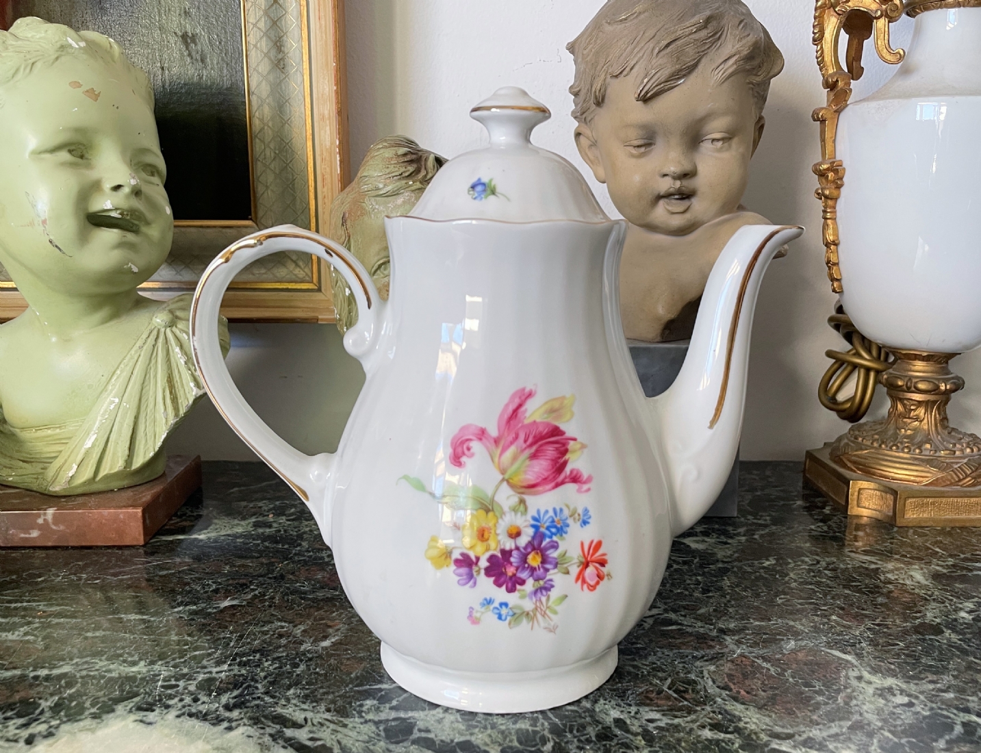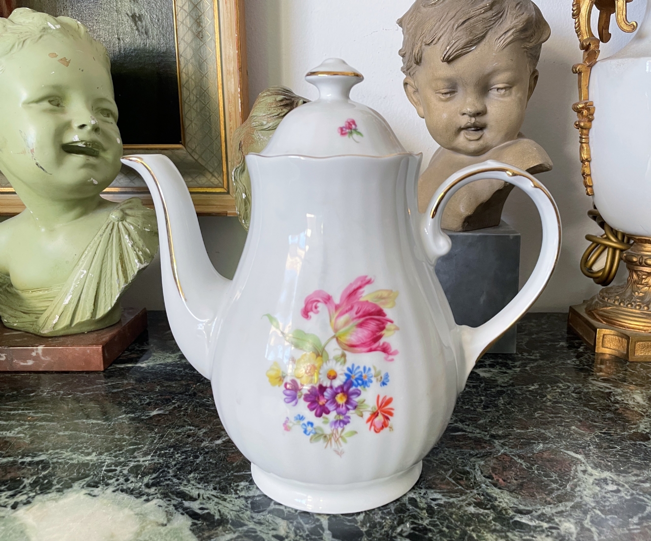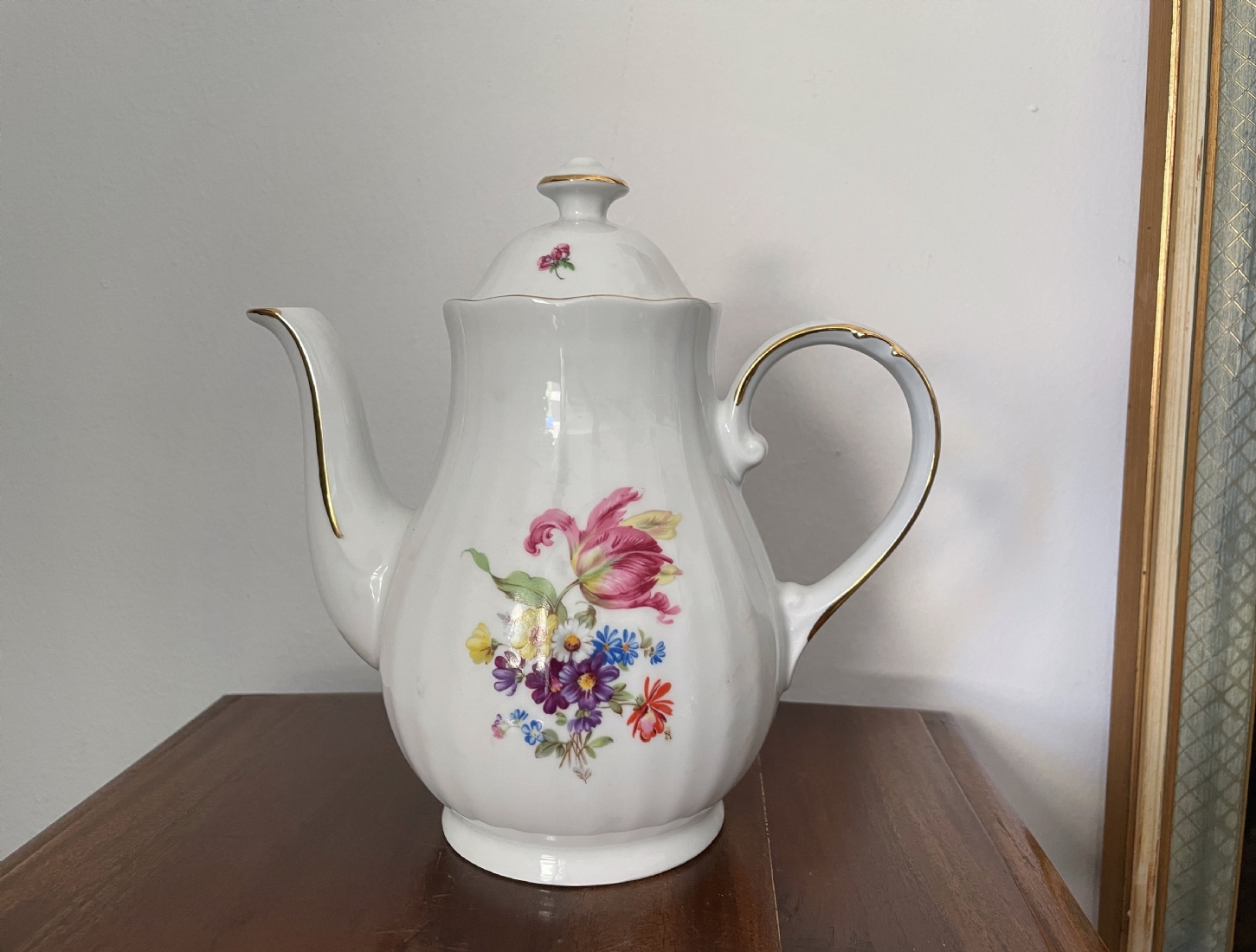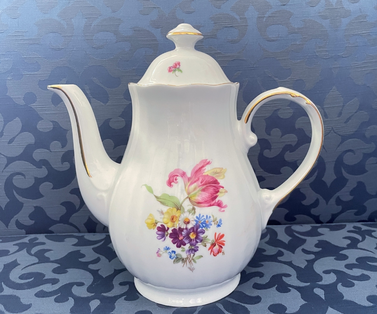 קנקן קפה גרמני ישן מתוצרת: 'מיטרטיך' (Mitterteich Bavaria), מעוטר בהדפס פרחוני