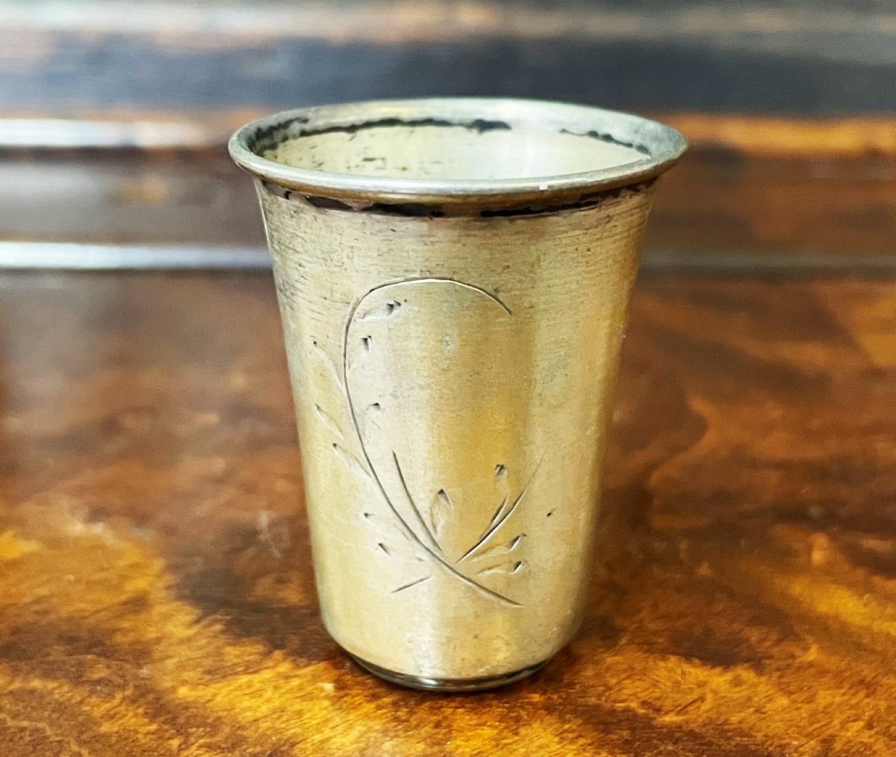 כוס כסף פולנית קטנה (וורשה), חתומה (1920-1931) ומעוטרת בחריטת יד עדינה