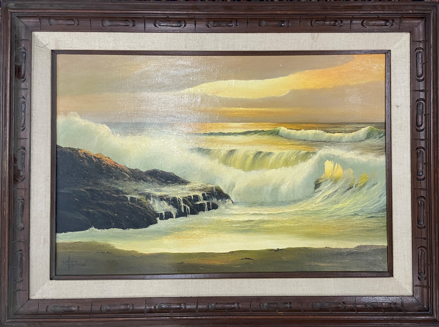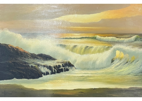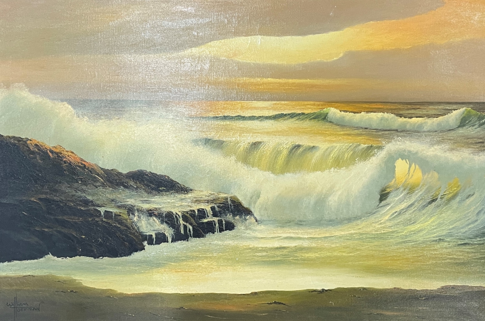 William Hoffman (צייר אמריקאי ממונטנה, 1924 - 1995) - 'חוף ים בסערה' - ציור גדול, שמן על בד, חתום, מידות: 61X92 ס"מ.