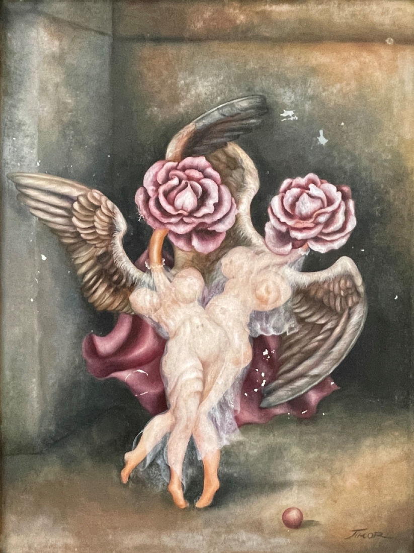 רחל טימור (Rachel Timor) - 'המלאכיות של שושנה' - ציור ישן, שמן על בד, חתום