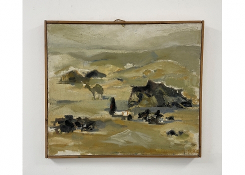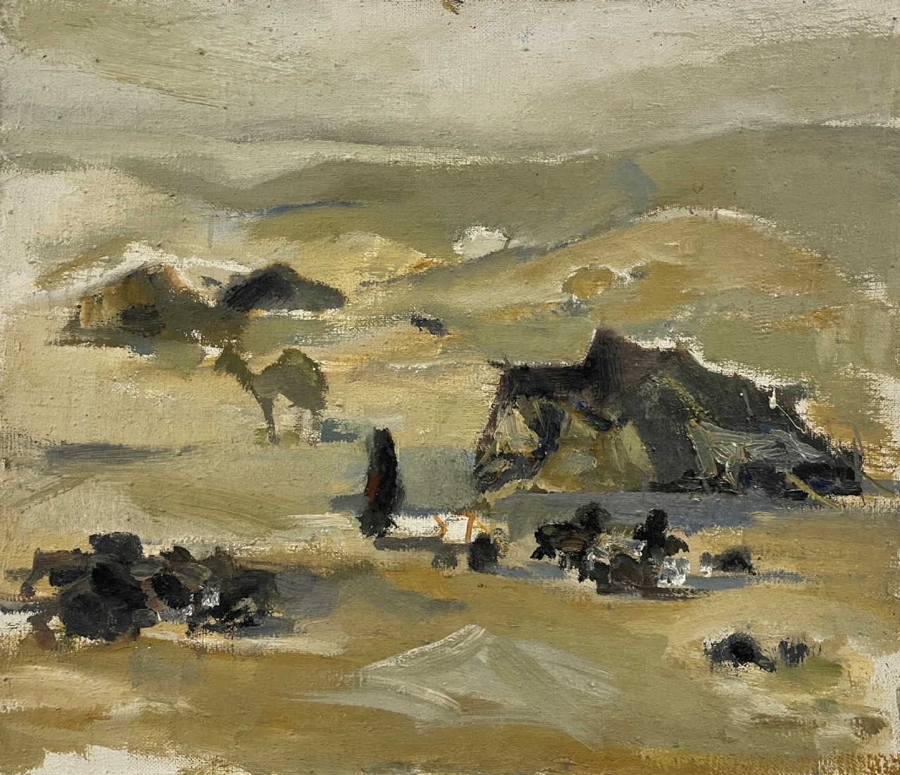 'מאהל בדואי' - ציור ישן, שמן על בד, לא חתום, אמן לא ידוע, מידות: 56X65 ס"מ.