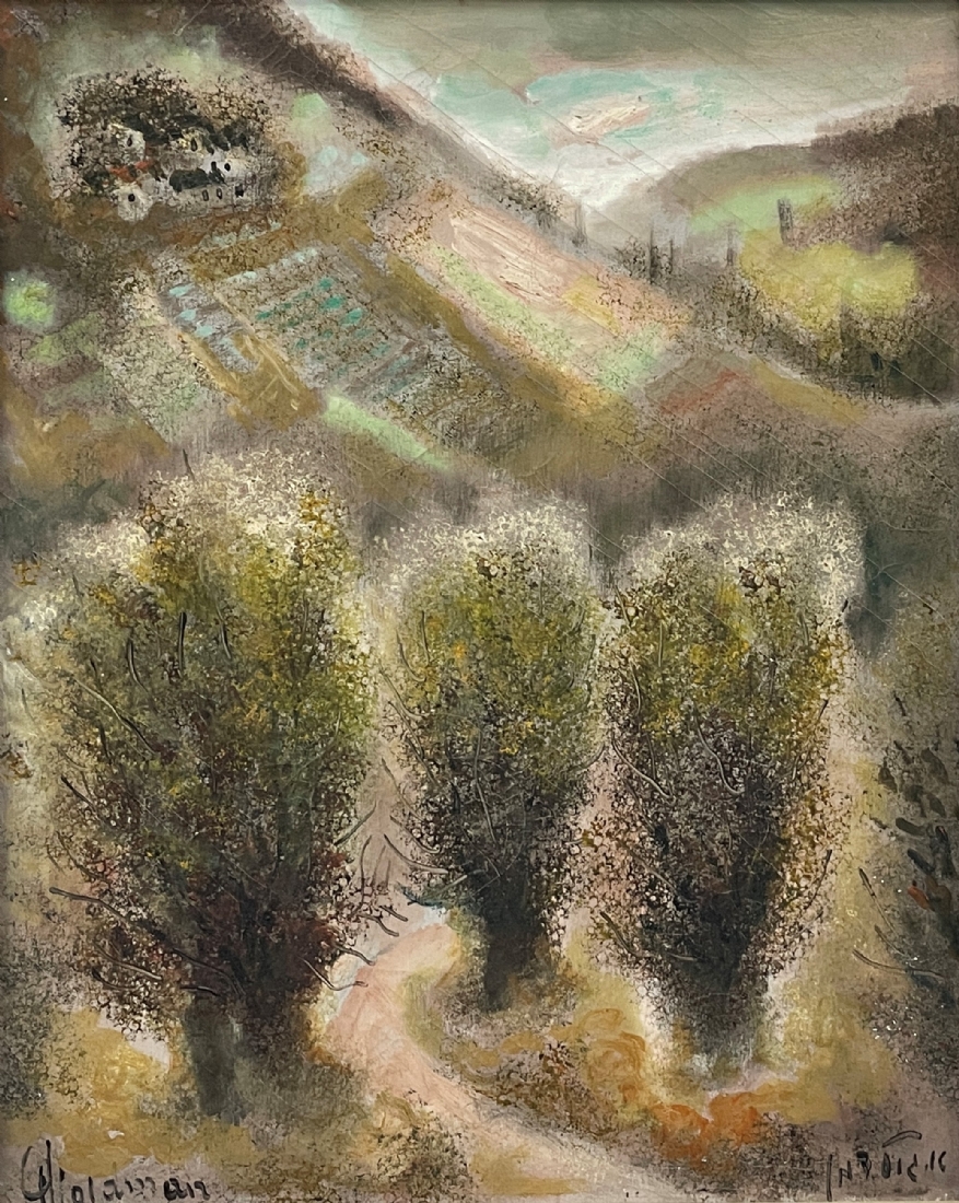 אלברט גולדמן (Albert Goldman) - 'מטע זיתים בדרך לירושלים' - ציור ישן, שמן על בד