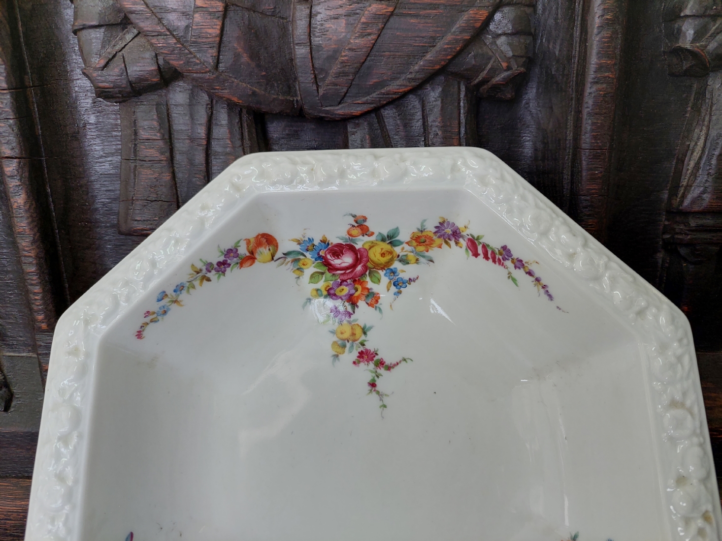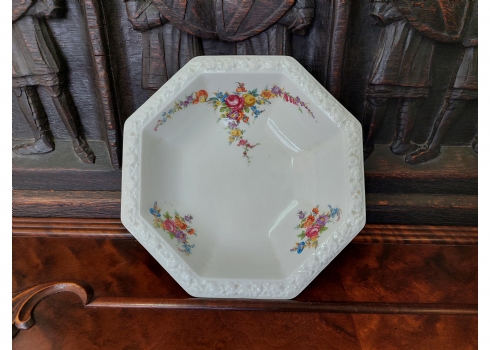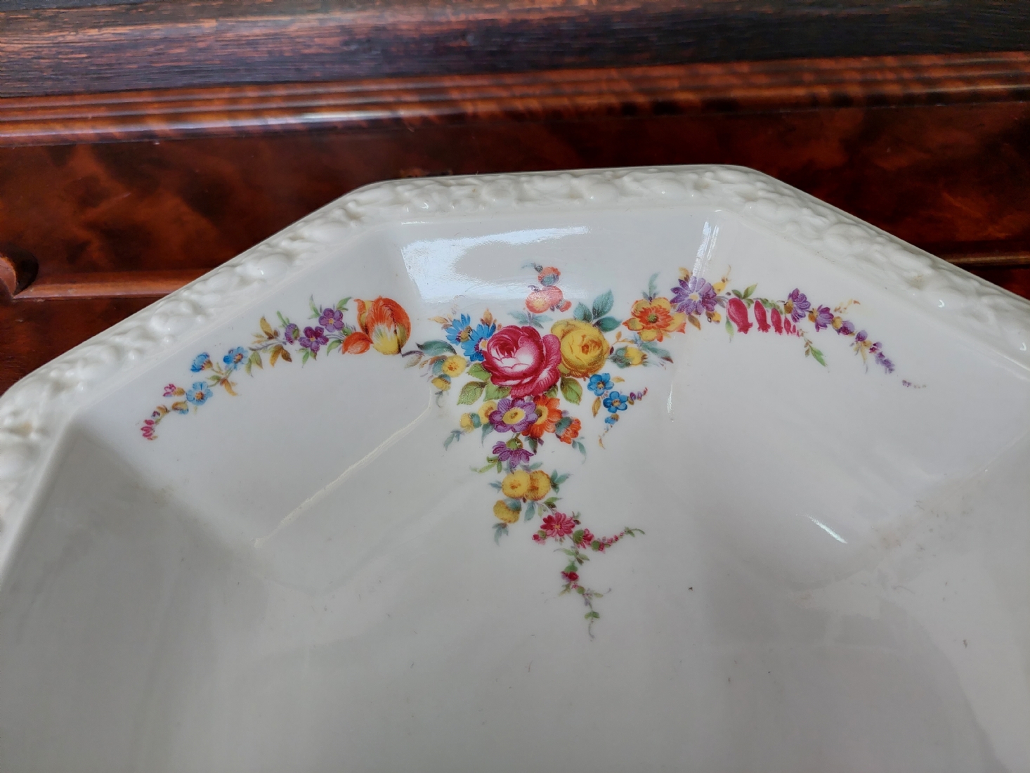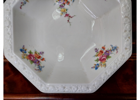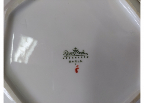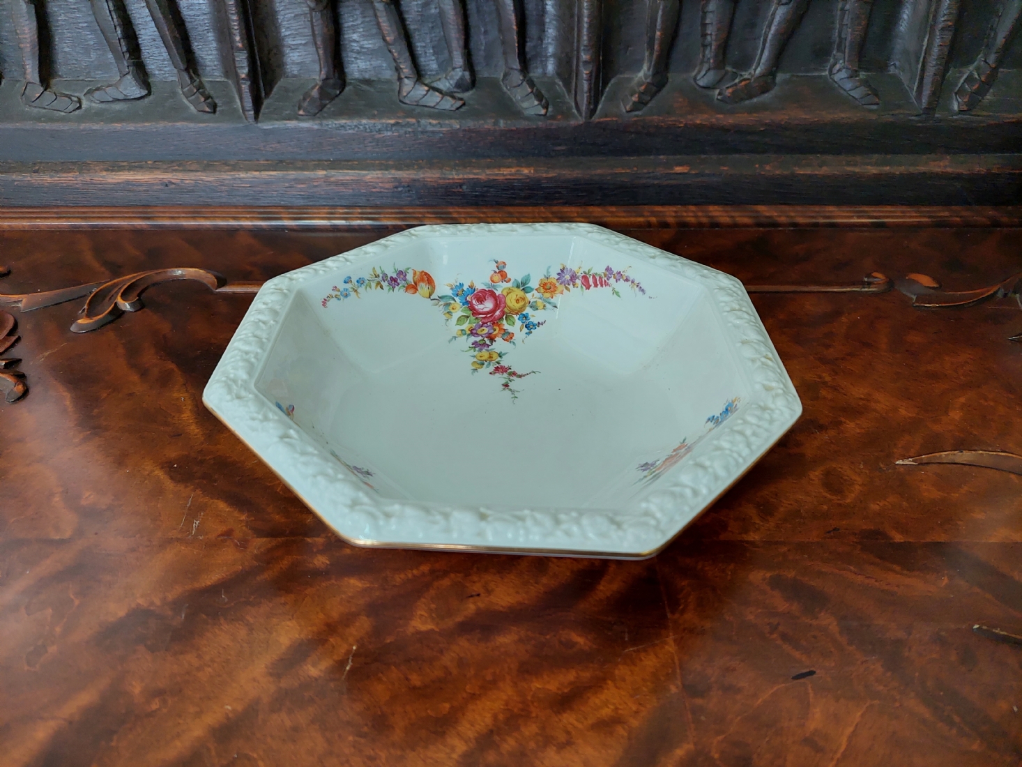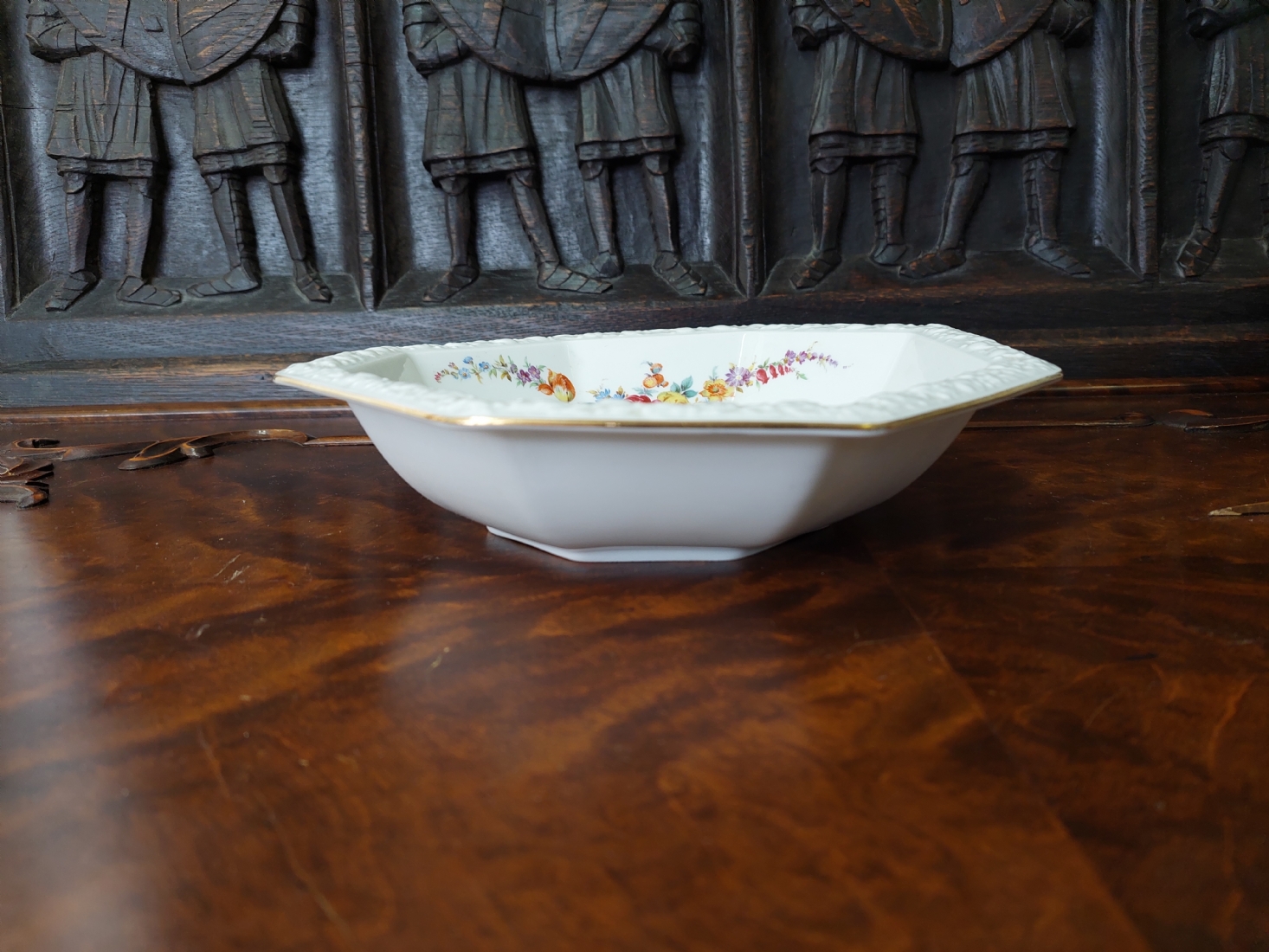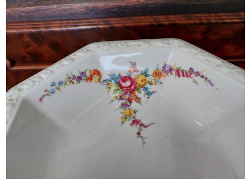 קערת הגשה גרמנית ישנה מתוצרת: 'רוזנטל' (Rosenthal), דגם 'מריה', חתום, מעוטרת בהדפס פרחוני, גובה: 6 ס"מ, קוטר: 23 ס"מ.