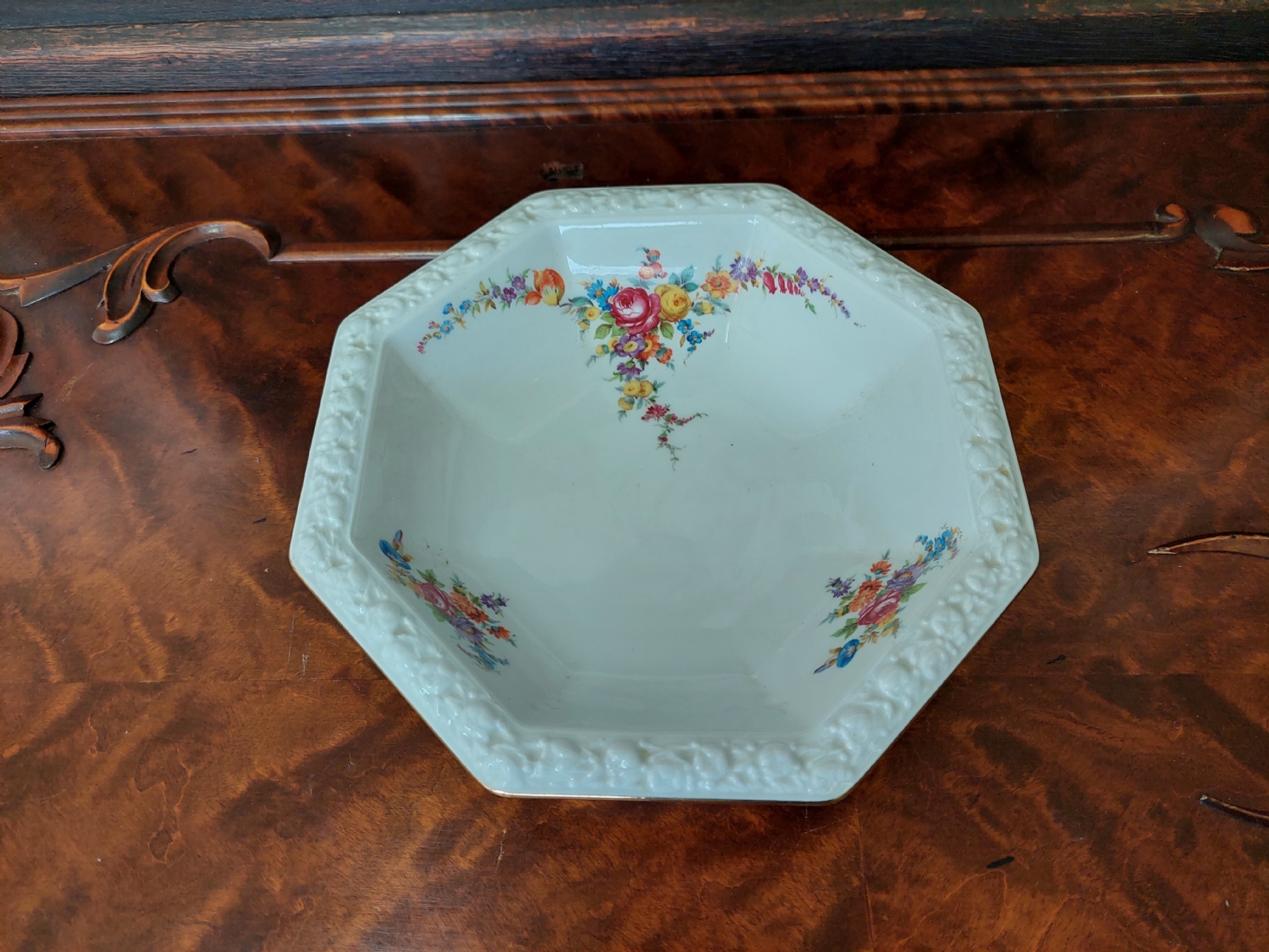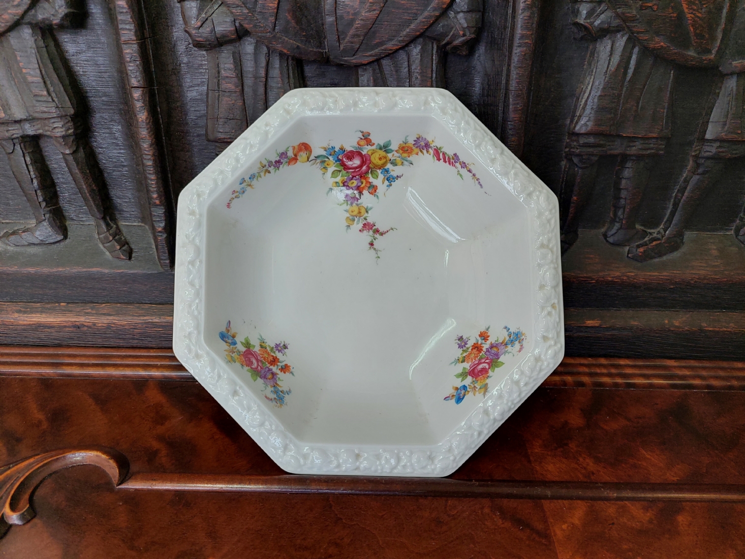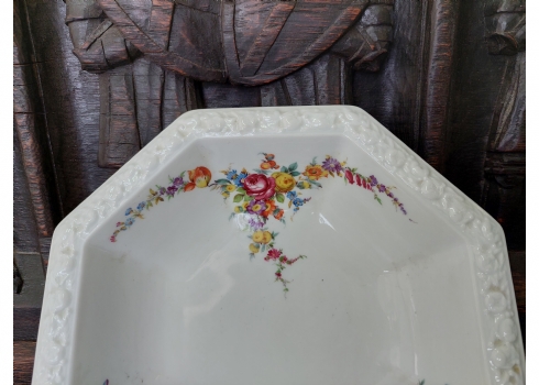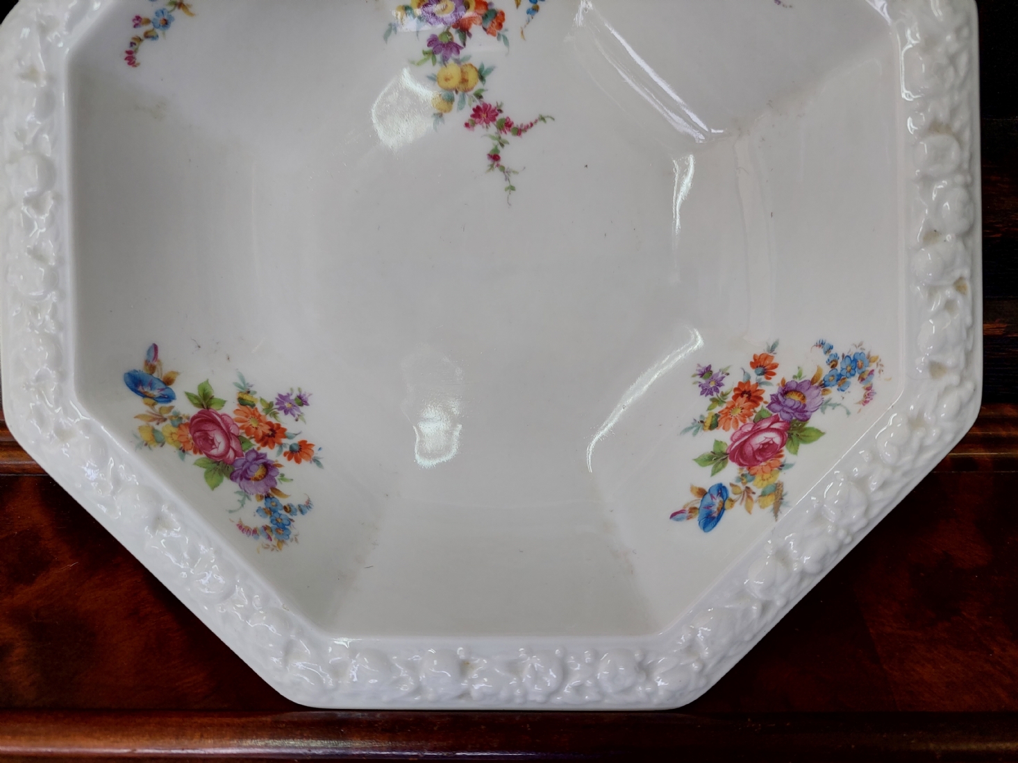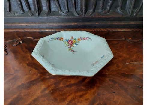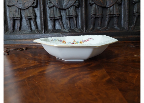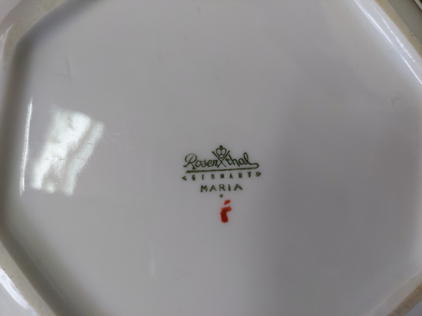 קערת הגשה גרמנית ישנה מתוצרת: 'רוזנטל' (Rosenthal), דגם 'מריה', חתום, מעוטרת בהדפס פרחוני, גובה: 6 ס"מ, קוטר: 23 ס"מ.
