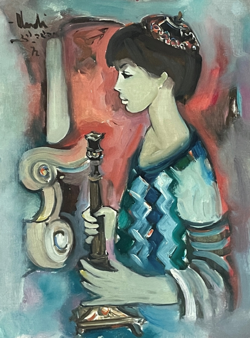 יהודה ורדי (Yehuda Vardi) - 'נער מחזיק פמוט' - ציור ישן, שמן על בד צרפתי, חתום ומתוארך: 1972, מידות: 41X30.5 ס"מ.